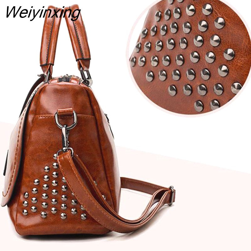 Weiyinxing Rivet Handbags PU Leather Women Bag Sequined Shoulder Bag Designer Women Leather Handbags Luxury Ladies HandBag