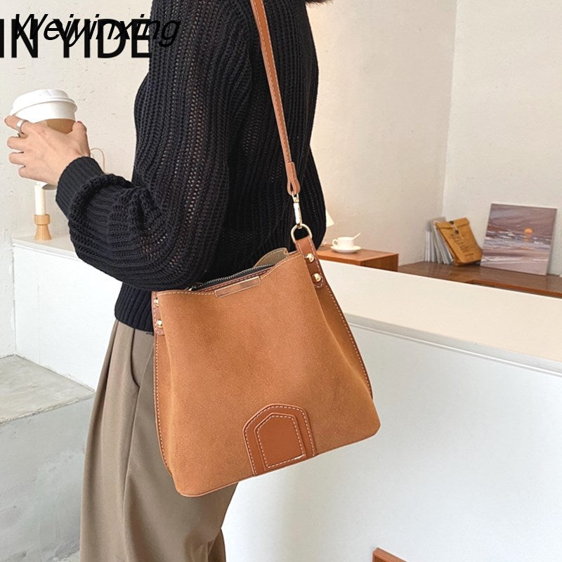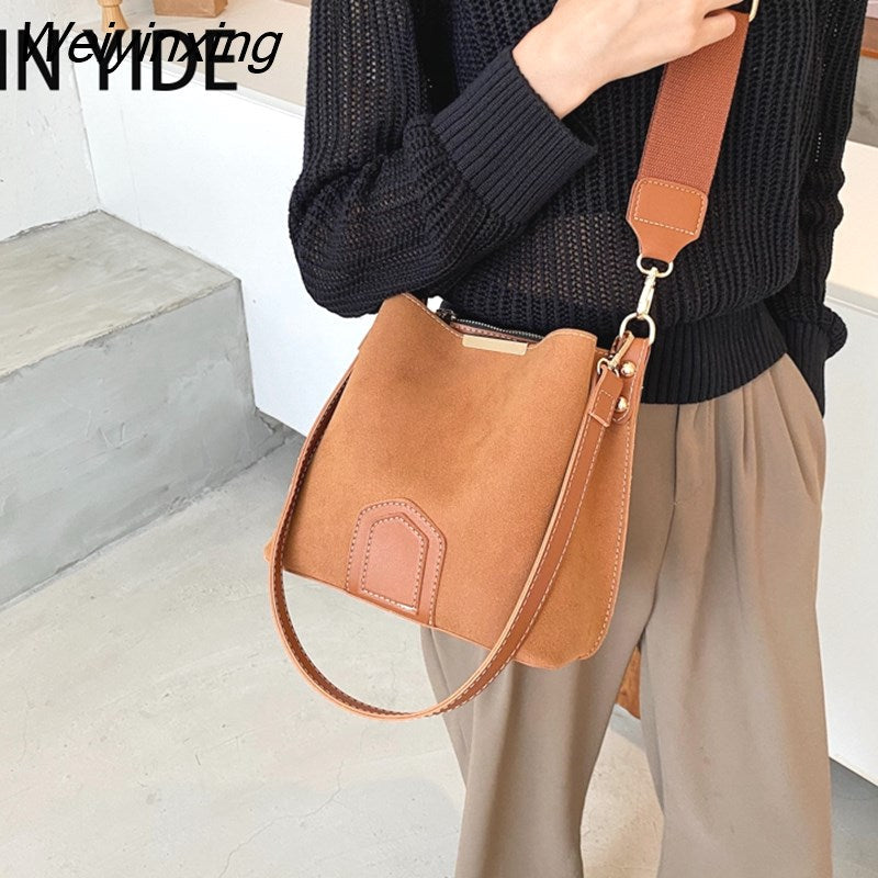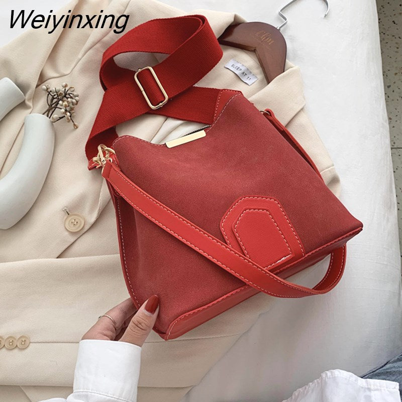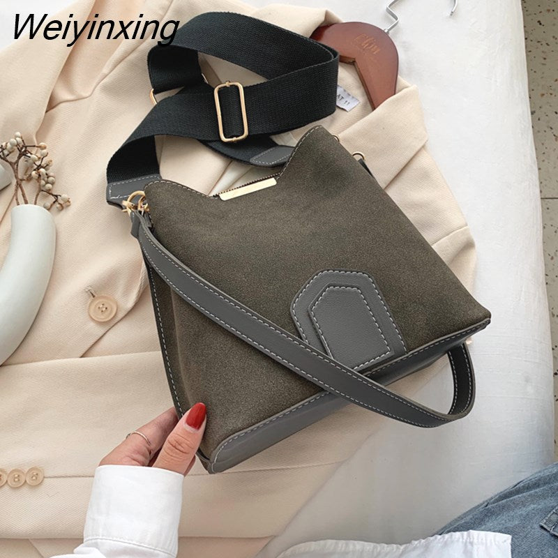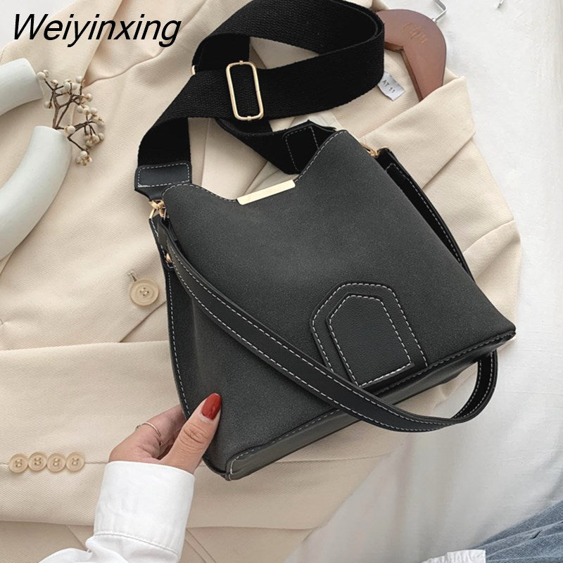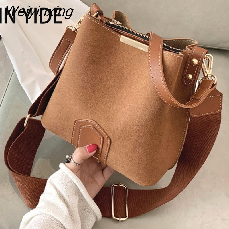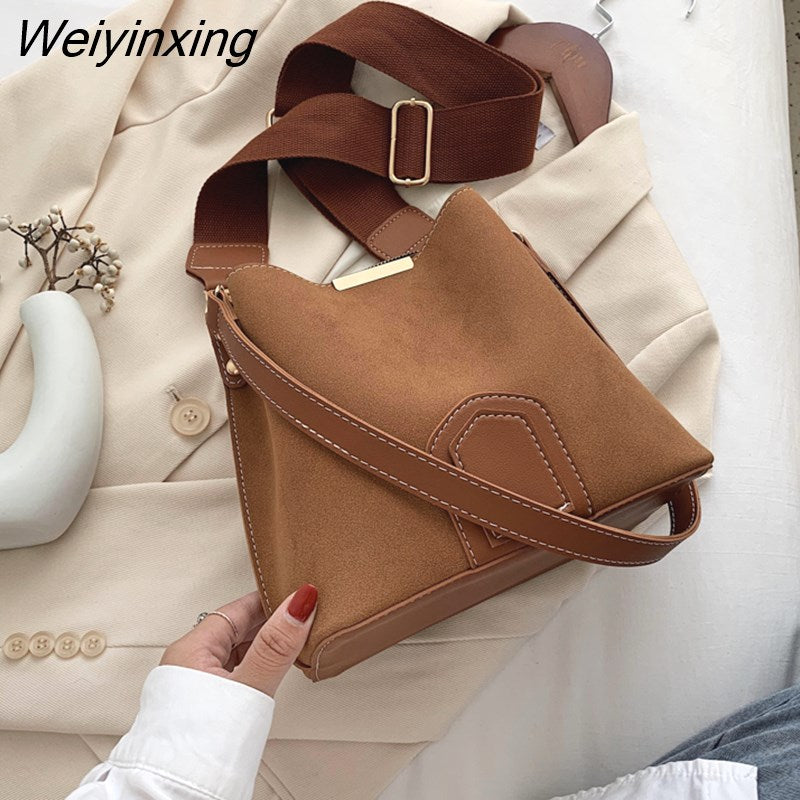 Weiyinxing Scrub Leather Bucket Bags for Women 2023 Trending Designer Crossbody Shoulder Handbags Women's Wide Shoulder Belt Bag 4.