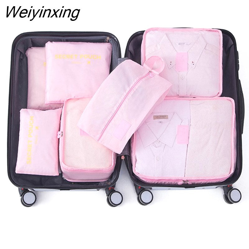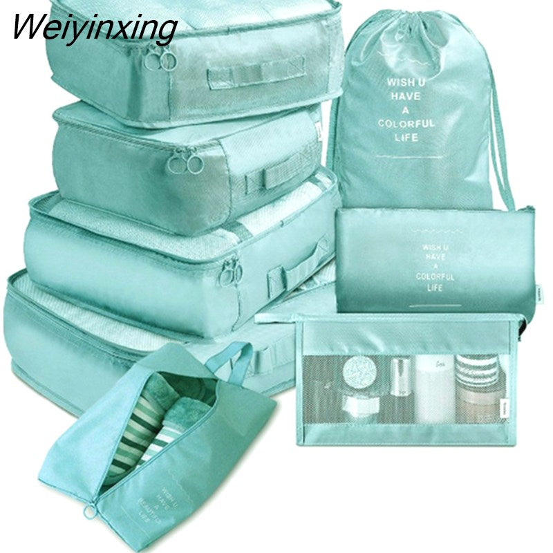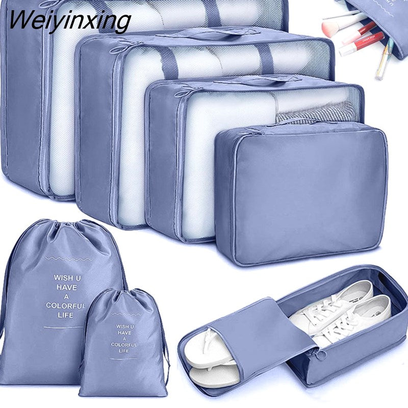 Weiyinxing Set Packing Cubes Organizer Bags For Travel Storage Makeup Luggage Drawstring Bag Bathroom Organizer Clothes Storage