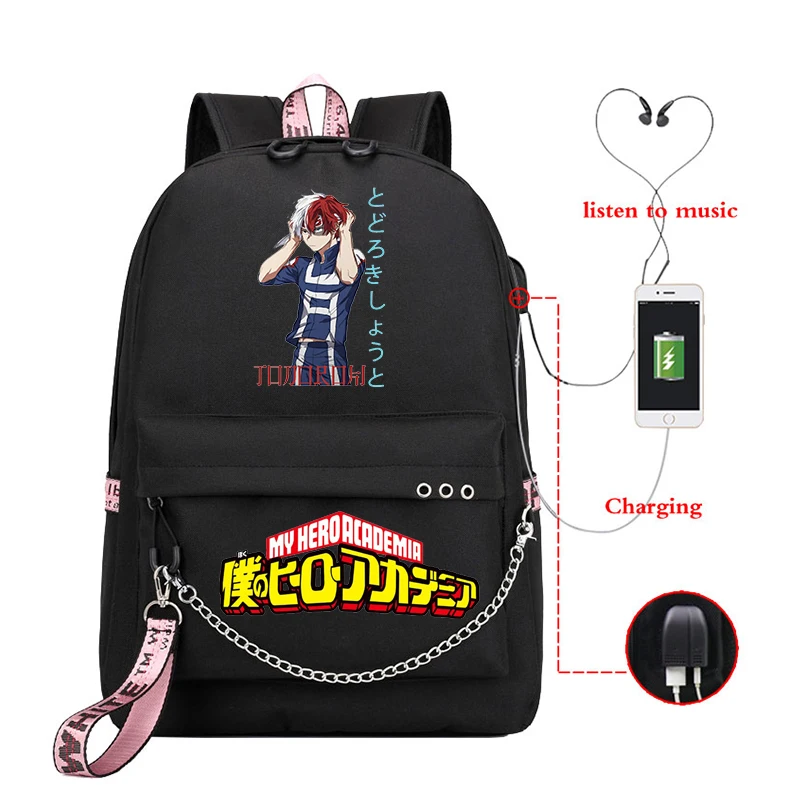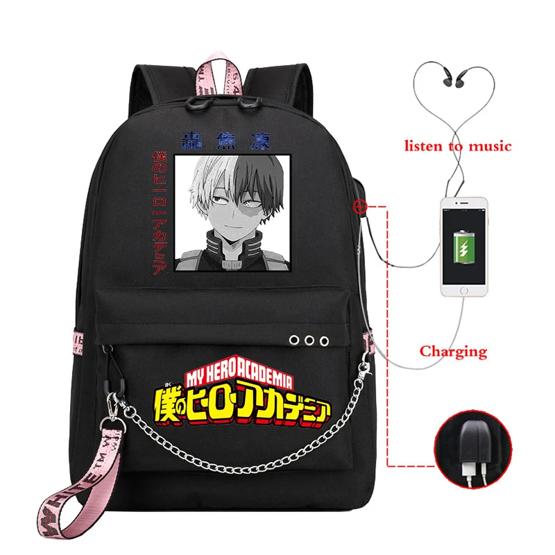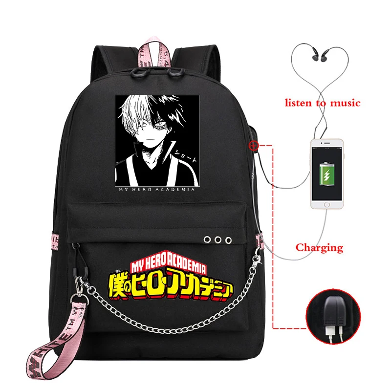 Weiyinxing Shoto Todoroki Boku No Hero Academia Book Bag Usb Charging Designer Backpack My Hero Academia Girls School Bag Mochila