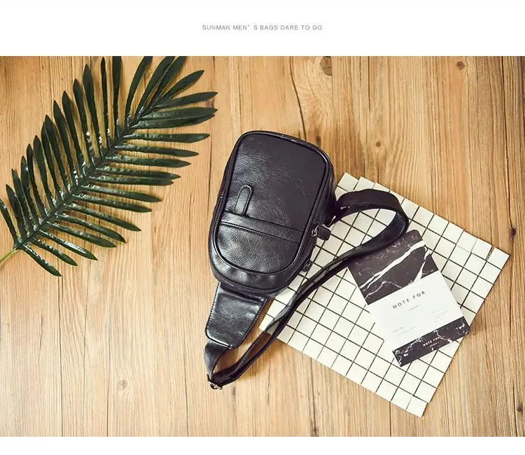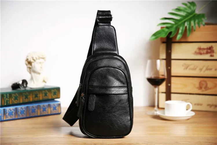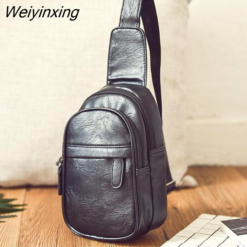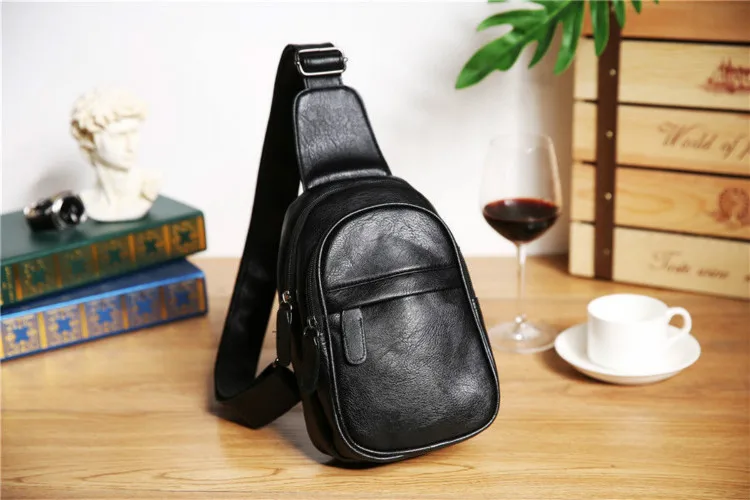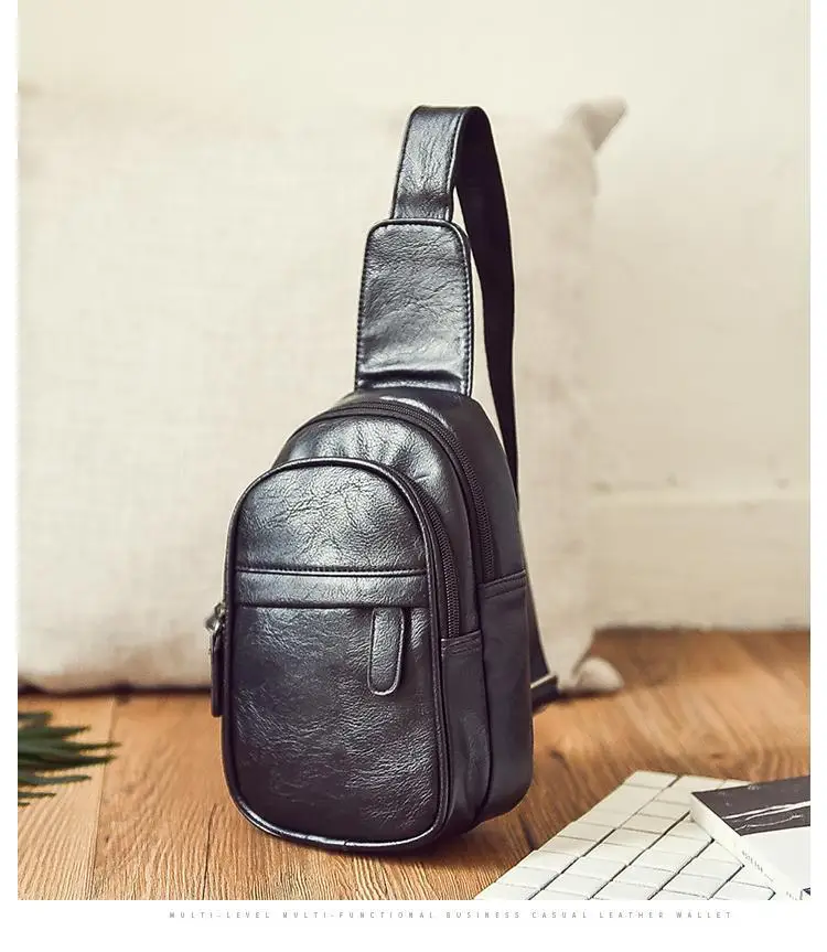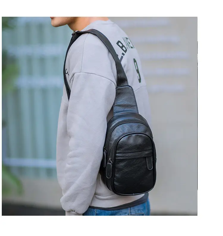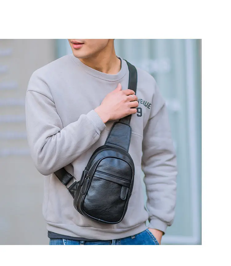 Weiyinxing Simple Men's Small Chest Bag Messenger Bag Men's Korean Fashion Casual Soft Leather Shoulder Bag Outdoor Sports Backpack
