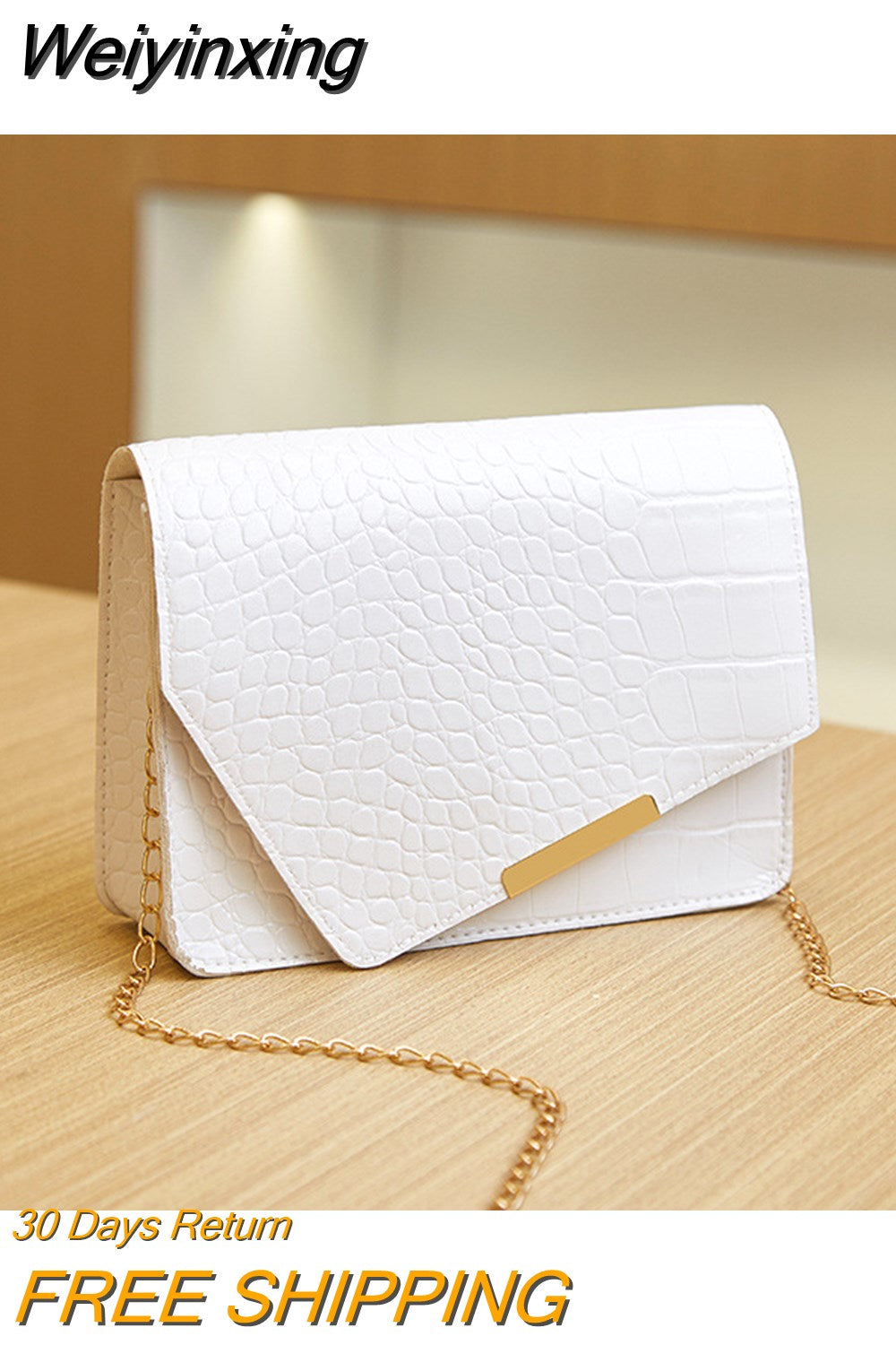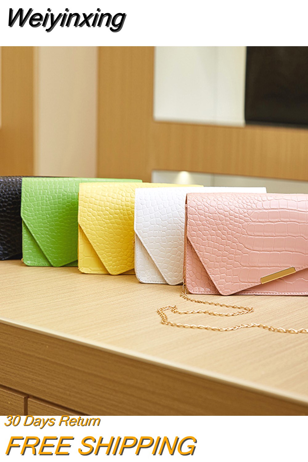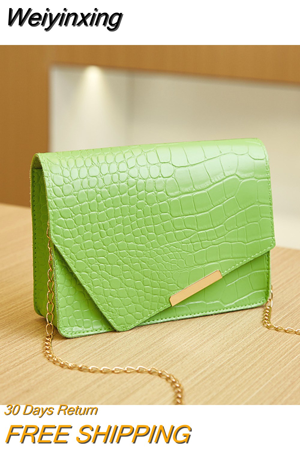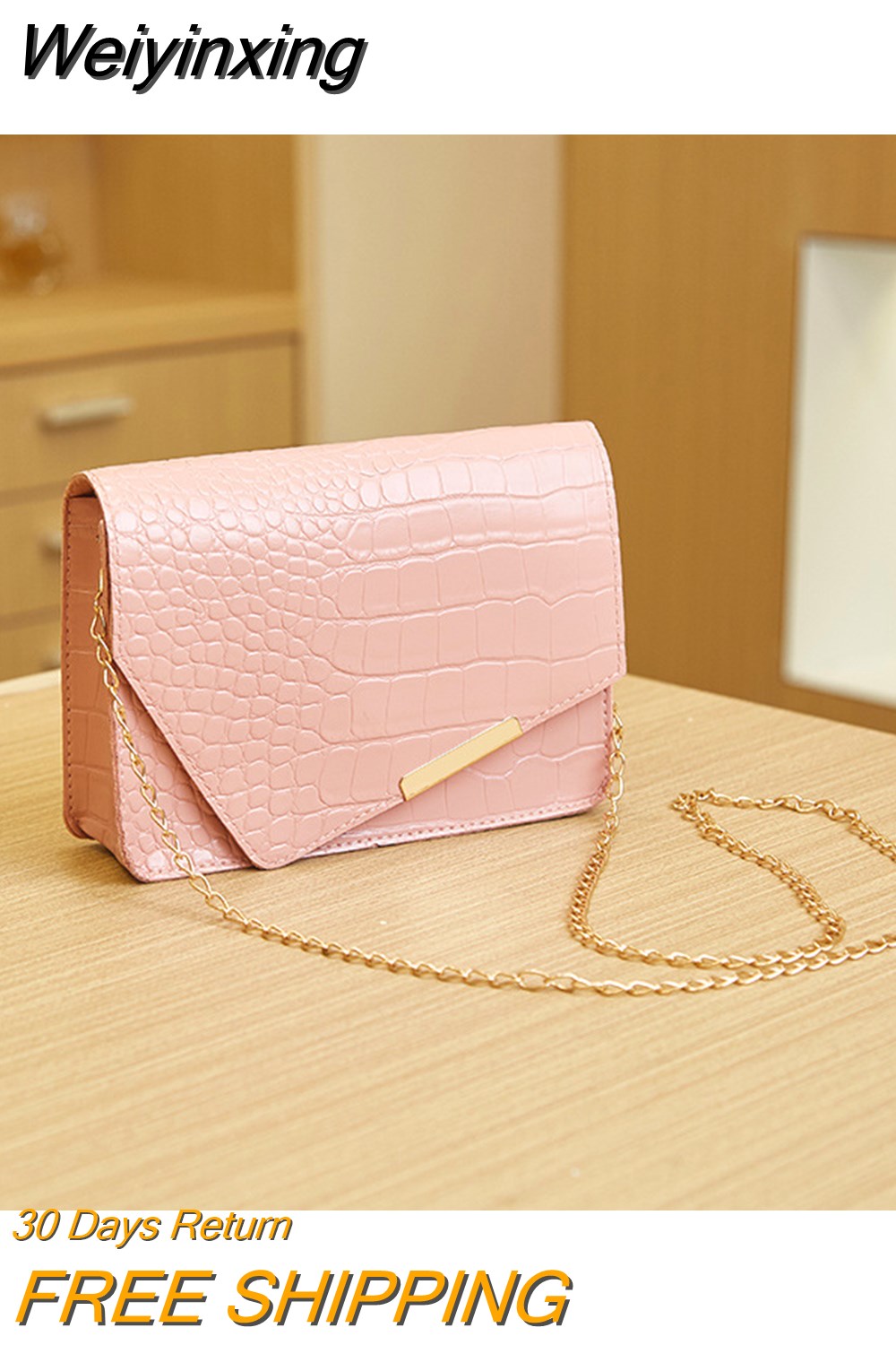 Weiyinxing Small Square Bag Lady's Grace One Shoulder Crossbody Bag Delicate Stone Grain Girl Style Chain Commuting Bag Solid Color