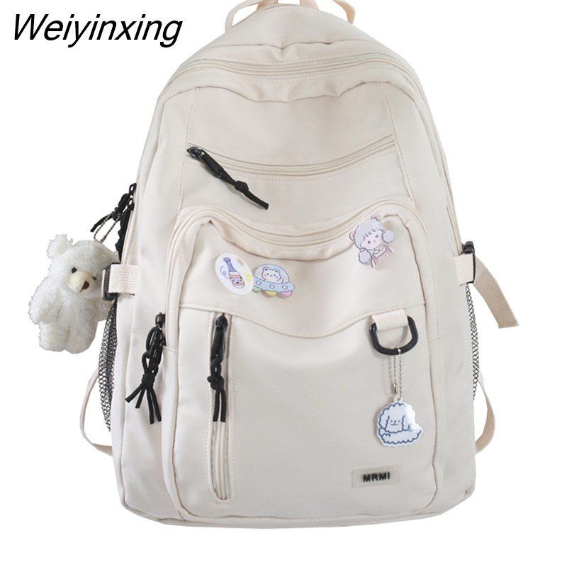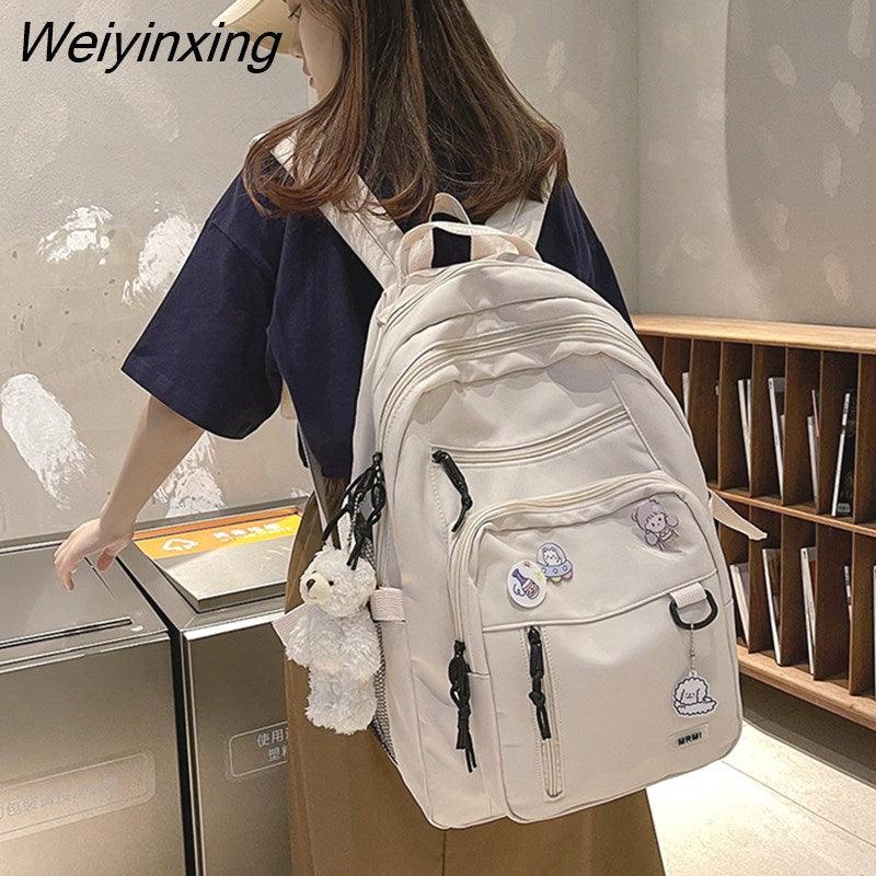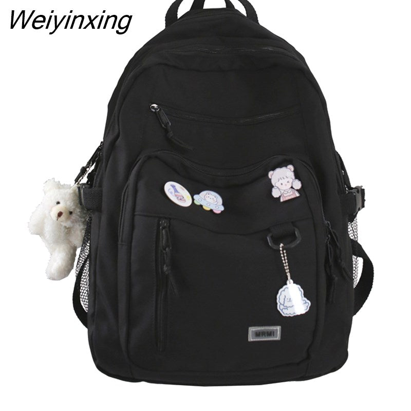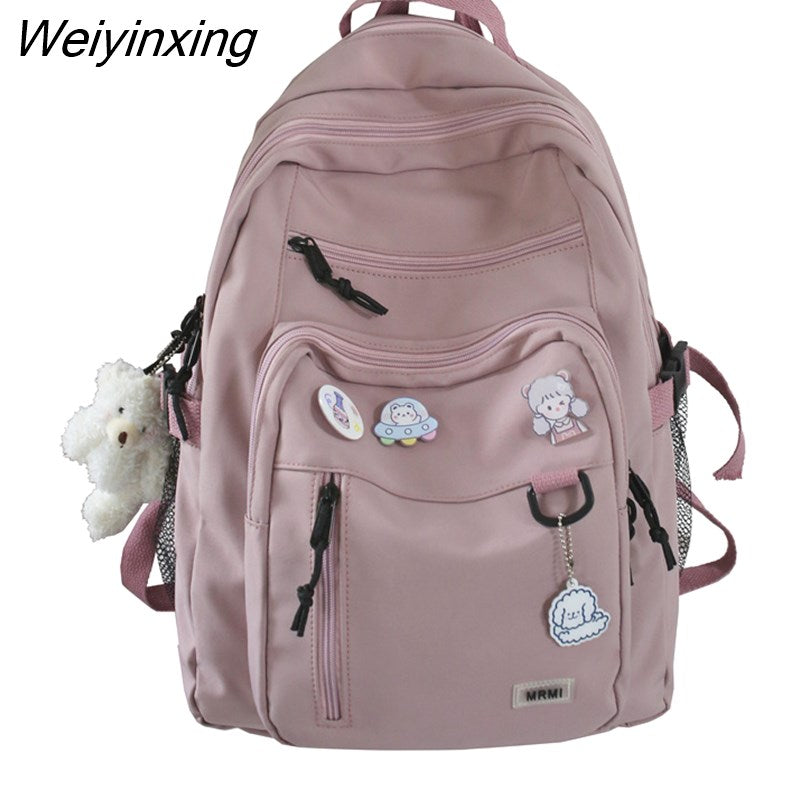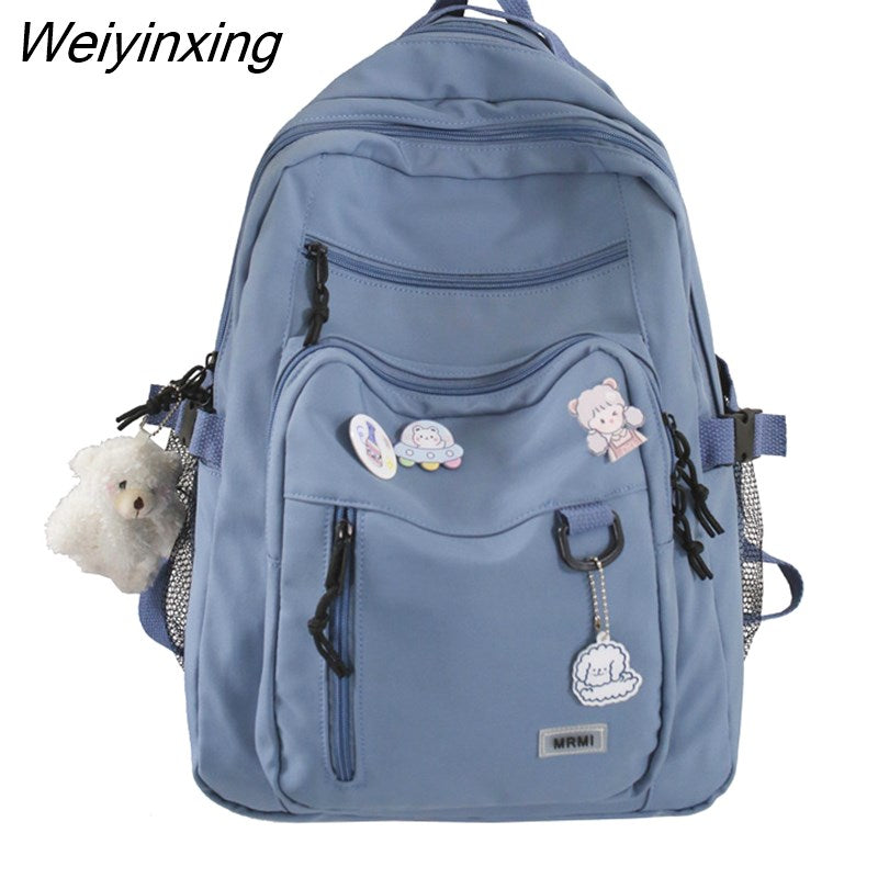 Weiyinxing Solid Color Big Student Backpack Rucksack Girl School Bag High Capacity Women Backpack Female Cute Leisure Travel Mochila
