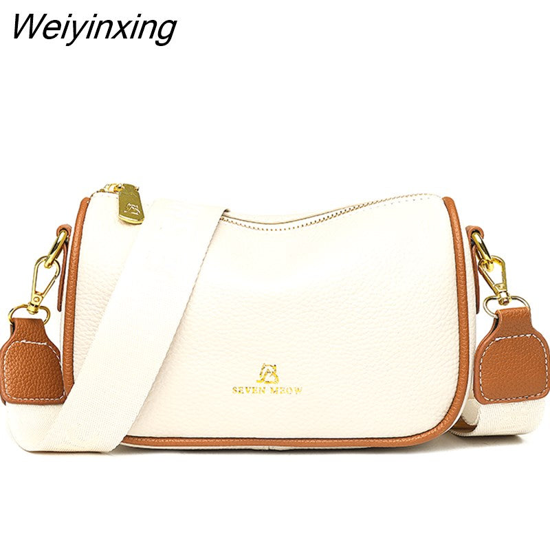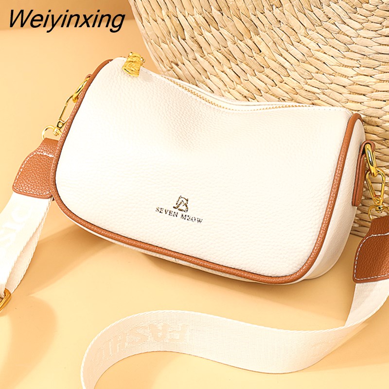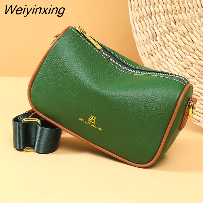 Weiyinxing Solid Color Fashion Shoulder Handbags Female Travel Cross Body Bag Weave Small cowhide Leather Crossbody Bags for Women