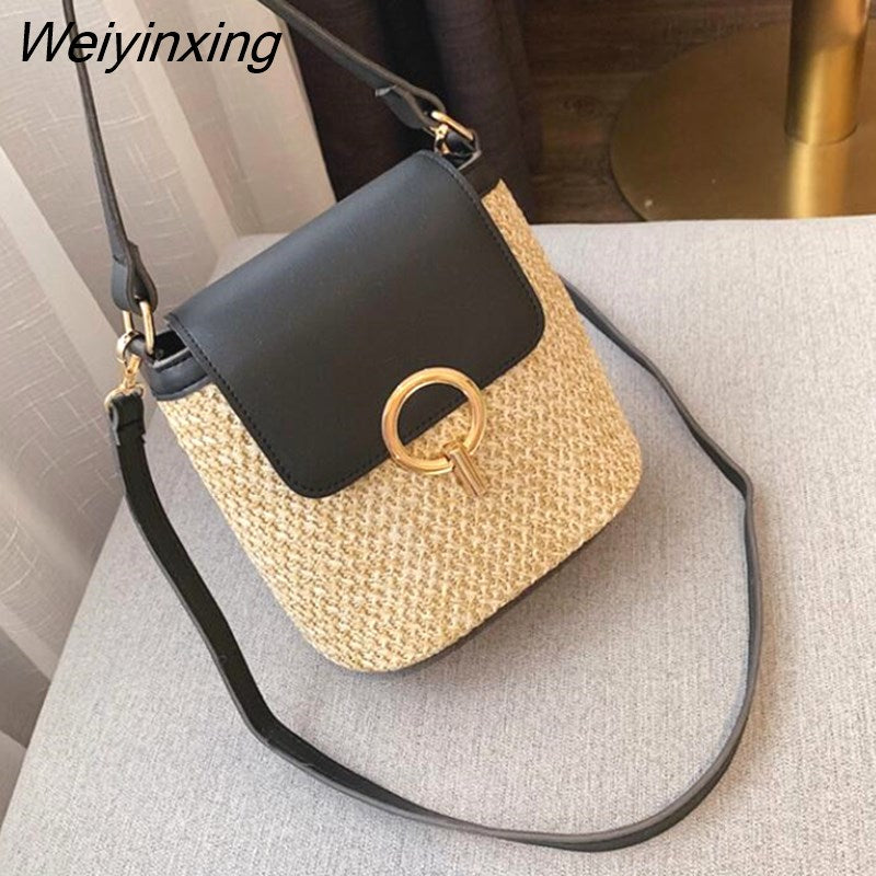 Weiyinxing Straw Shoulder Messenger Bags Women's Designer Luxury Woven Bucket Bag 2023 New Summer Beach Straw Bag Female Handbag