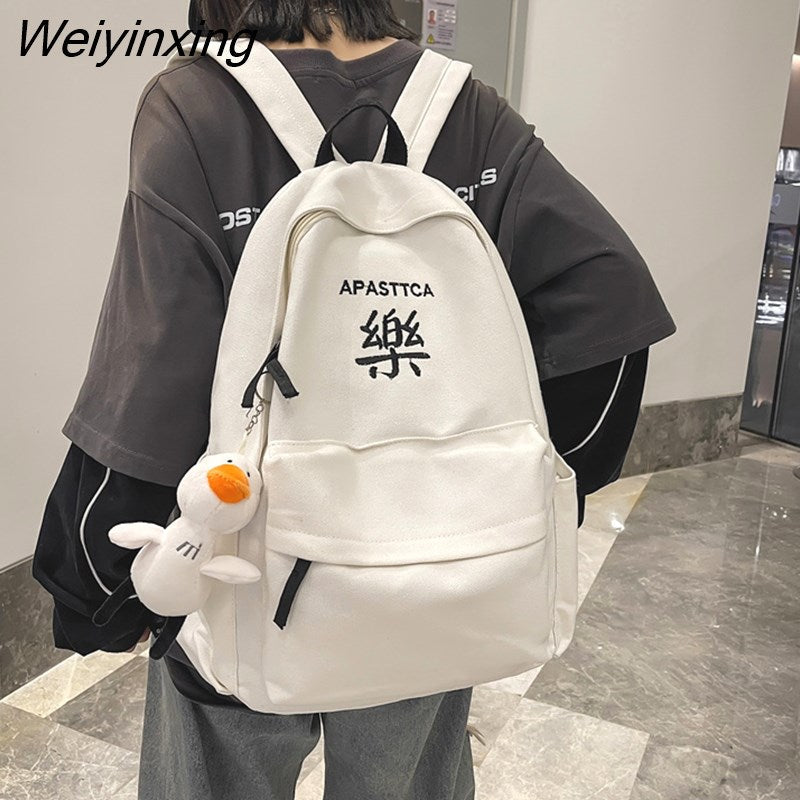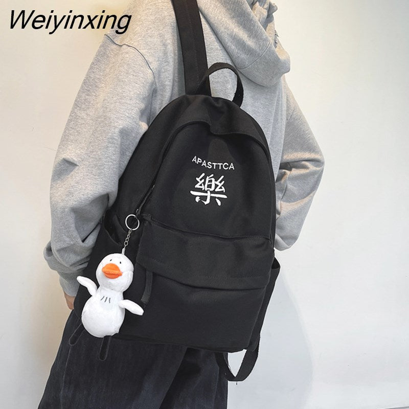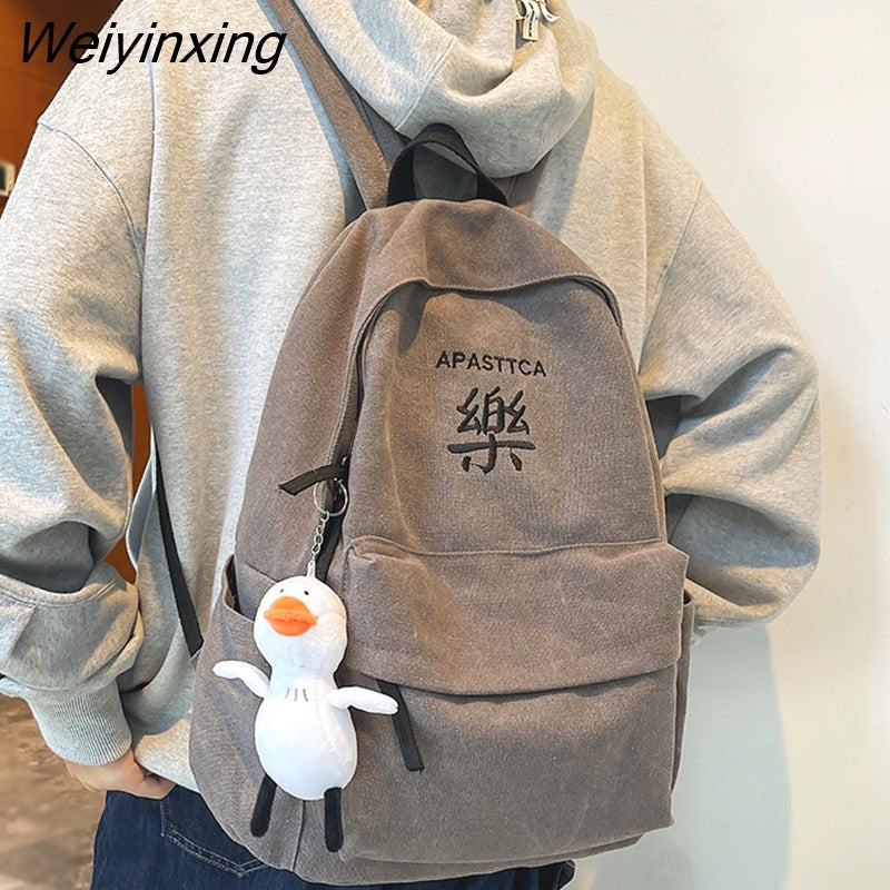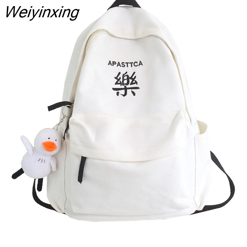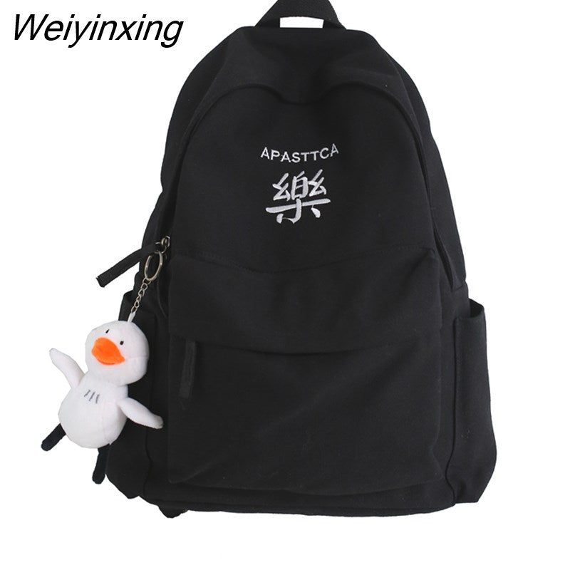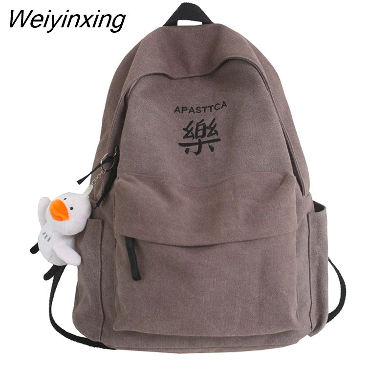 Weiyinxing Style Embroidered Student Female Canvas Backpack Women Vintage School Bag Teenage Girl Cute Fashion Ladies Book Backpack