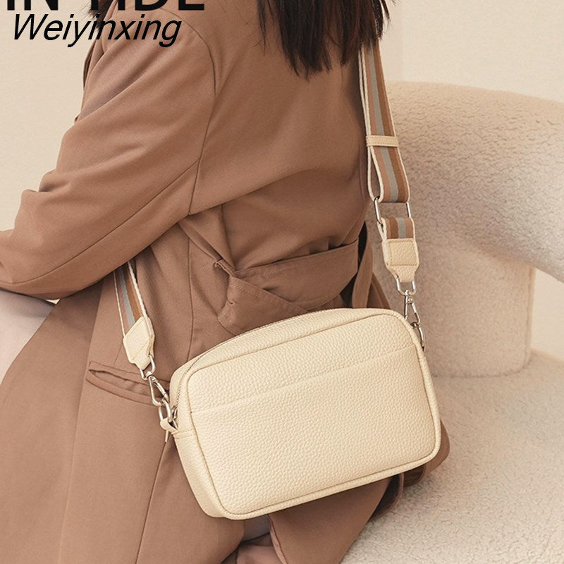 Weiyinxing Style Small Shoulder Bags For Women Solid Color Pu Leather Wide Strap Crossbody Bag Female Phone Purse Messenger Handbag