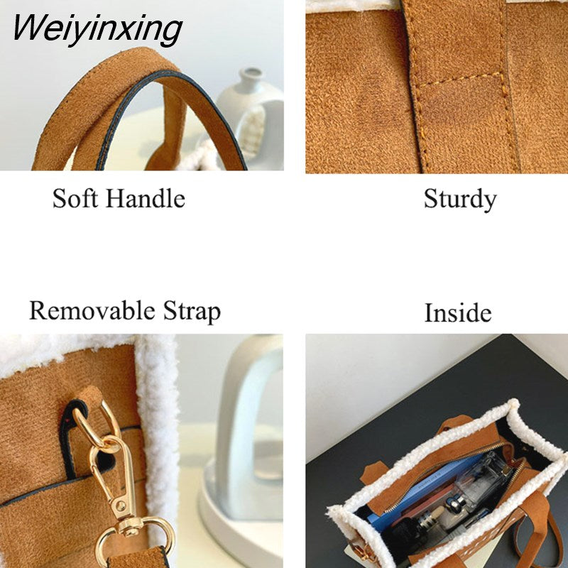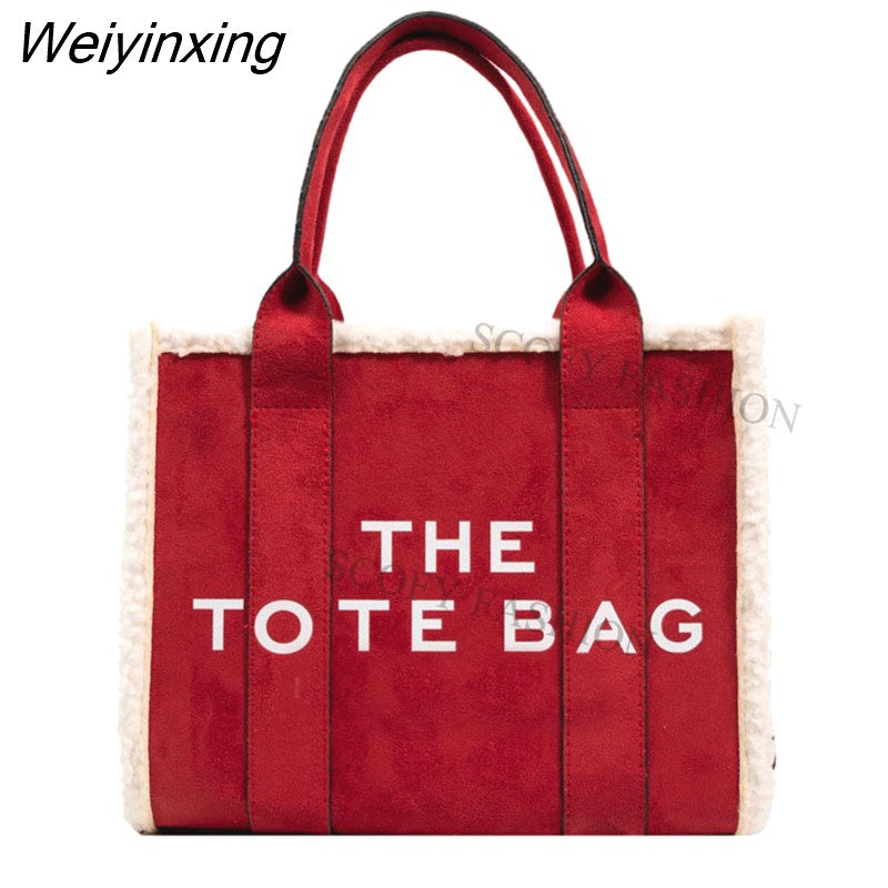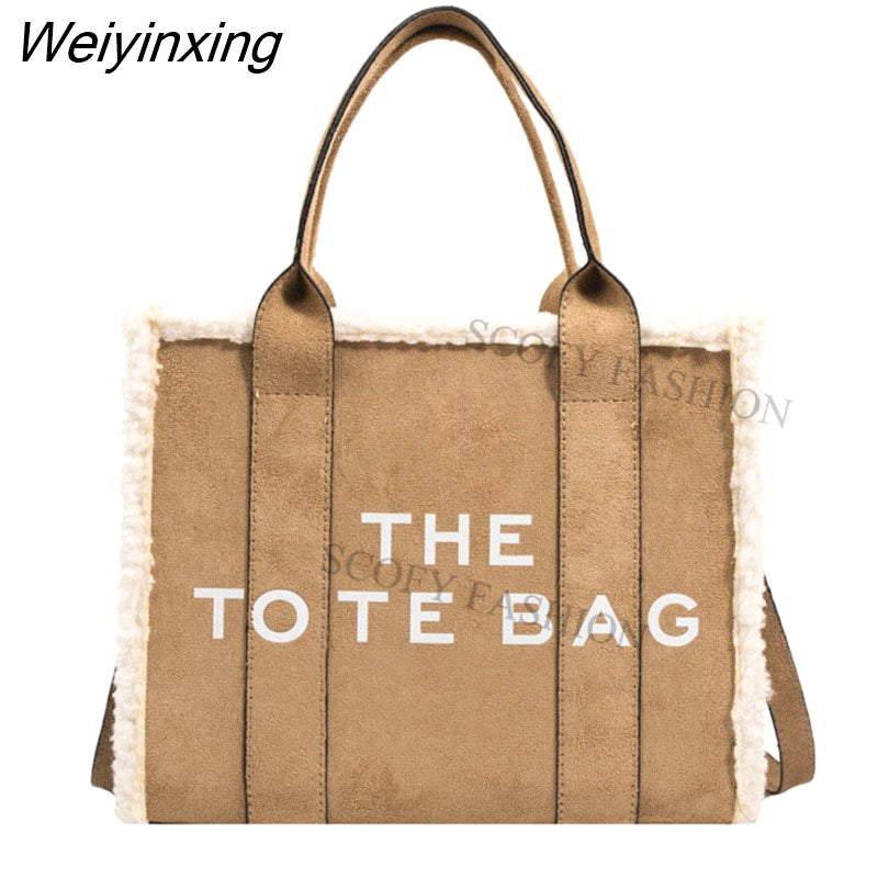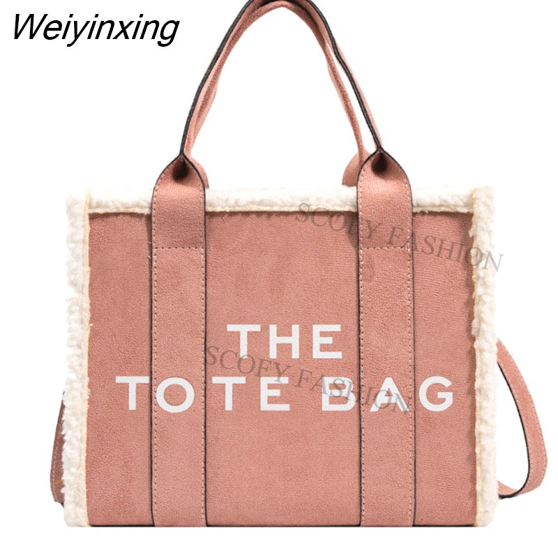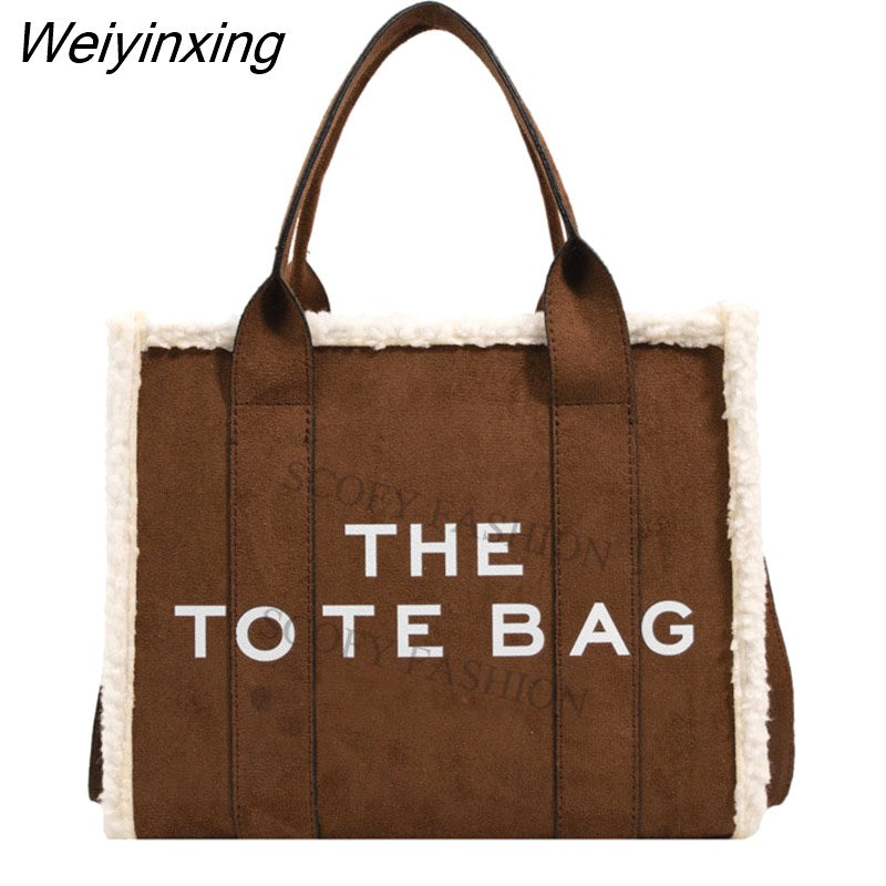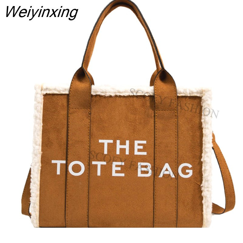 Weiyinxing Suede Luxury Designer Tote Bags for Women Shopping Travel Handbag Winter Plush Shoulder Bags Chic Leisure Crossbody Bag