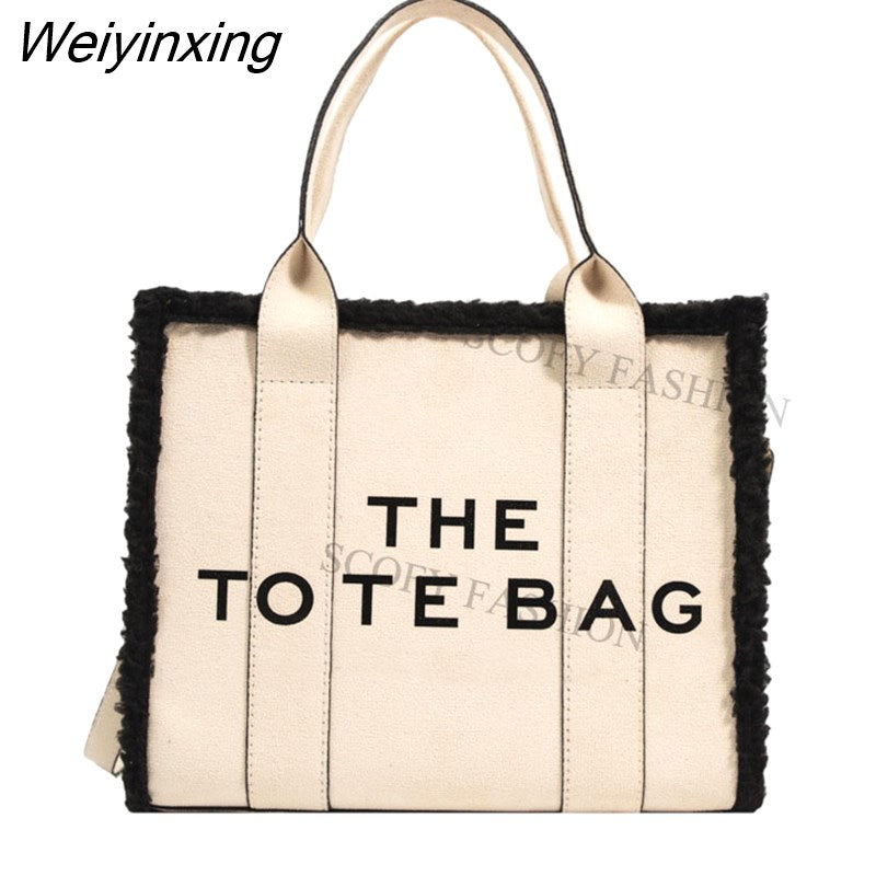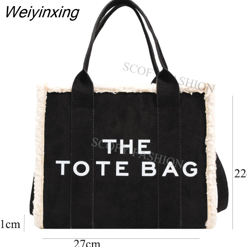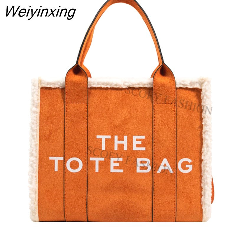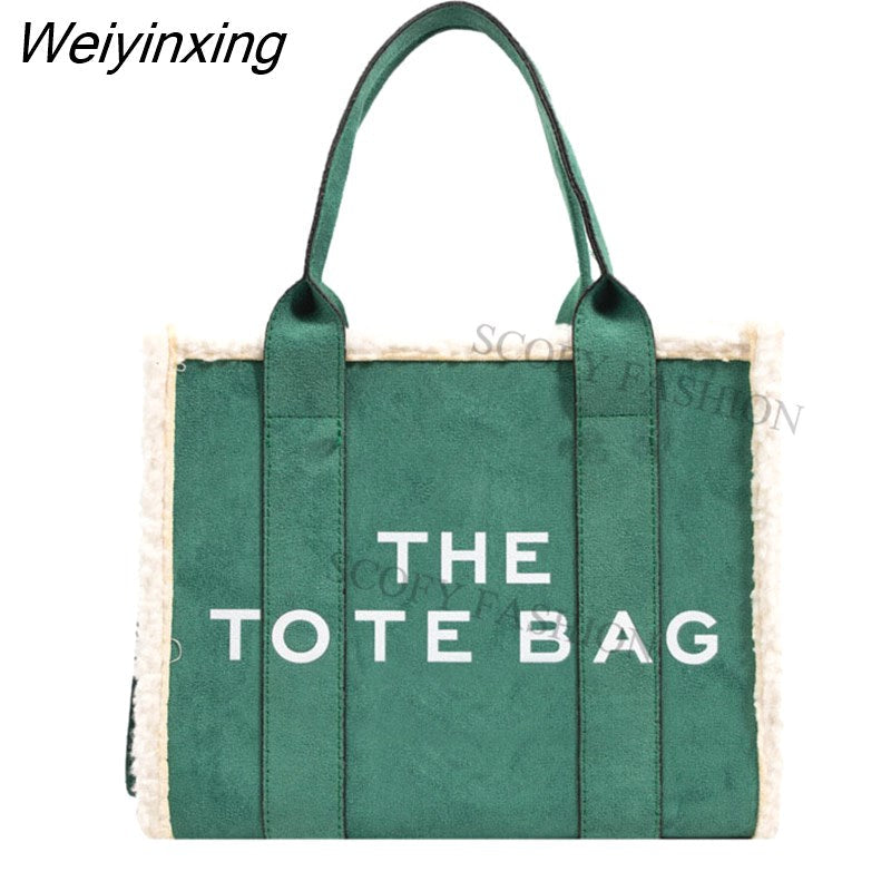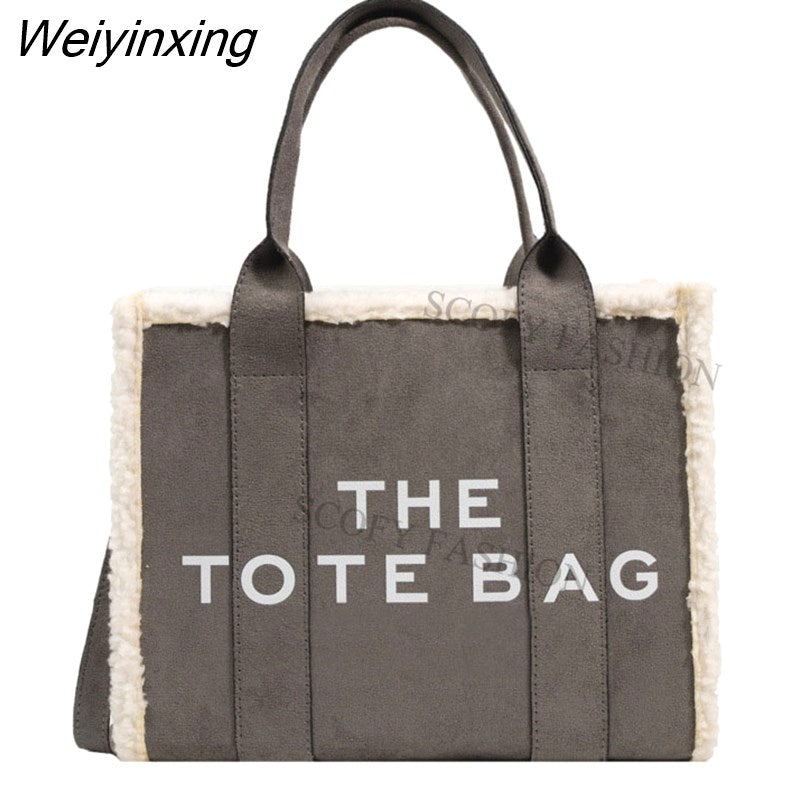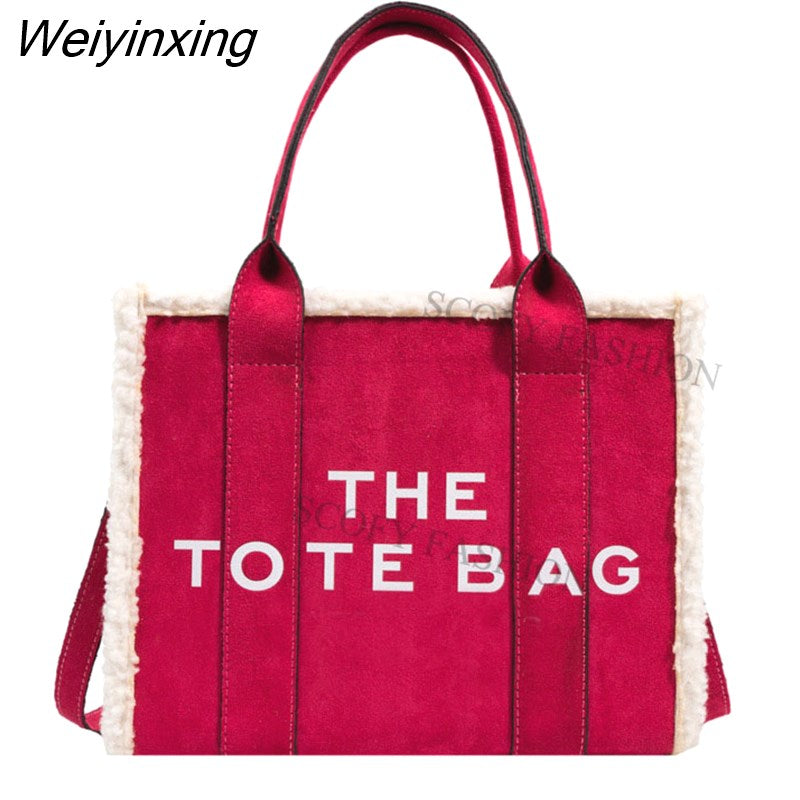 Weiyinxing Suede Luxury Designer Tote Bags for Women Shopping Travel Handbag Winter Plush Shoulder Bags Chic Leisure Crossbody Bag
