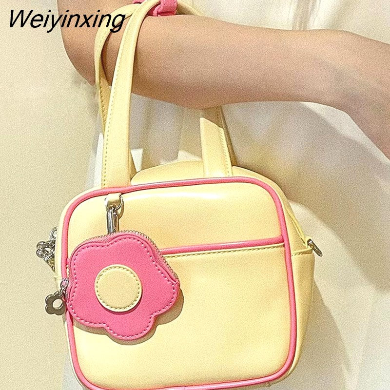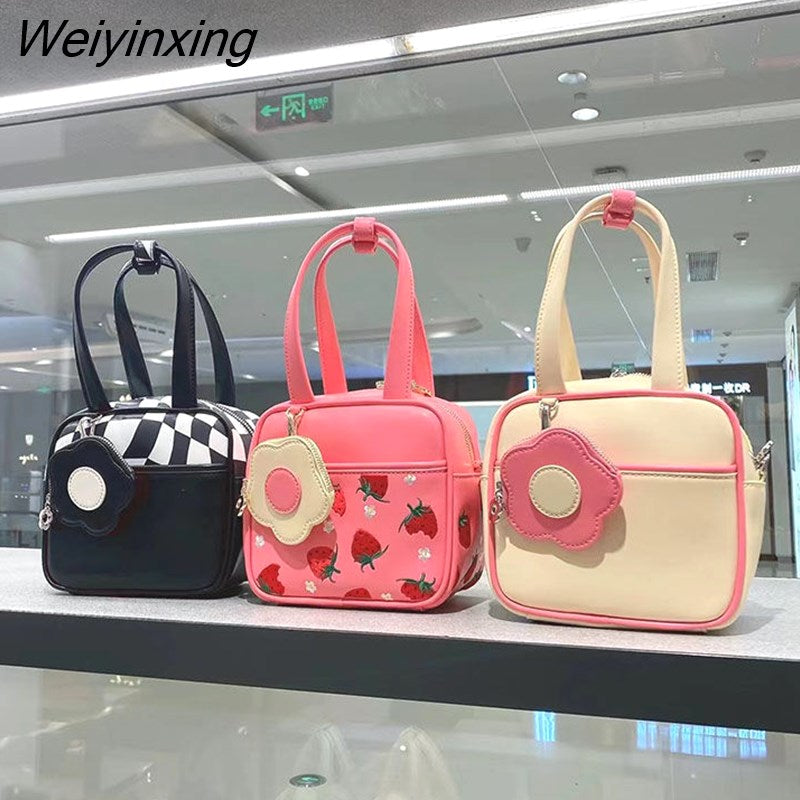 Weiyinxing Summer Flower Coin Purse Crossbody Small Square Bag Strawberry Print Hand Pillow Bag Shoulder Underarm Bag Women Bag
