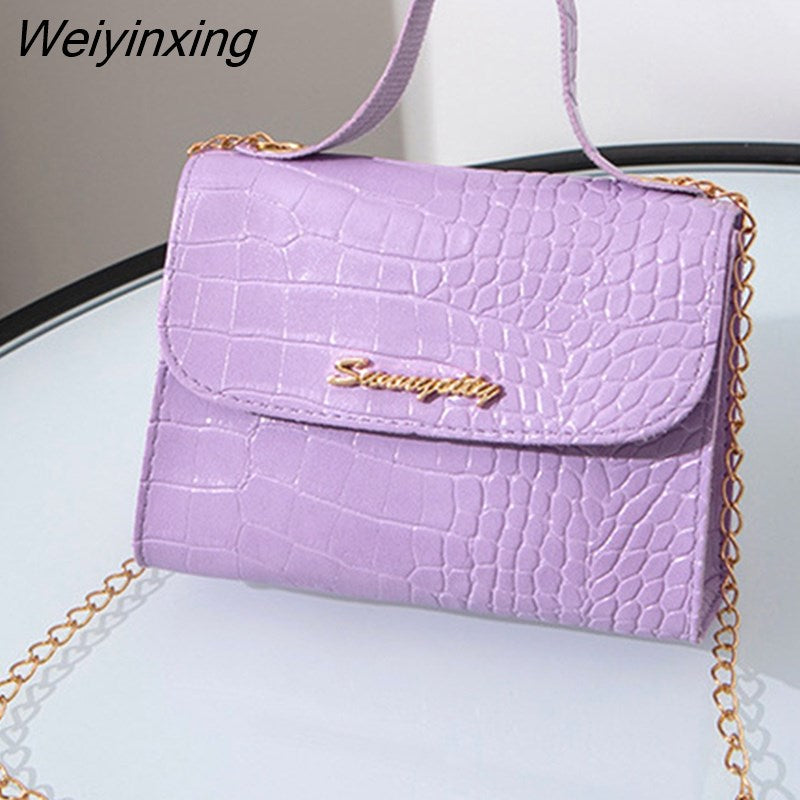 Weiyinxing Trend Women Messenger Bag Fashion Alligator Pattern Female Shoulder Bag Handbag with Chain Strap Ladies Crossbody Bags