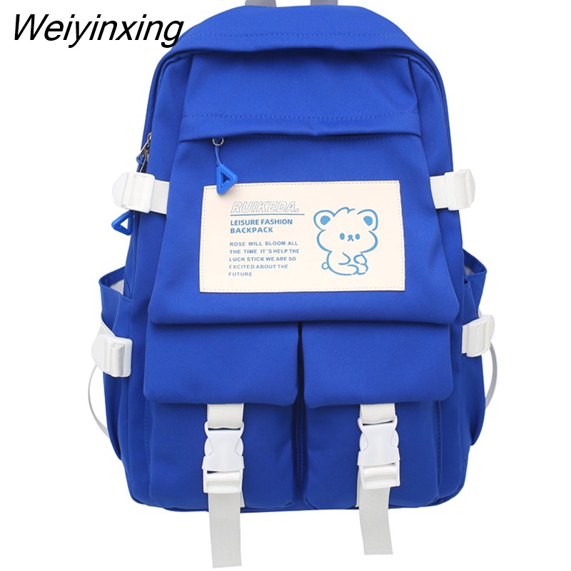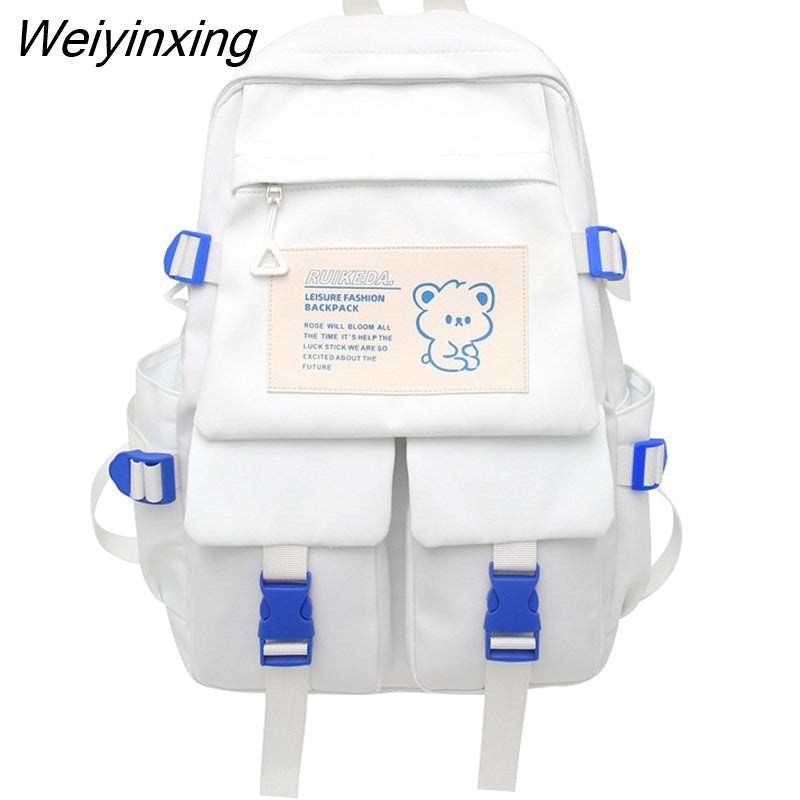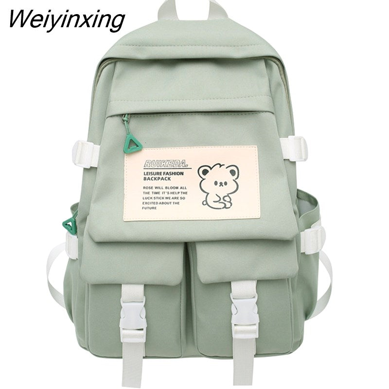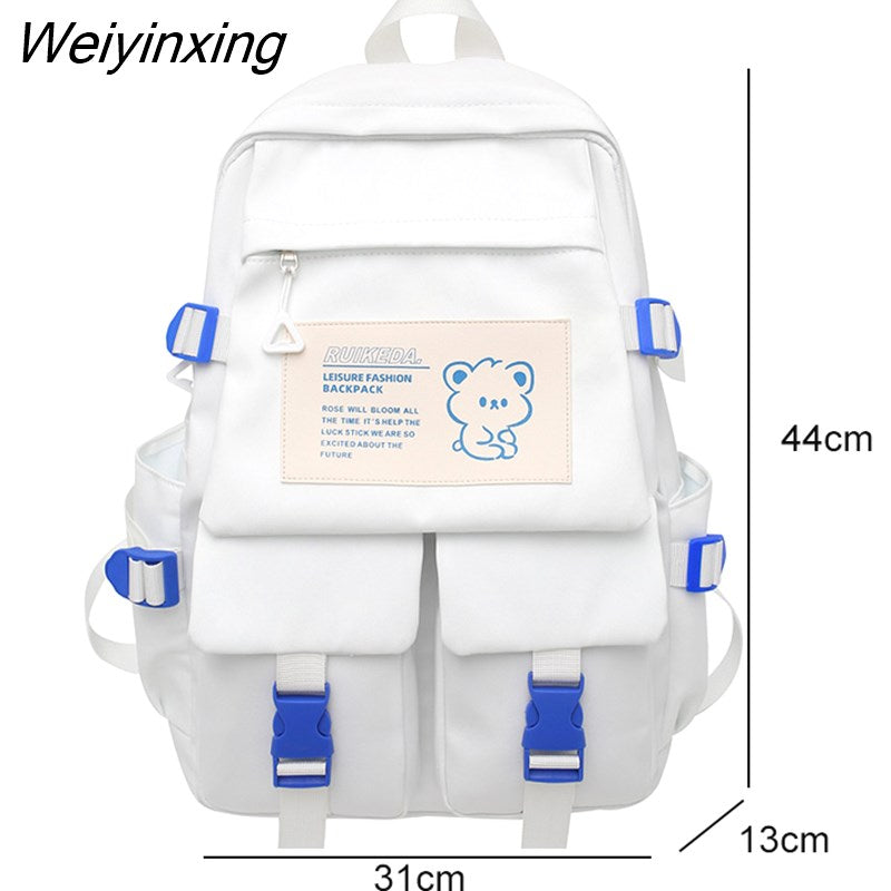 Weiyinxing Unisex Multiple Pocket Waterproof Nylon Backpack Large Capacity Insert Buckle Women Travel Bag Teenagers Kawaii Schoolbag