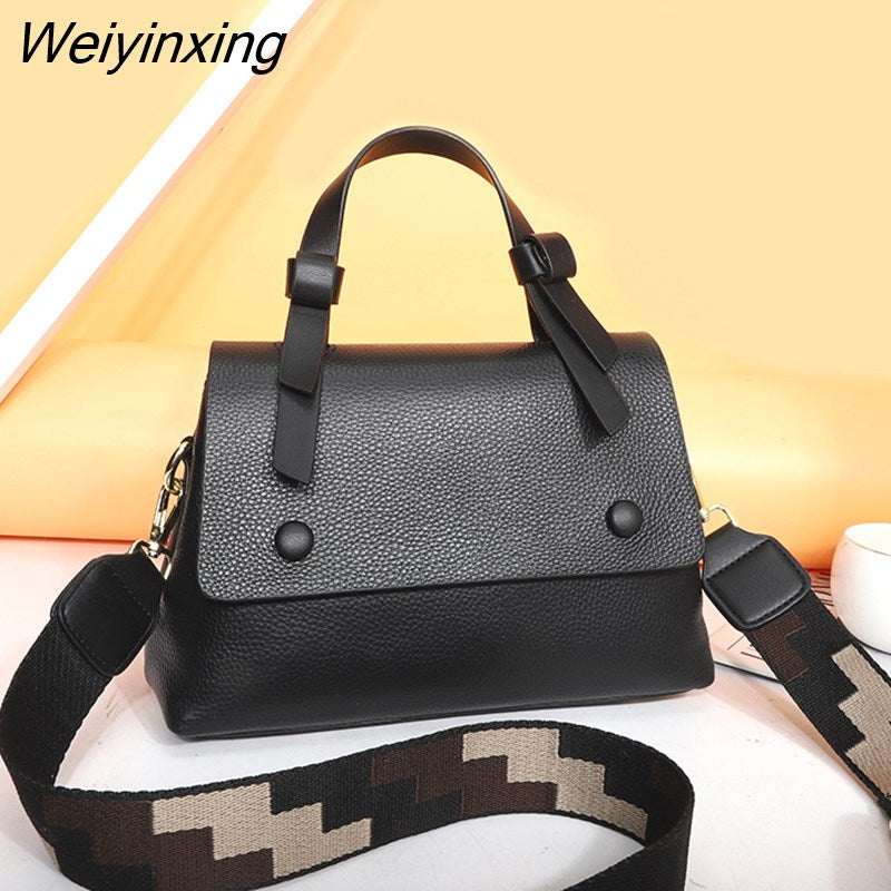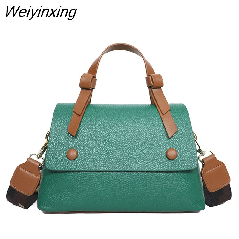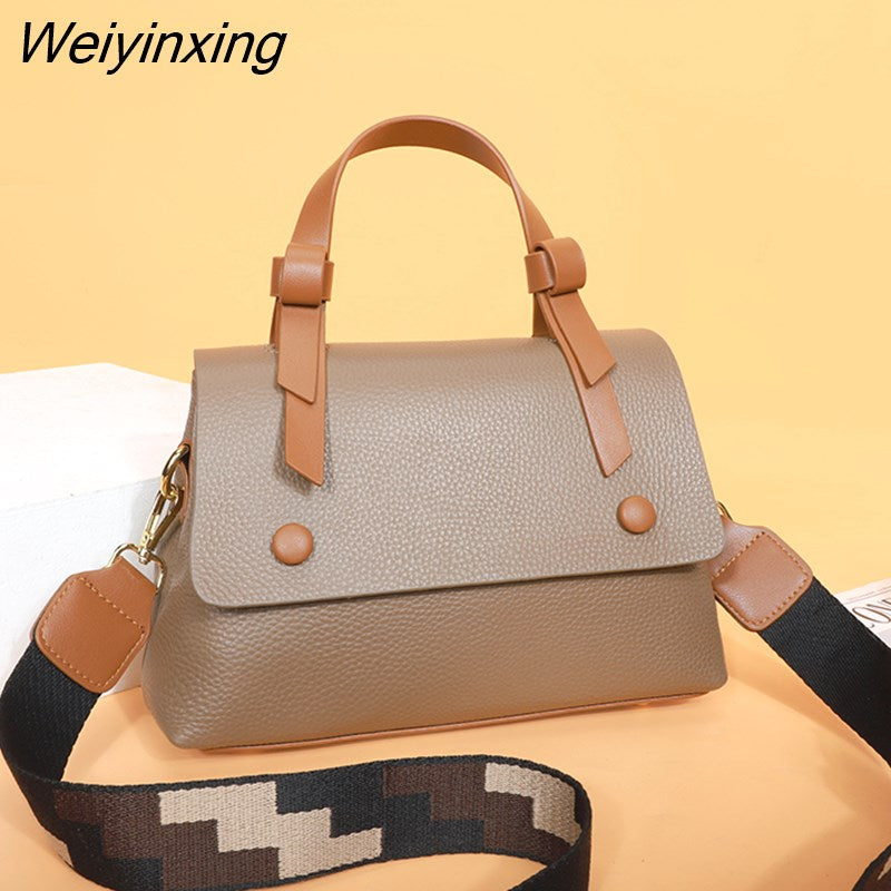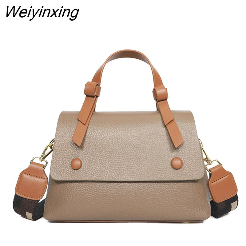 Weiyinxing Versatile CrossBody Soft Bag Contrasting Luxury Designer Shoulder Bag Lady Genuine Leather Handbag Casual Ladies Tote Sac
