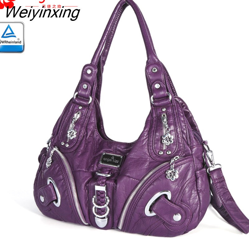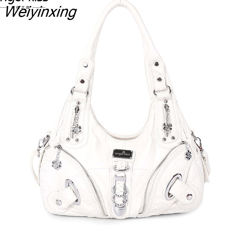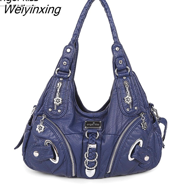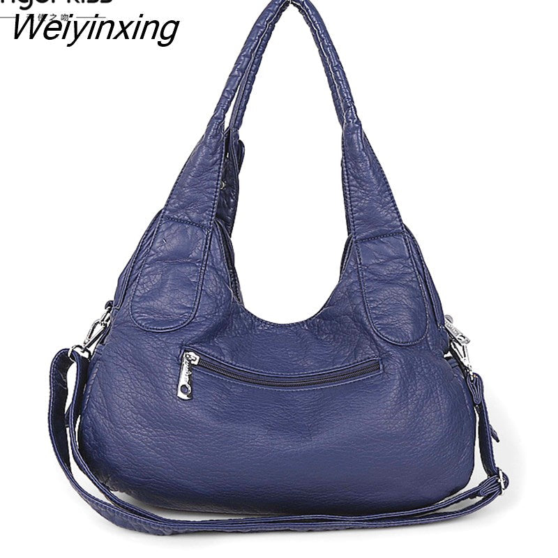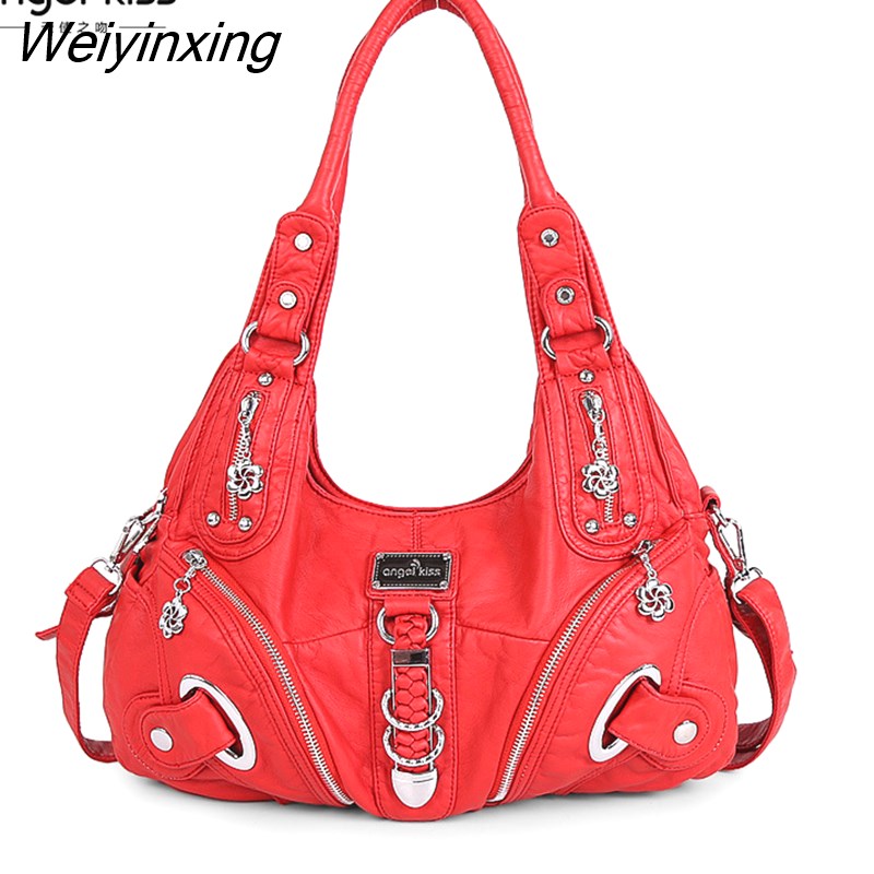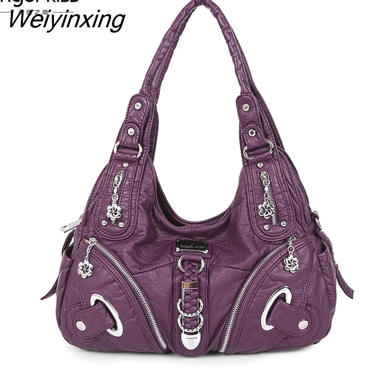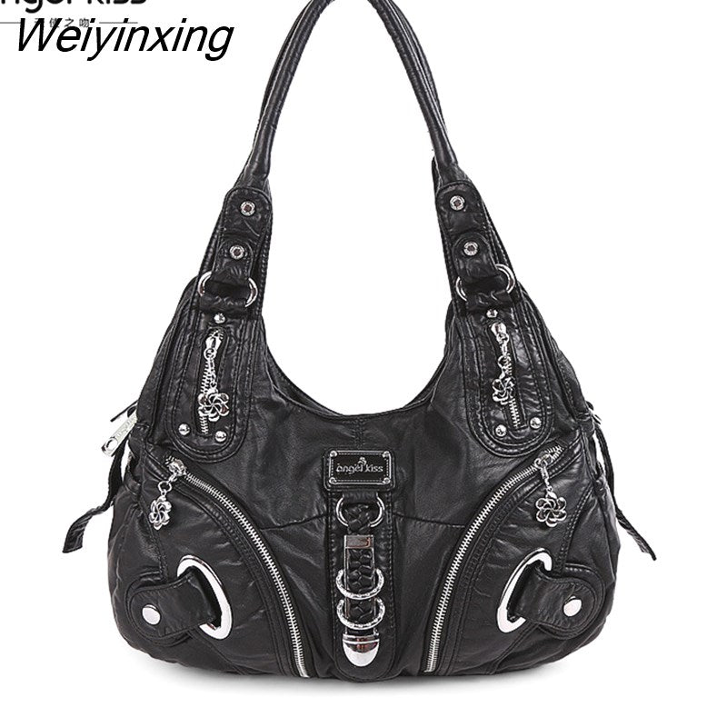 Weiyinxing Washed Shoulder Bags for Women 2023 Classic Fashion Motorcycle Soft Handbags PU Leather Shoppin Bags Chic Crossbody Bag