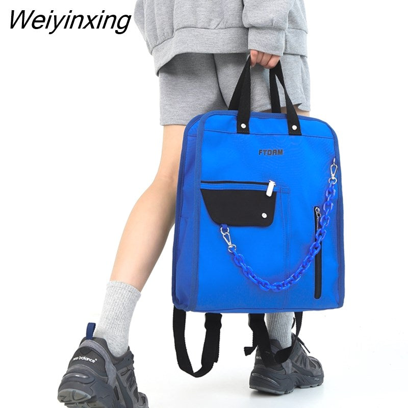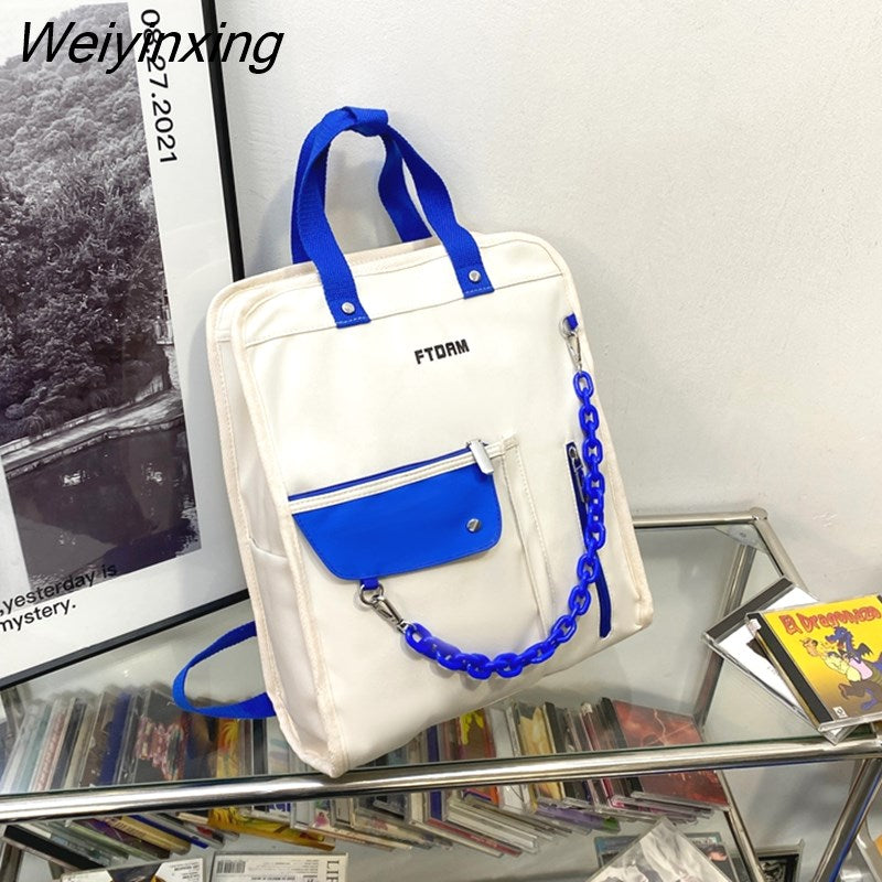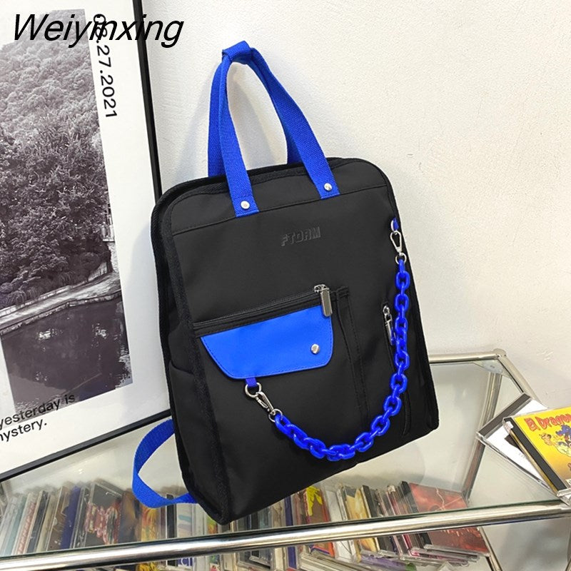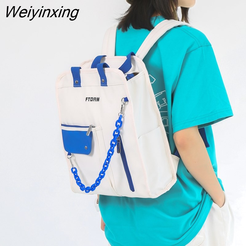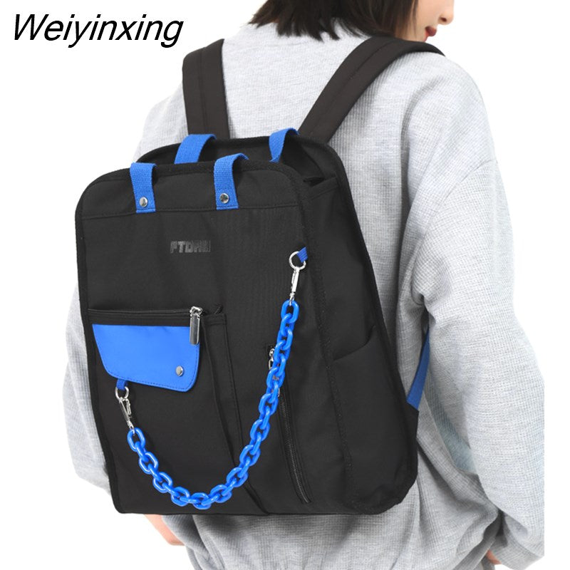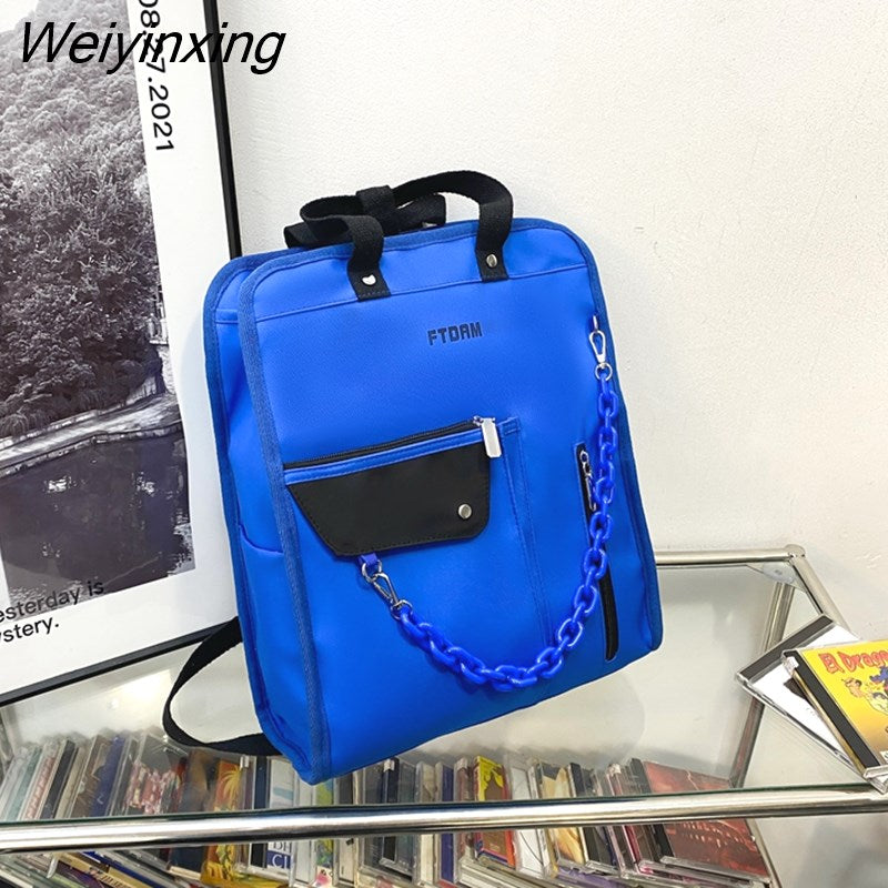Weiyinxing Waterproof Nylon Women Backpack Multi-functional Letter Printing Travel Bag Female Chain Square Back Pack Small Schoolbag