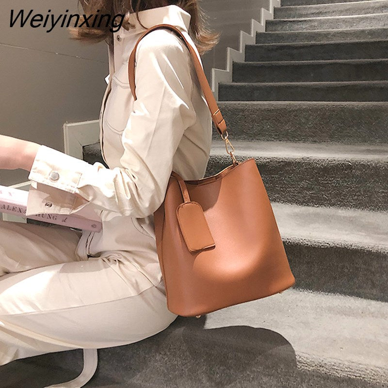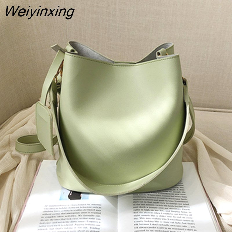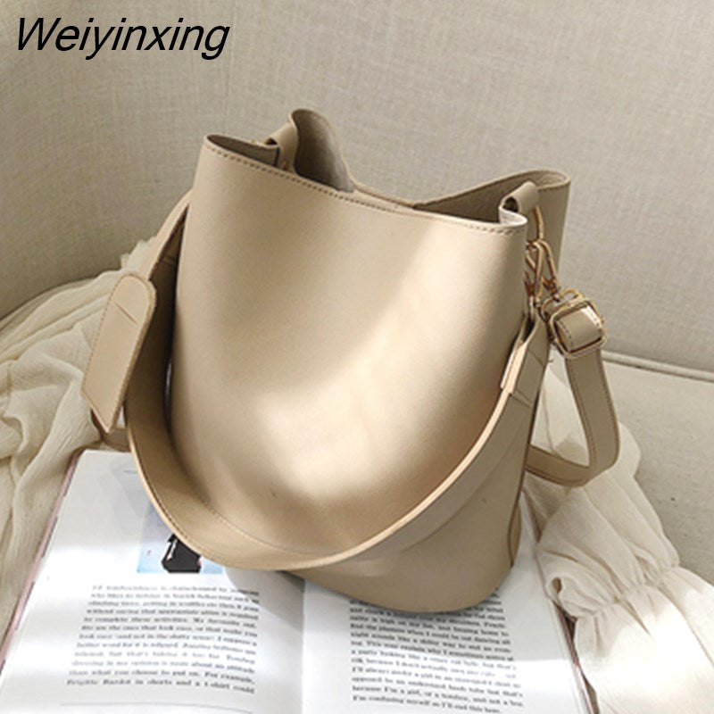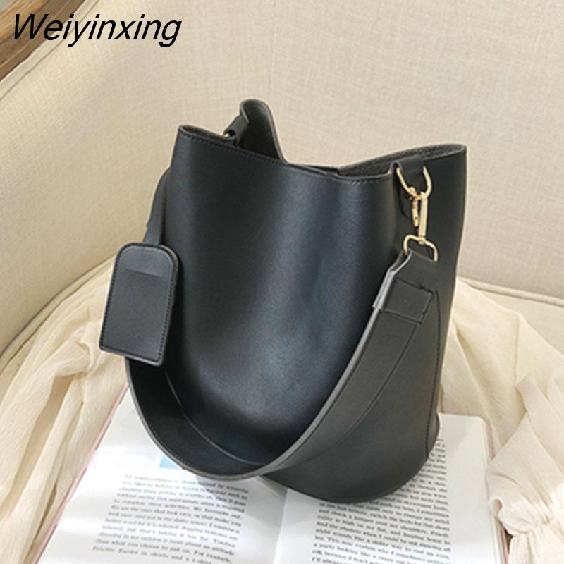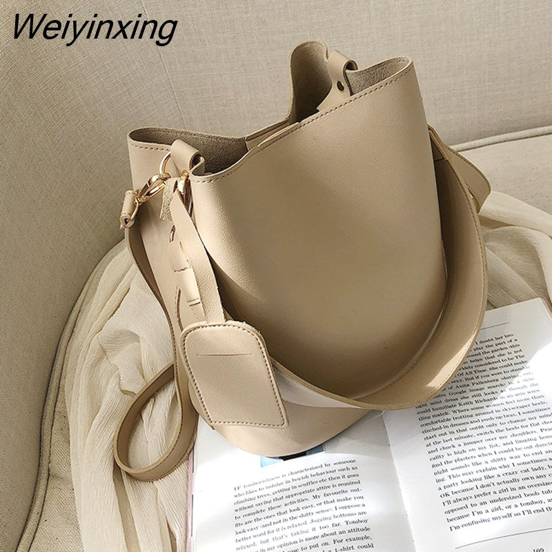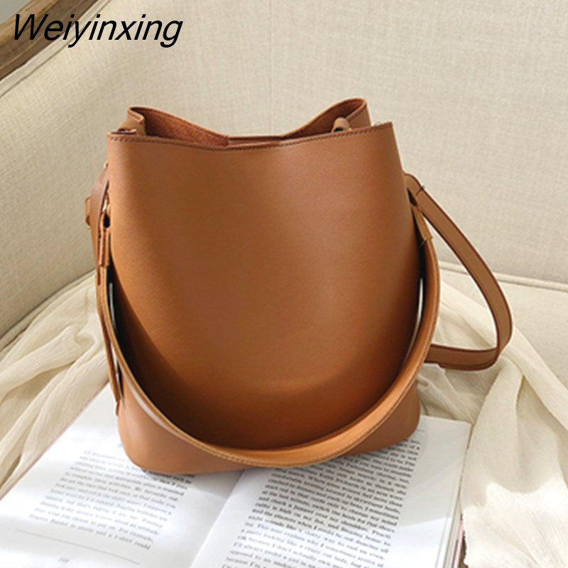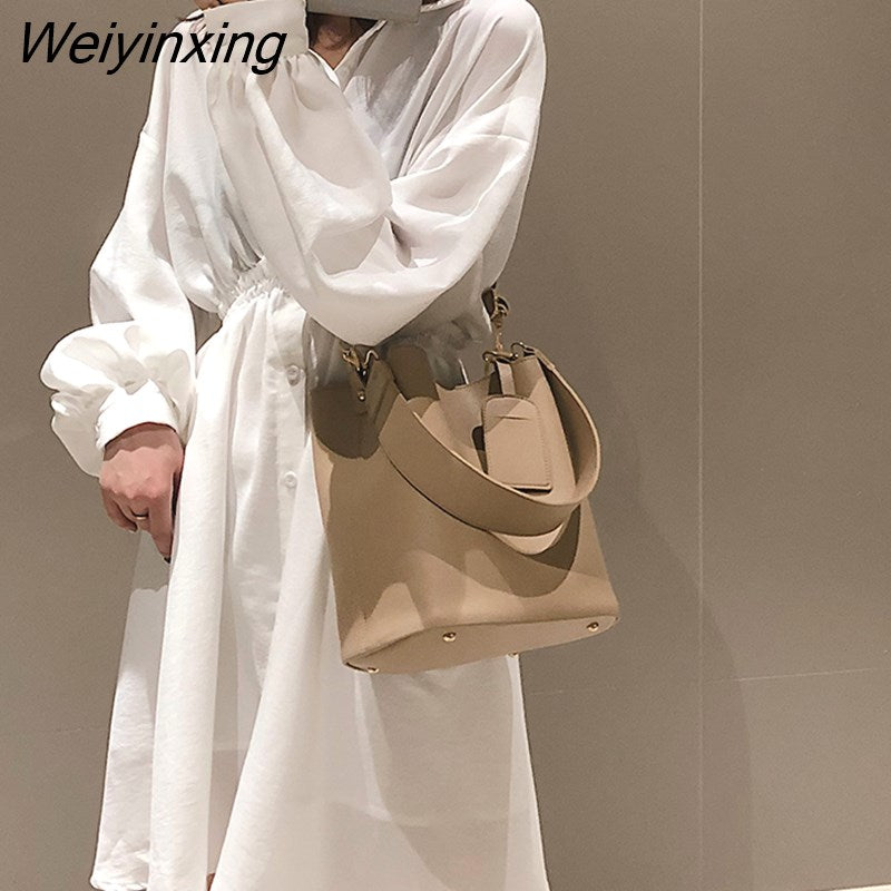 Weiyinxing wide strap bucket bag designer women shoulder bags luxury pu crossbody bag large capacity messenger bag simply purse 2023