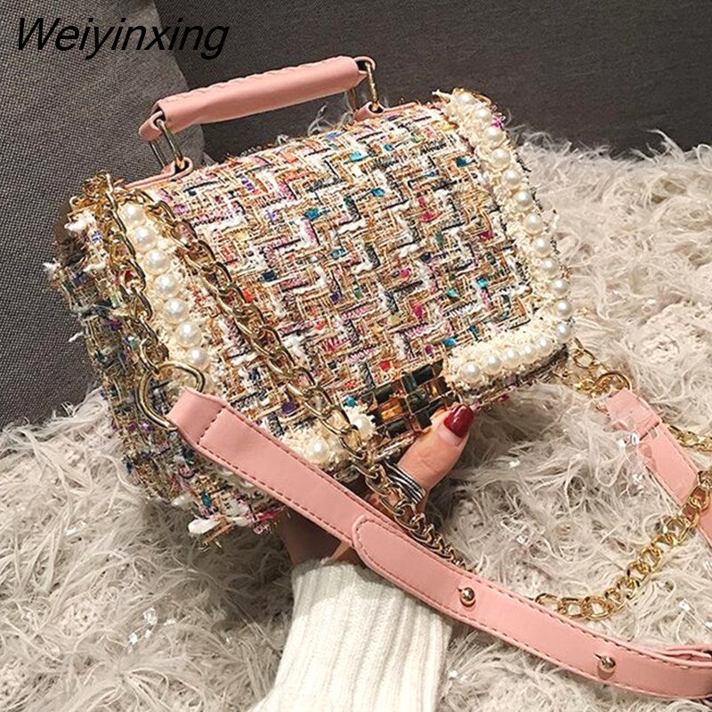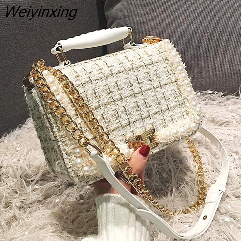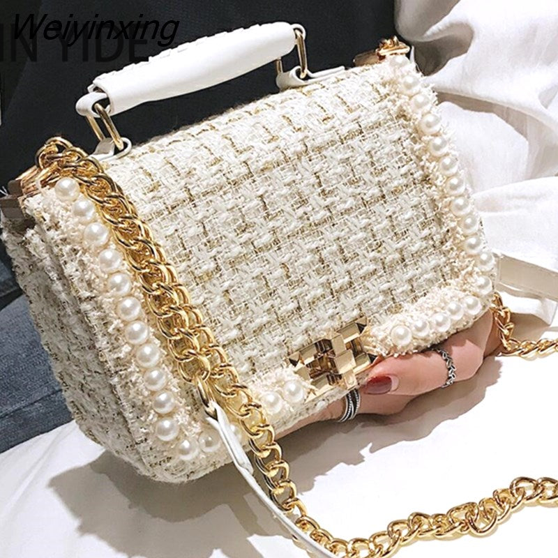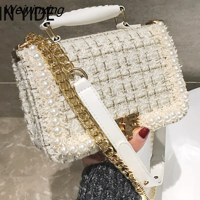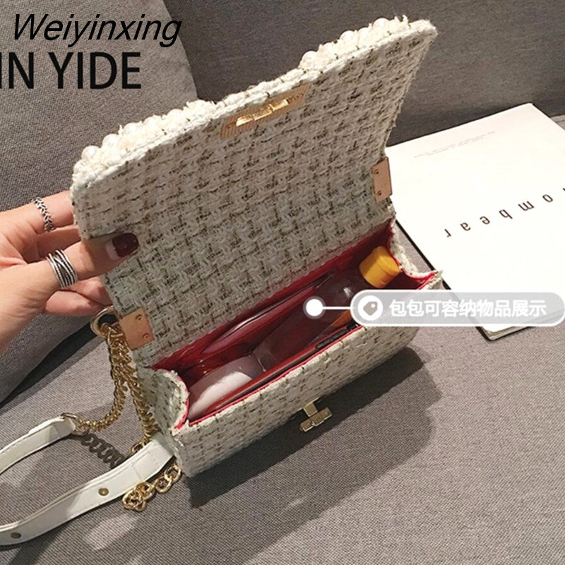 Weiyinxing Winter Fashion New Female Square Tote Bag Quality Woolen Pearl Women's Designer Handbag Ladies Chain Shoulder Crossbody Bag