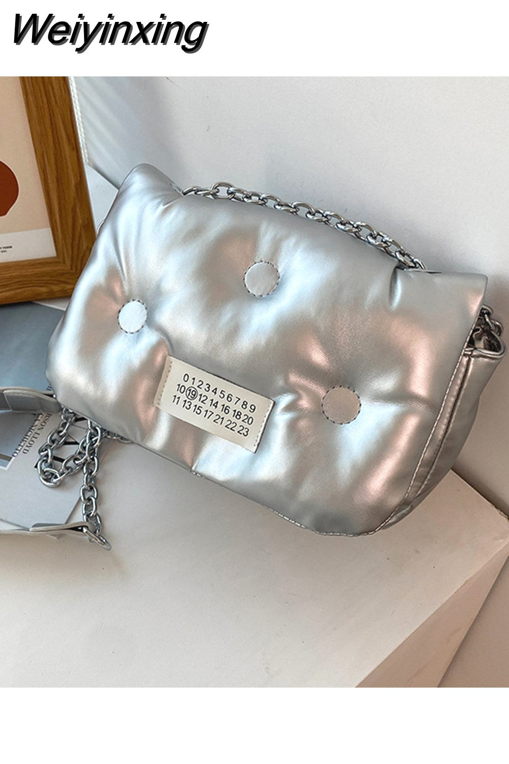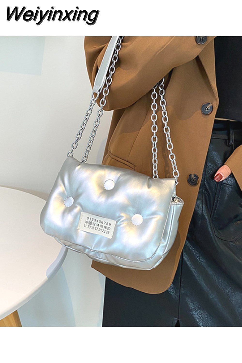 Weiyinxing Winter Fashion Womens Shoulder Bag Soft Purses and Handbags Luxury Designer Silver Solid Color Pillow Cloud Crossbody Bag