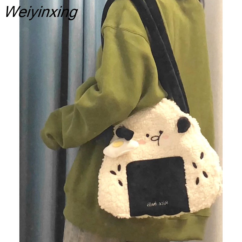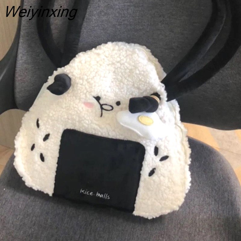 Weiyinxing Winter Japanese Cute Plush Corduroy Fashion Sushi Rice Ball Messenger Bag Women Bag Tote Bag Purses Handbags