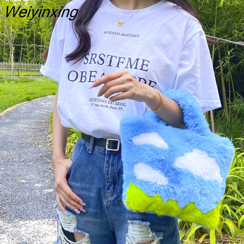 Weiyinxing Winter Original Design Cute White Cloud Blue Sky Plush Handbag Tote Women Bag Purses Handbags Tote Bags Crosbody Bag