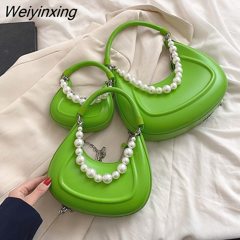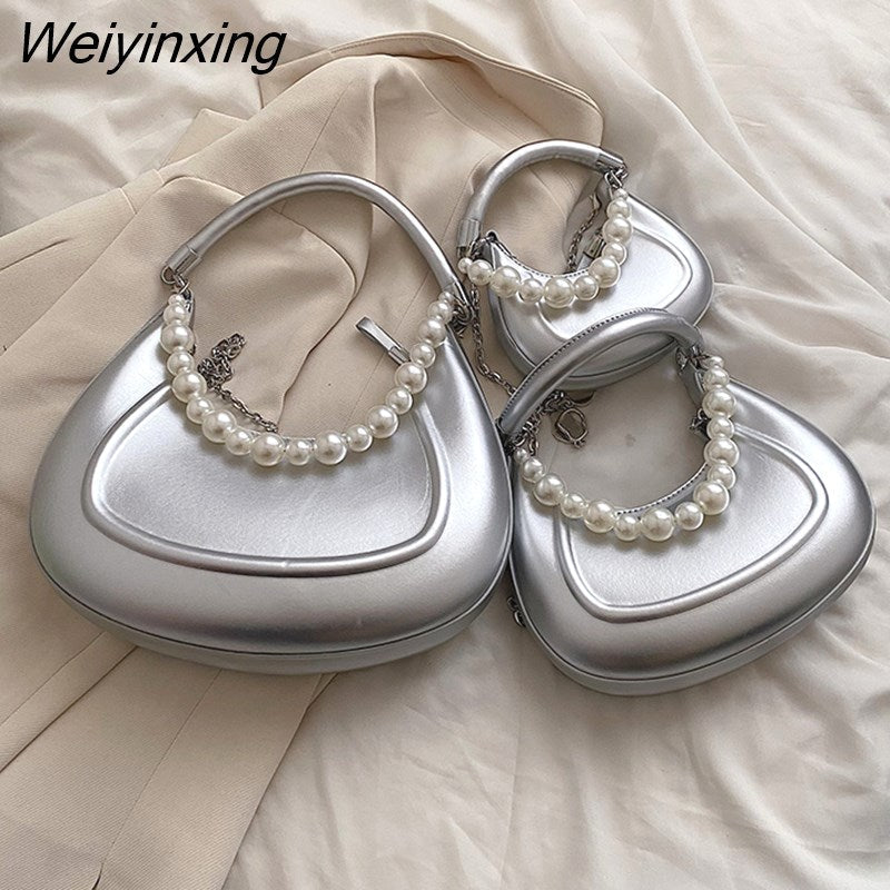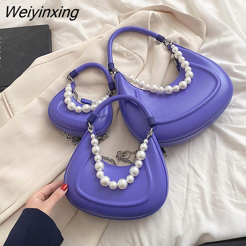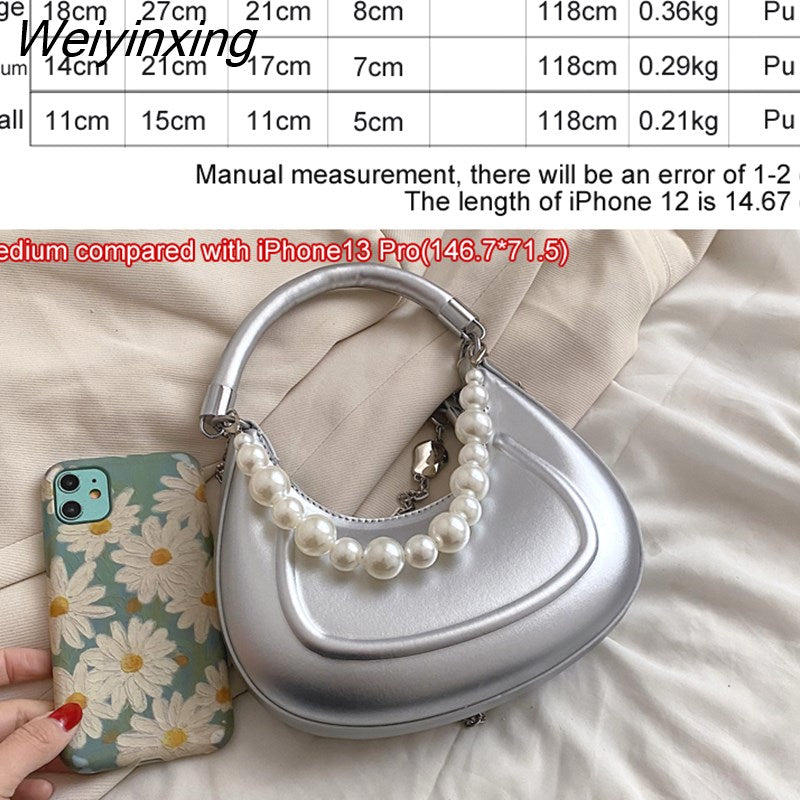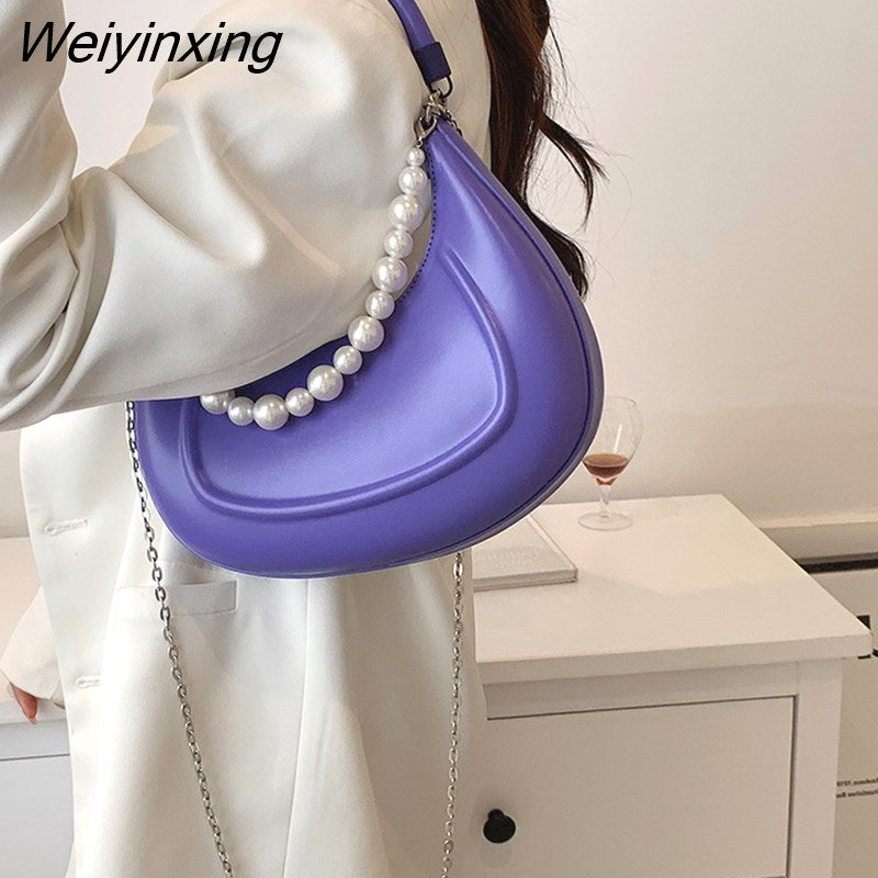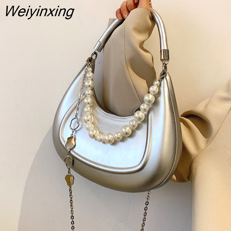 Weiyinxing Woman Bag Pu Hobo Bagute Bags For Woman High Quality Brand Clutches Purse Pearl Half Moon Crossbody Bag Femal Handbag