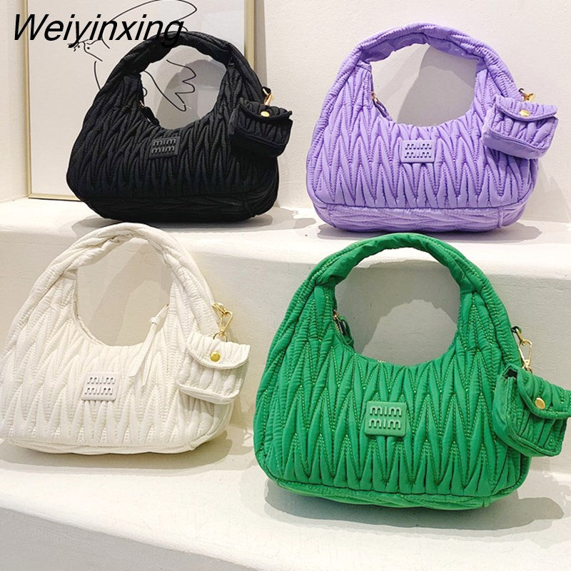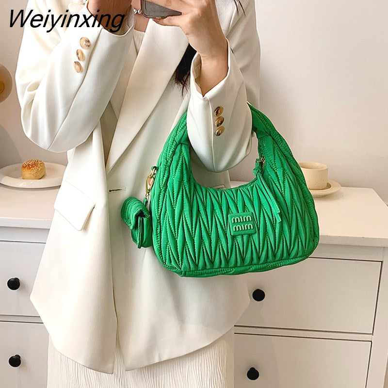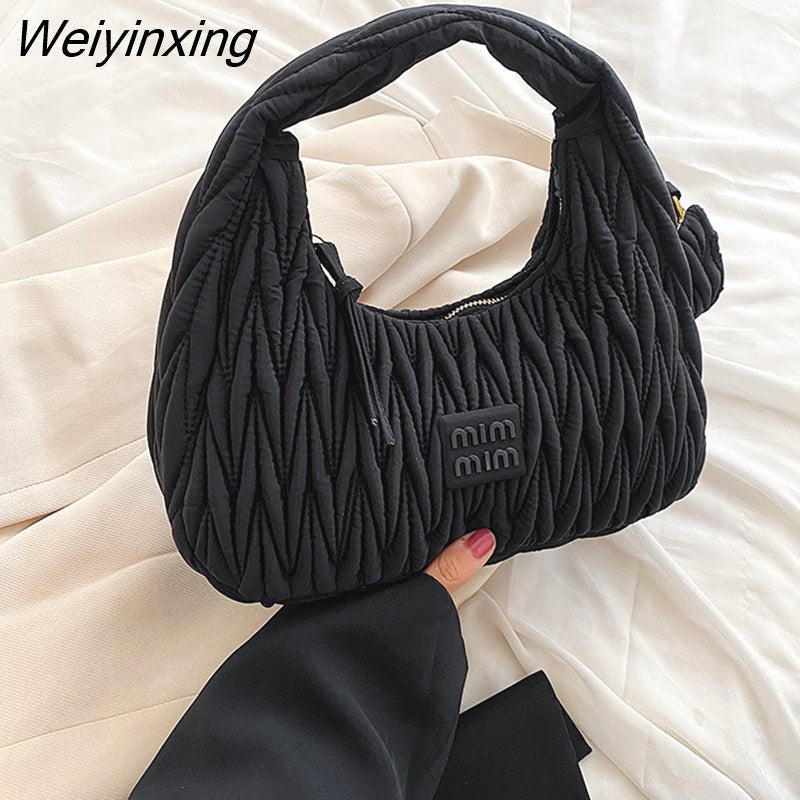 Weiyinxing Woman's Satchel Bag Pleated Designer Women Bags 2023 Trend Embroidered Thread Crescent Bags For Women Luxury Handbags