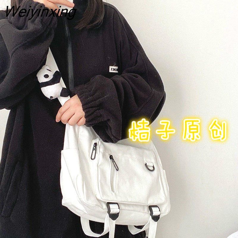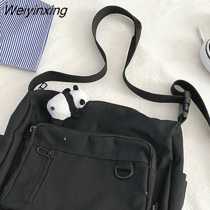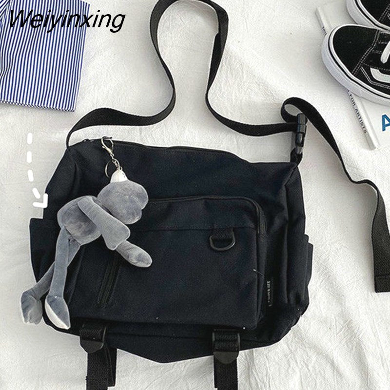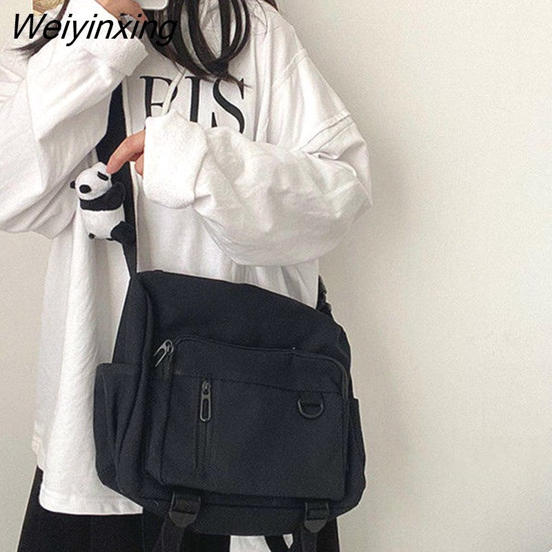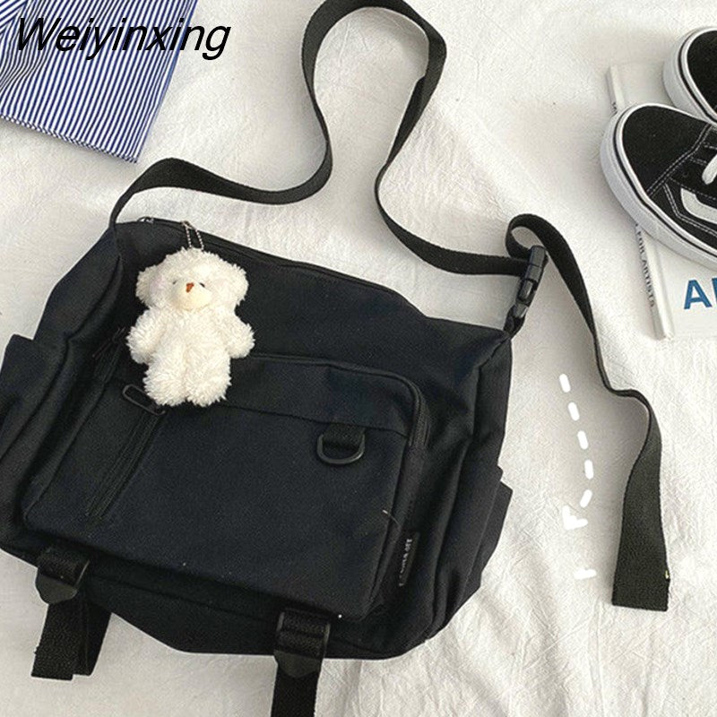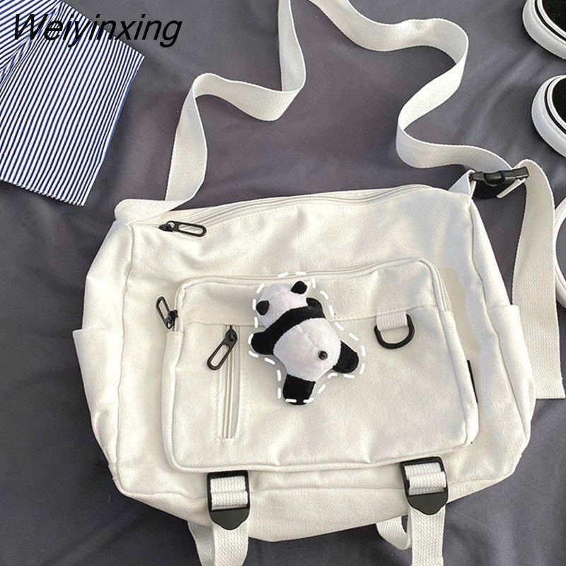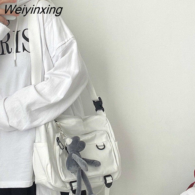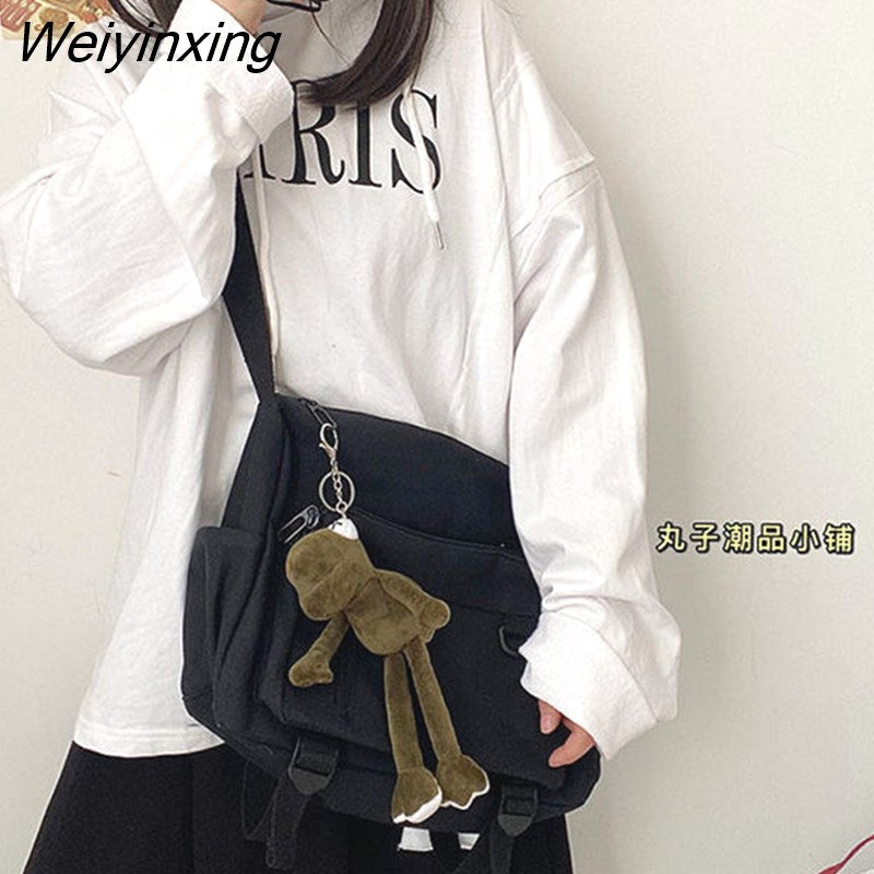 Weiyinxing Women Canvas Bag Female Buckle Zipper Messenger Bag Women High Capacity Student Solid Color Multiple Bag Travel Bag Cute Pendant