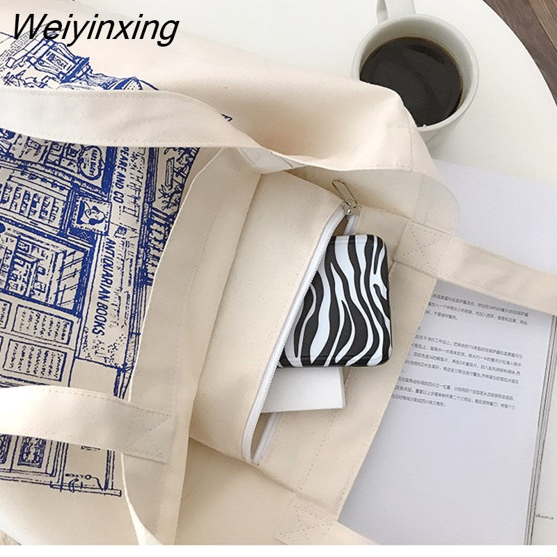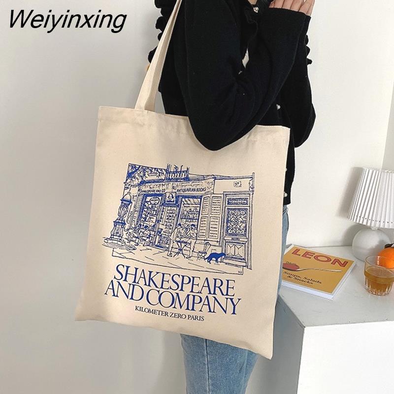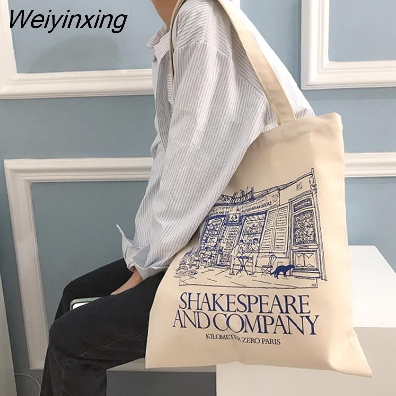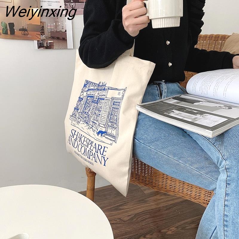 Weiyinxing Women Canvas Shopping Bag Notting Hill Books Bag Female Cotton Cloth Shoulder Bag Eco Handbag Tote Reusable Grocery Shopper Bags