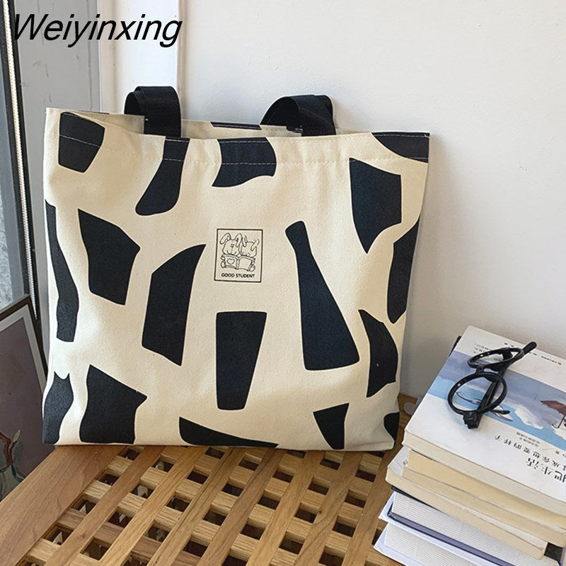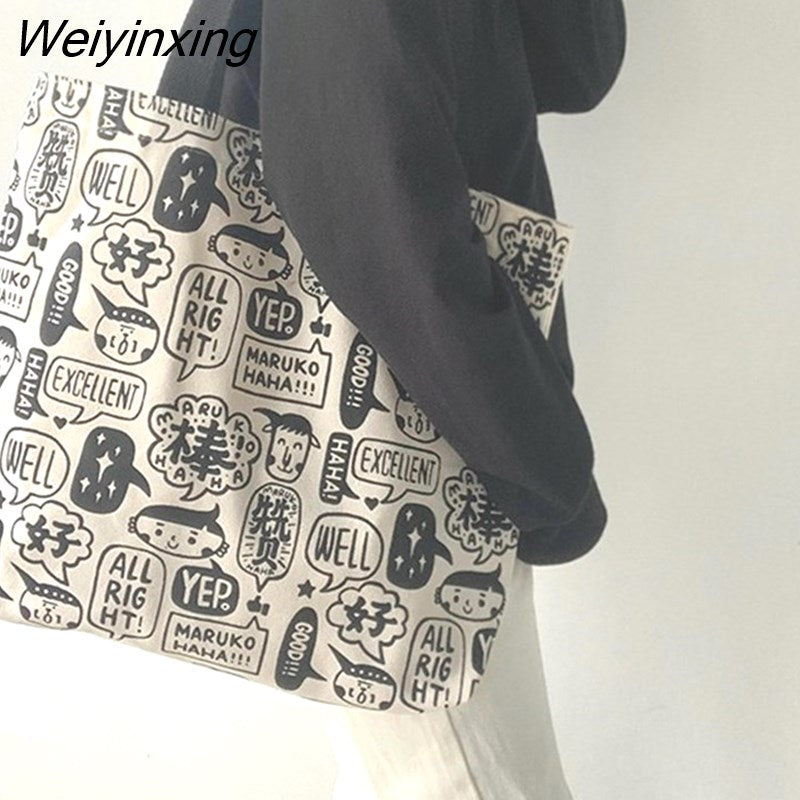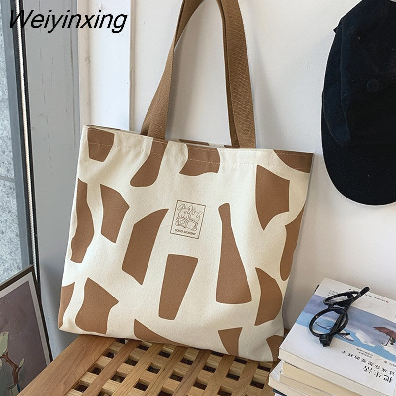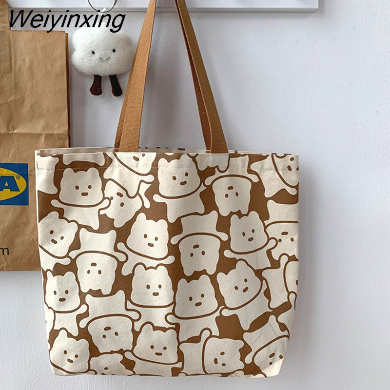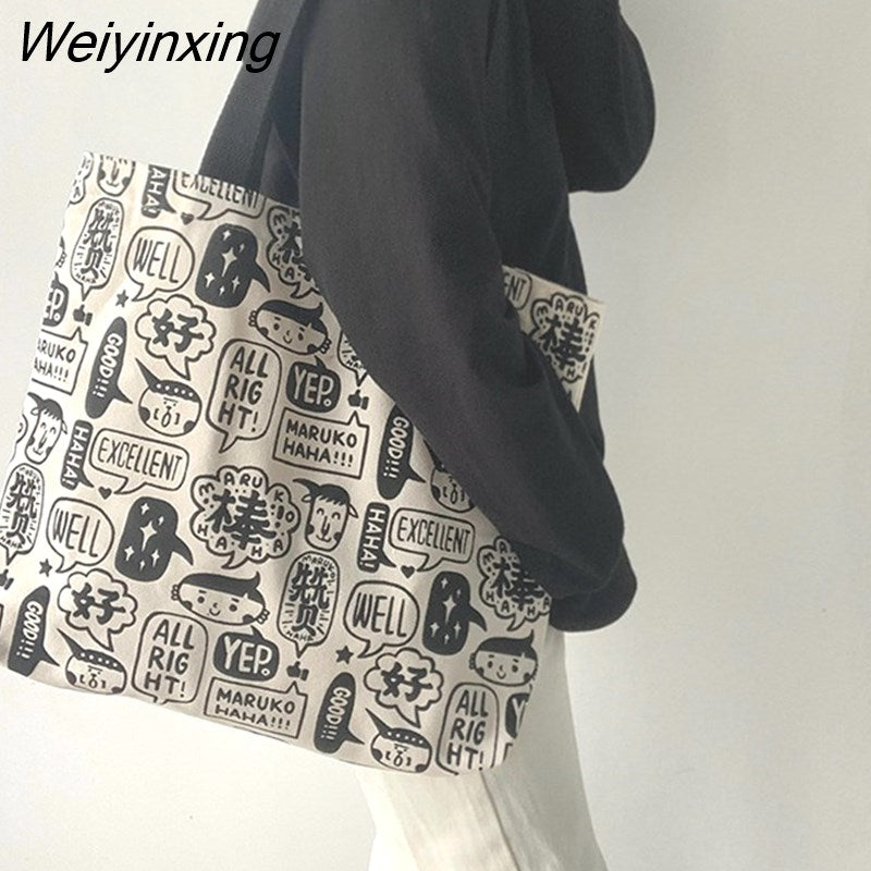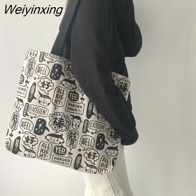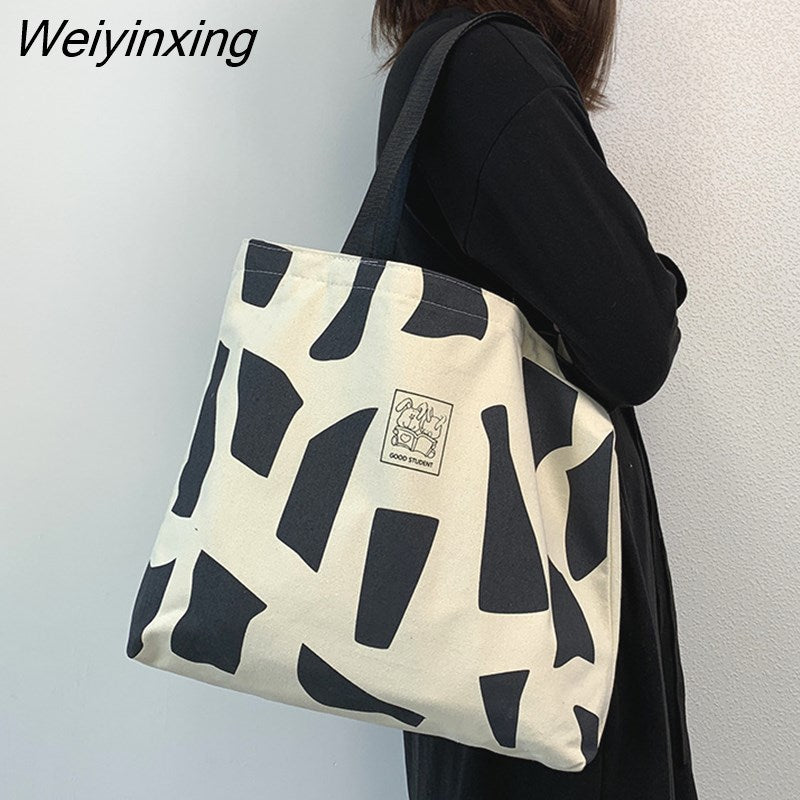 Weiyinxing Women Canvas Shopping Bags Eco Reusable Foldable Shoulder Bags Large Capacity Handbags Casual Cute Bag for Women Dropshipping
