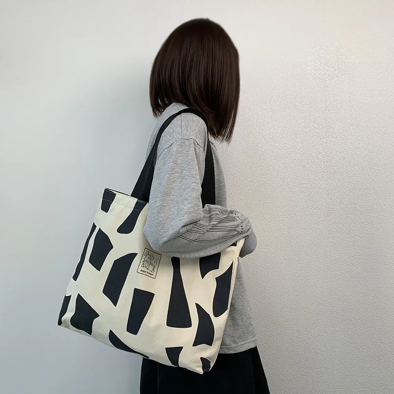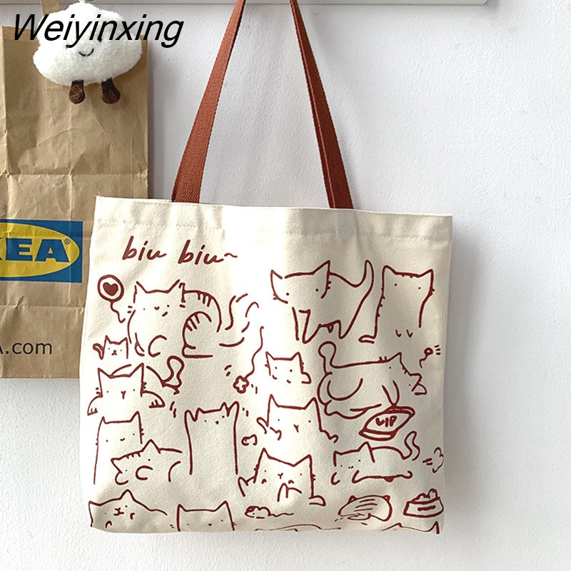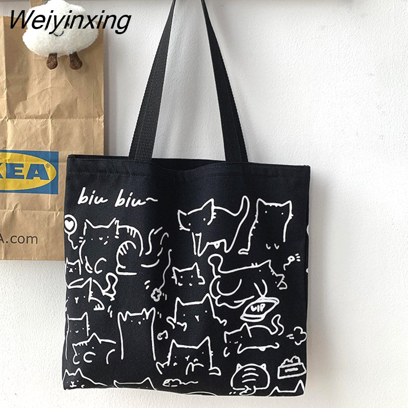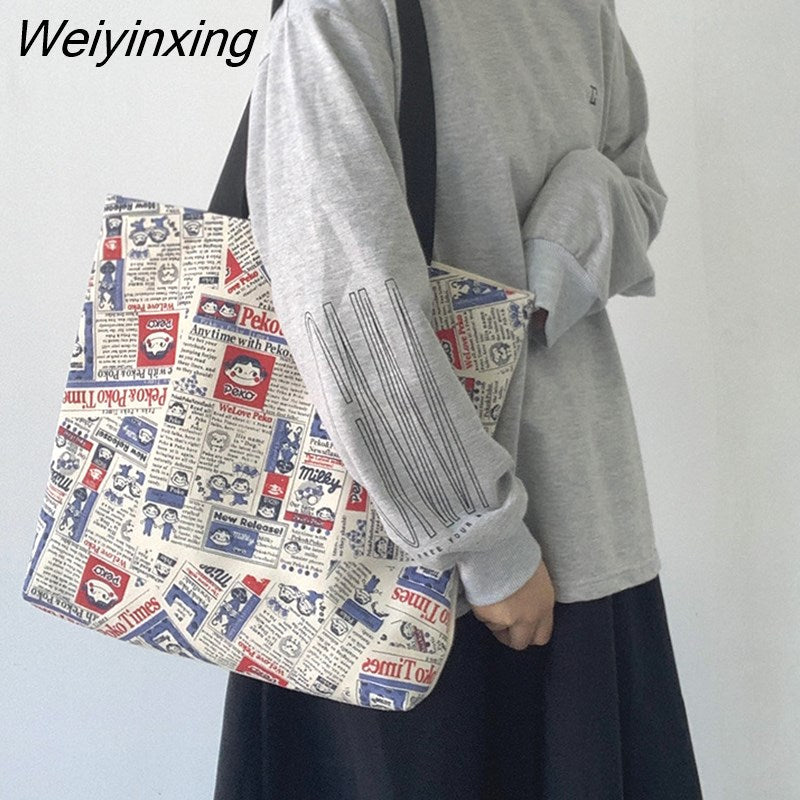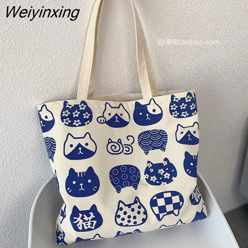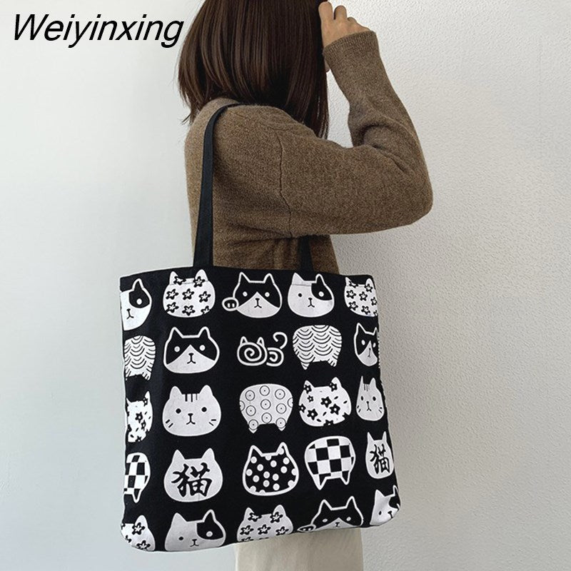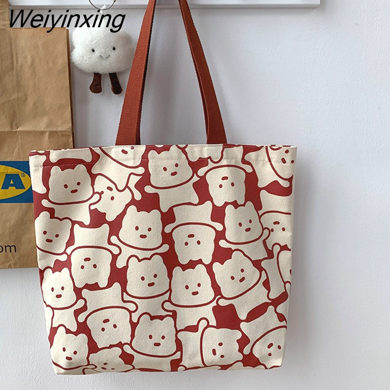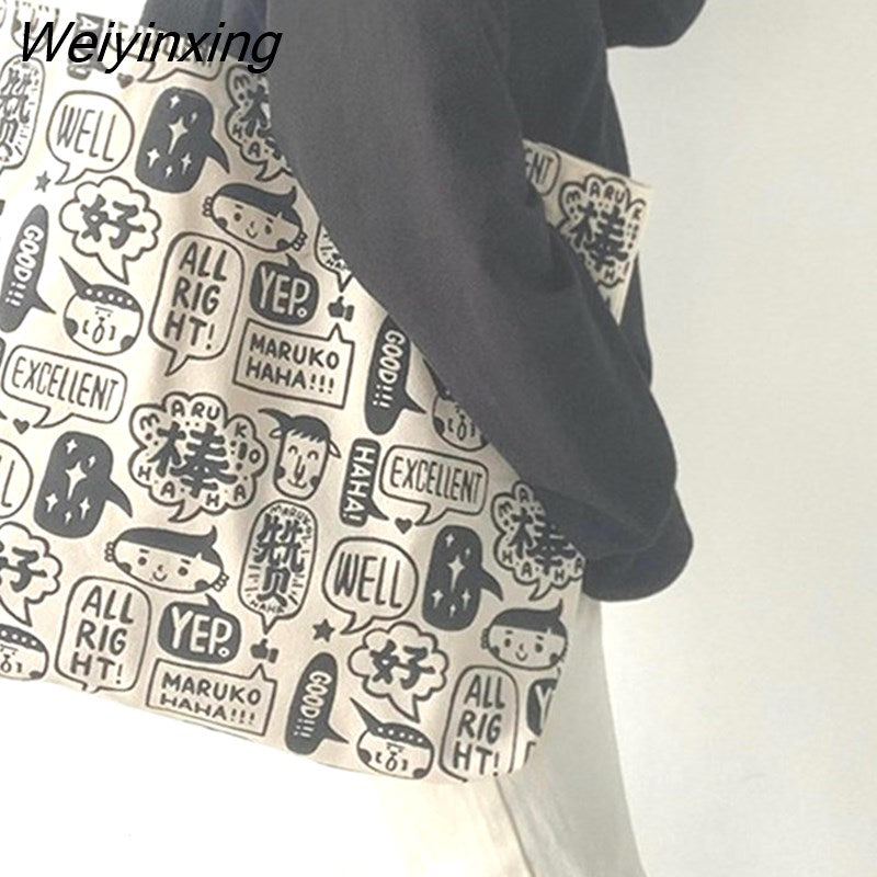 Weiyinxing Women Canvas Shopping Bags Eco Reusable Foldable Shoulder Bags Large Capacity Handbags Casual Cute Bag for Women Dropshipping
