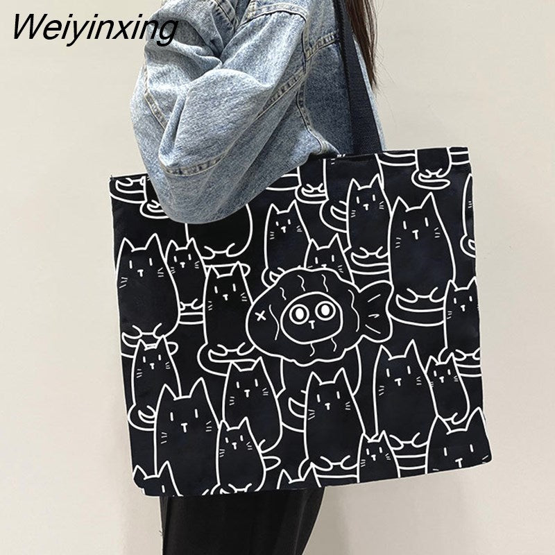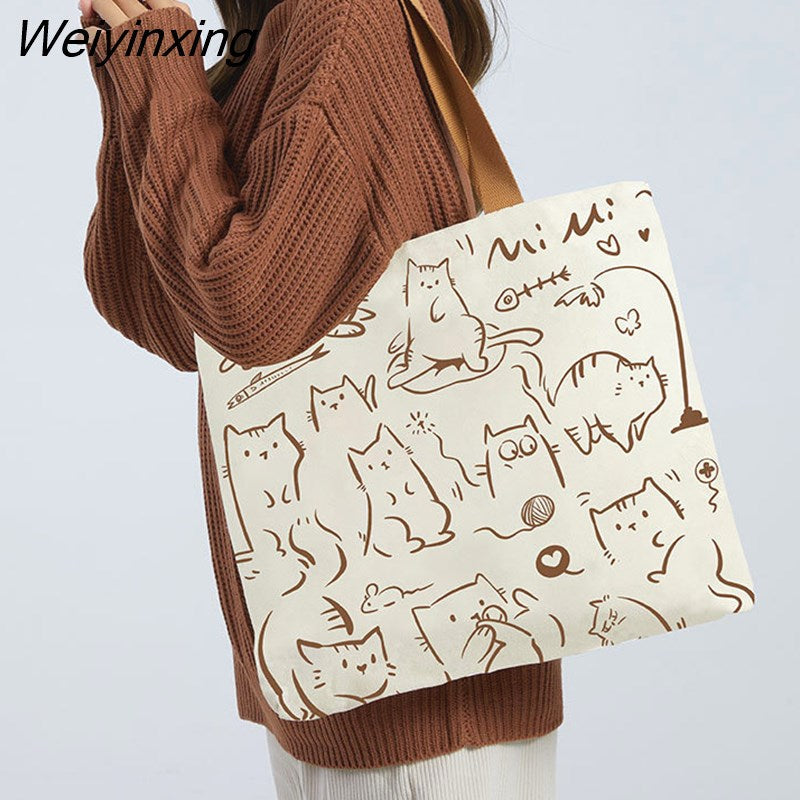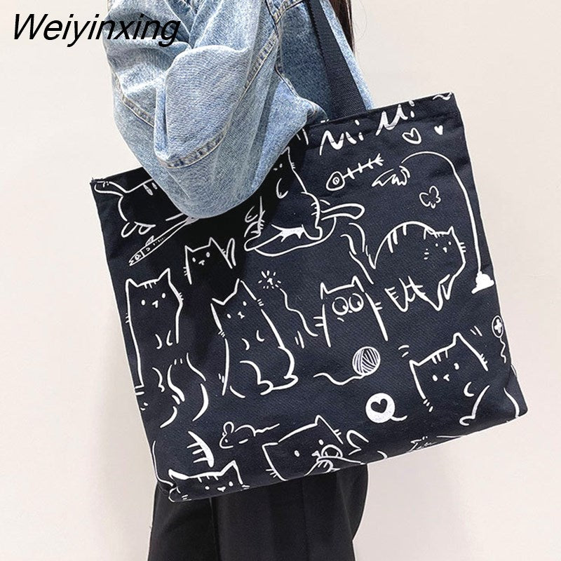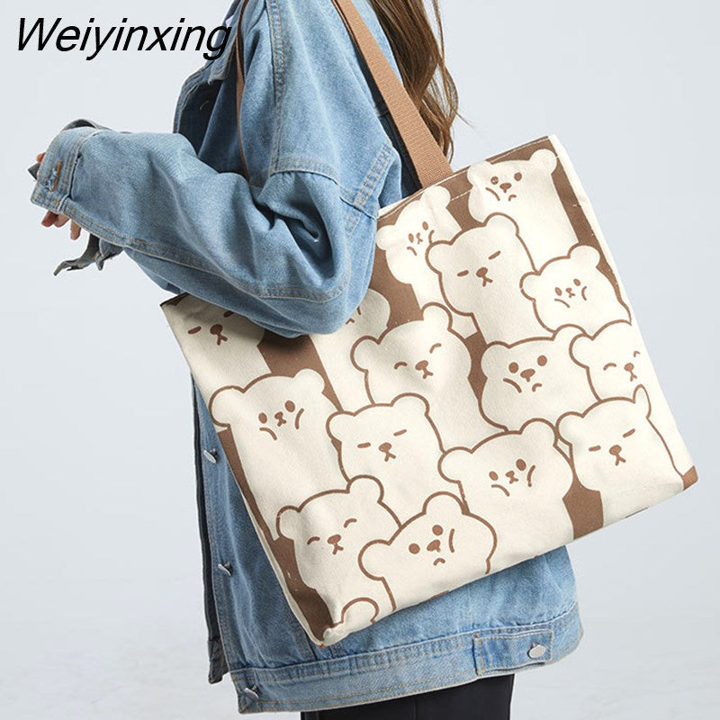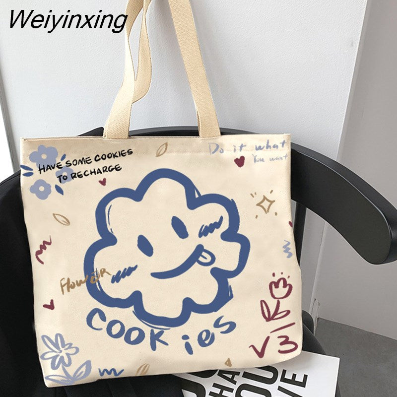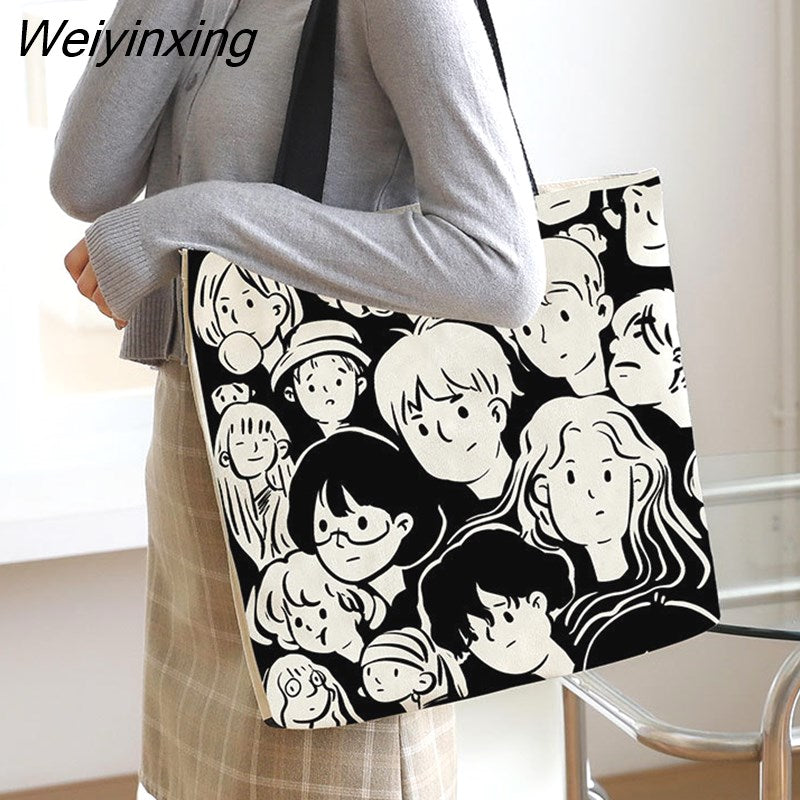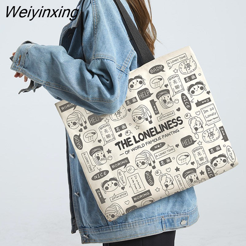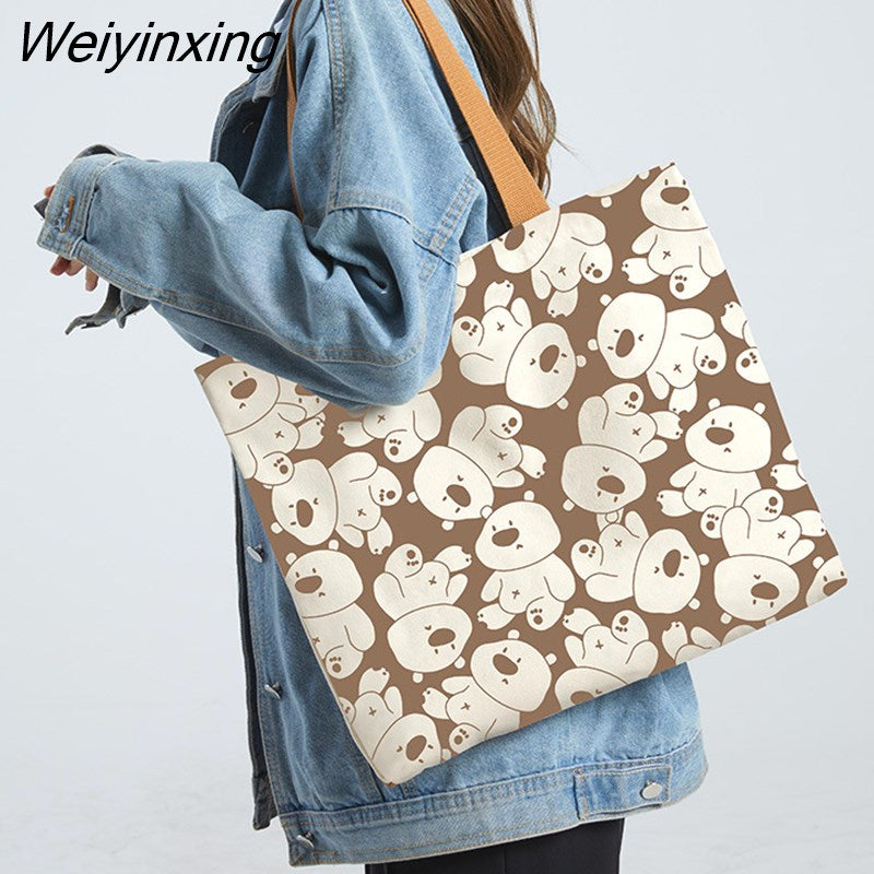 Weiyinxing Women Canvas Shopping Bags Eco Reusable Foldable Shoulder Bags Large Capacity Handbags for Groceries 2023 Dropshipping