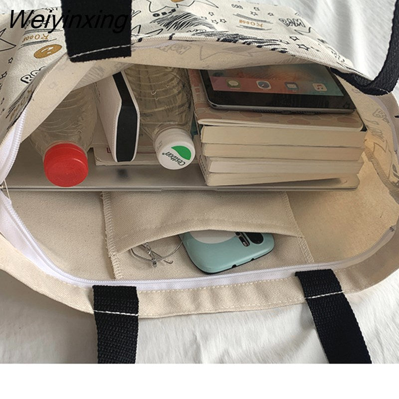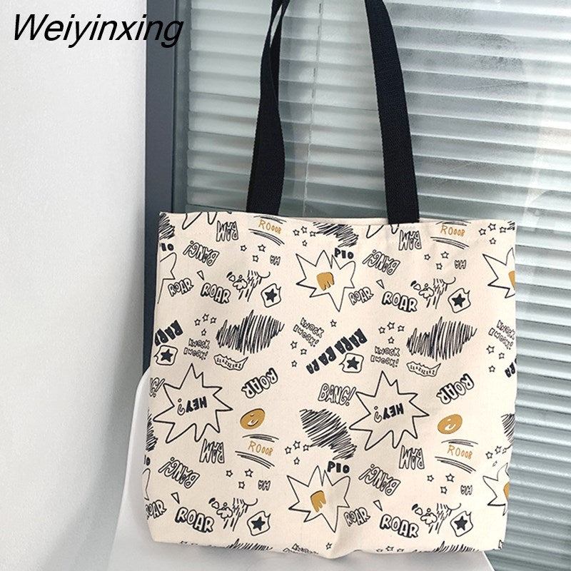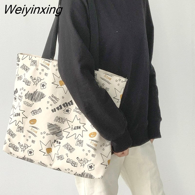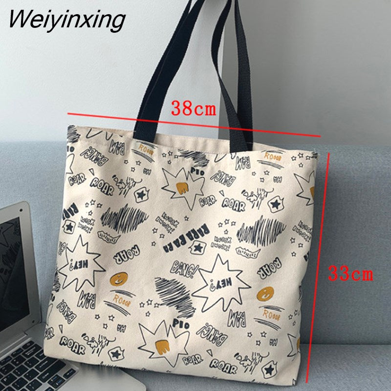 Weiyinxing Women Canvas Shopping Bags Fashion Female Reusable Shoulder Bags Large Capacity Handbags for Women Shopping Bags Dropshipping