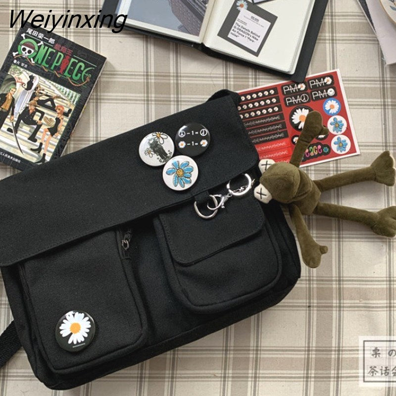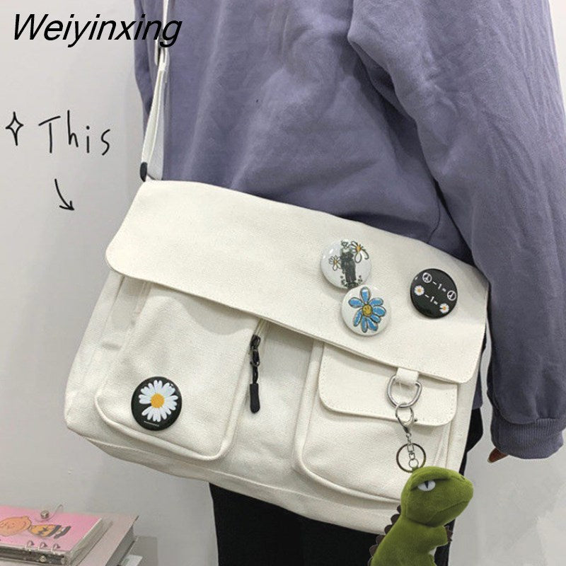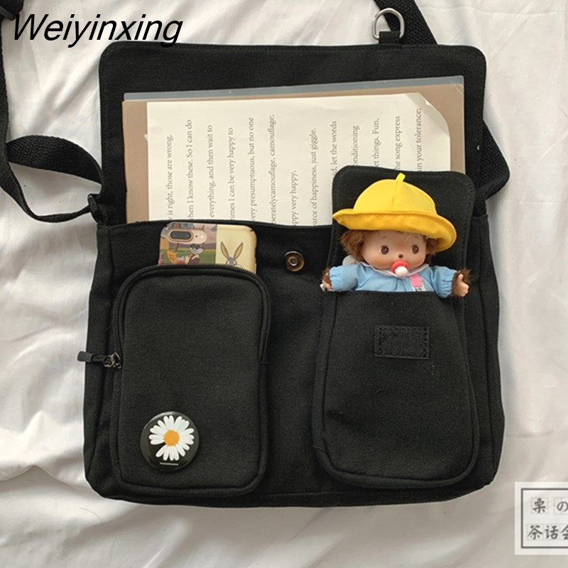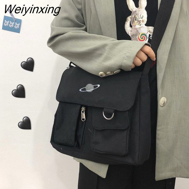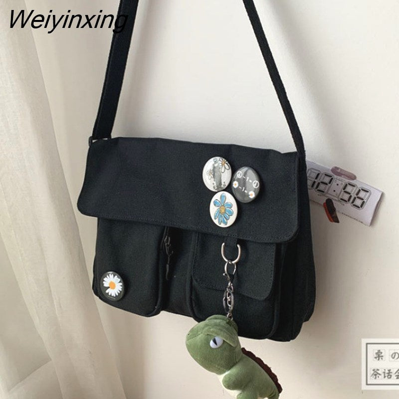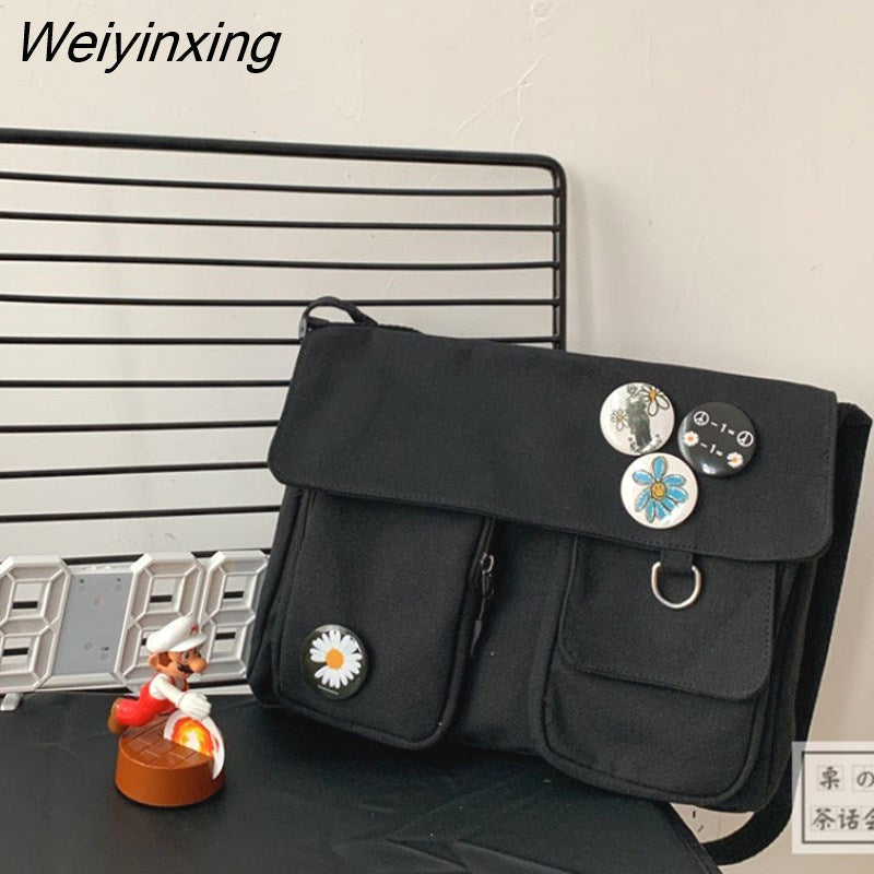 Weiyinxing Women Canvas Shoulder Bags For Youth Casual Ladies Large Capacity Crossbody Bags Solid Handbags Messenger Bags for Women