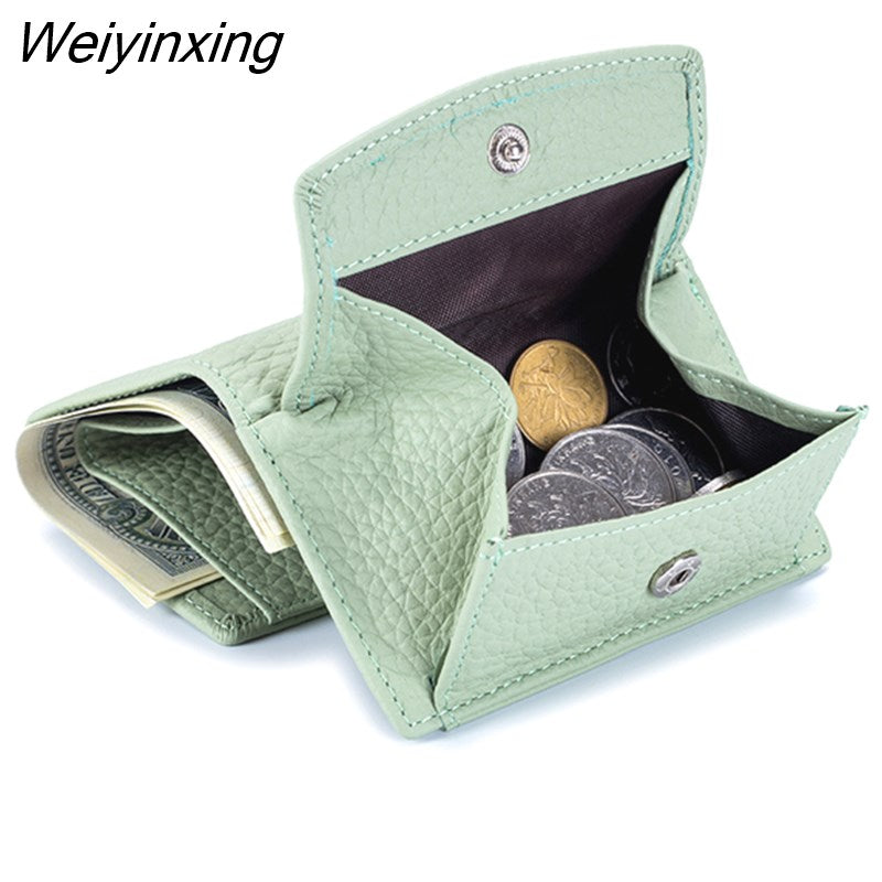 Weiyinxing Women Genuine Leather Purses Female Small Cowhide Wallets Lady Coin Bag Card Holder Large Capacity Money Bag Portable Clutch
