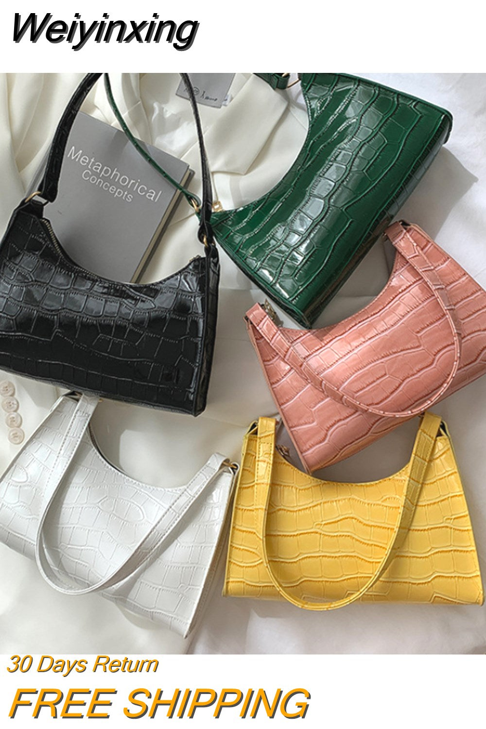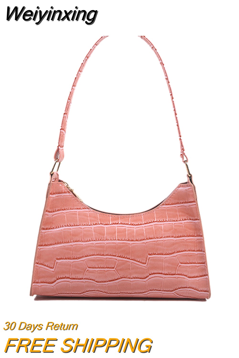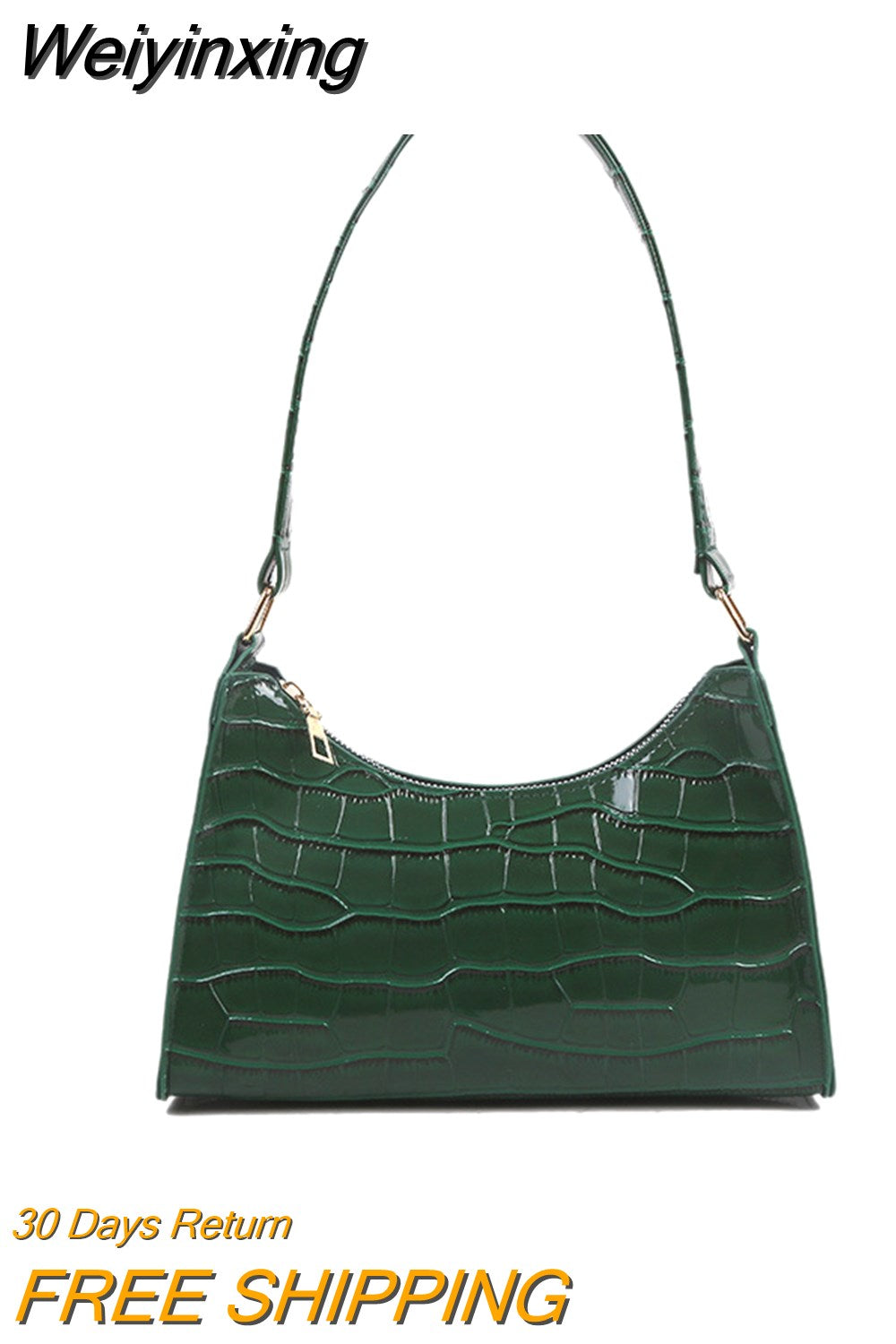 Weiyinxing Women HandBag Fashion PU Leather Western Style Alligator Pattern Lady' Armpit Bag Popular Trendy Retro Shoulder Bag Solid Color