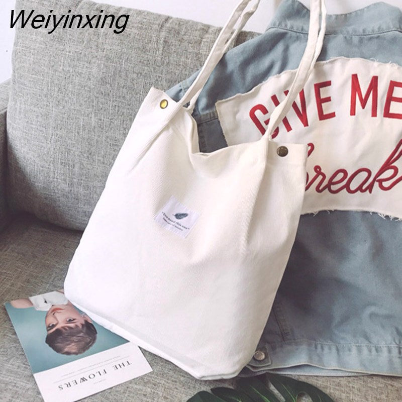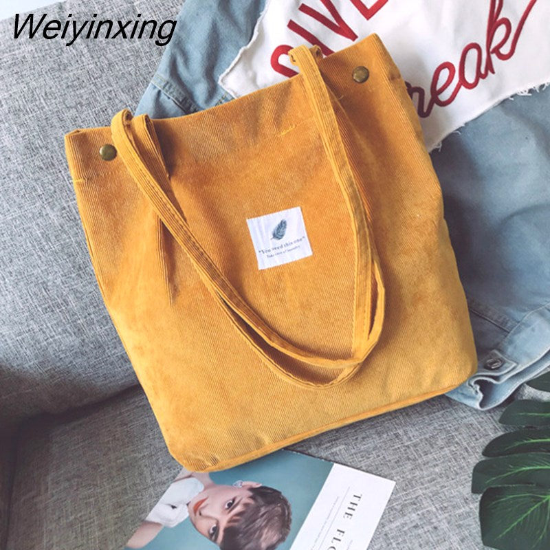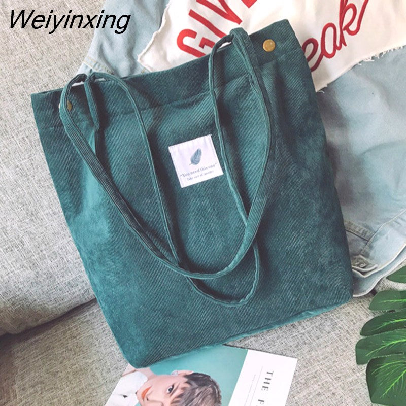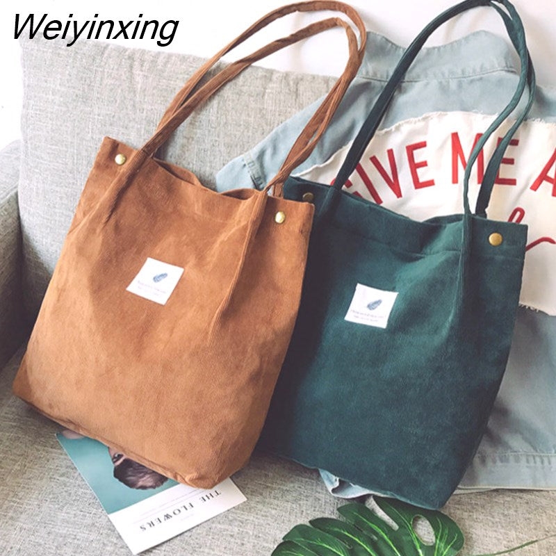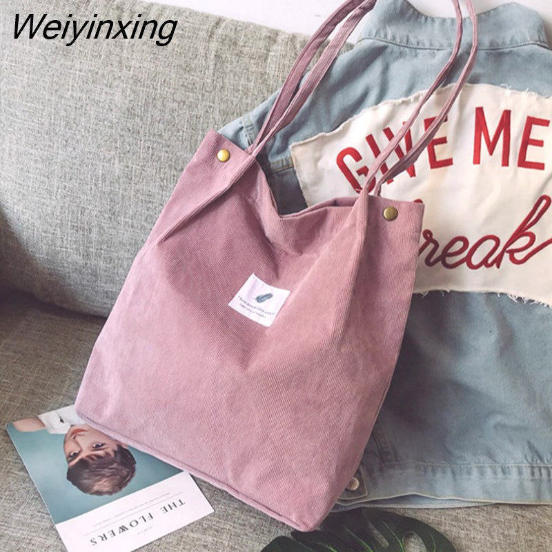 Weiyinxing Women Handbags Portable Corduroy Shoulder Bags Reusable Large Capacity Shopping Bags Casual Bolsas Feminina Dropshipping