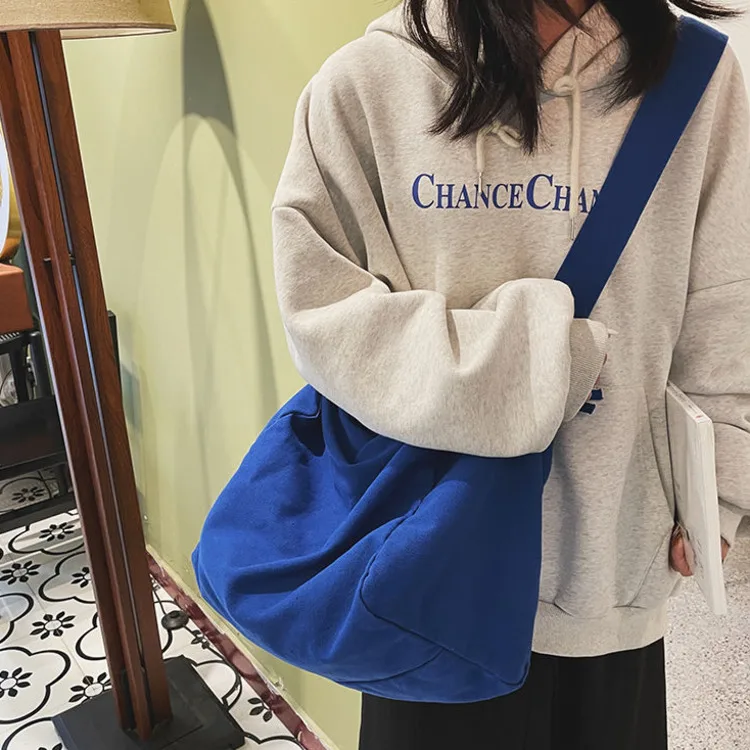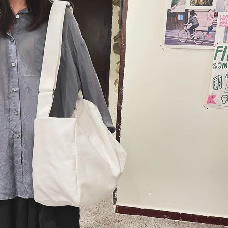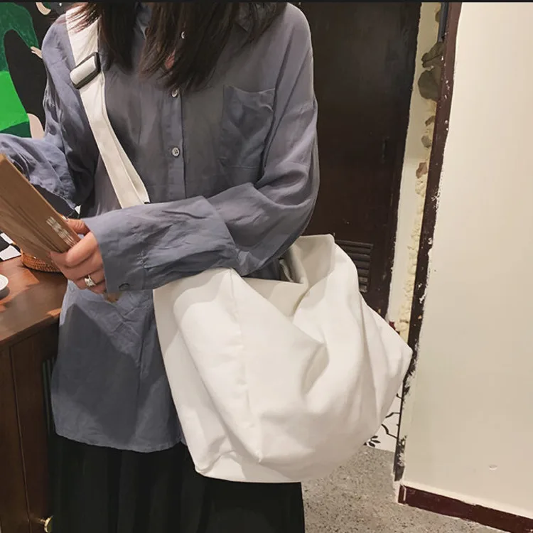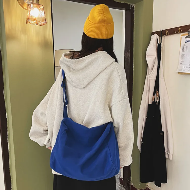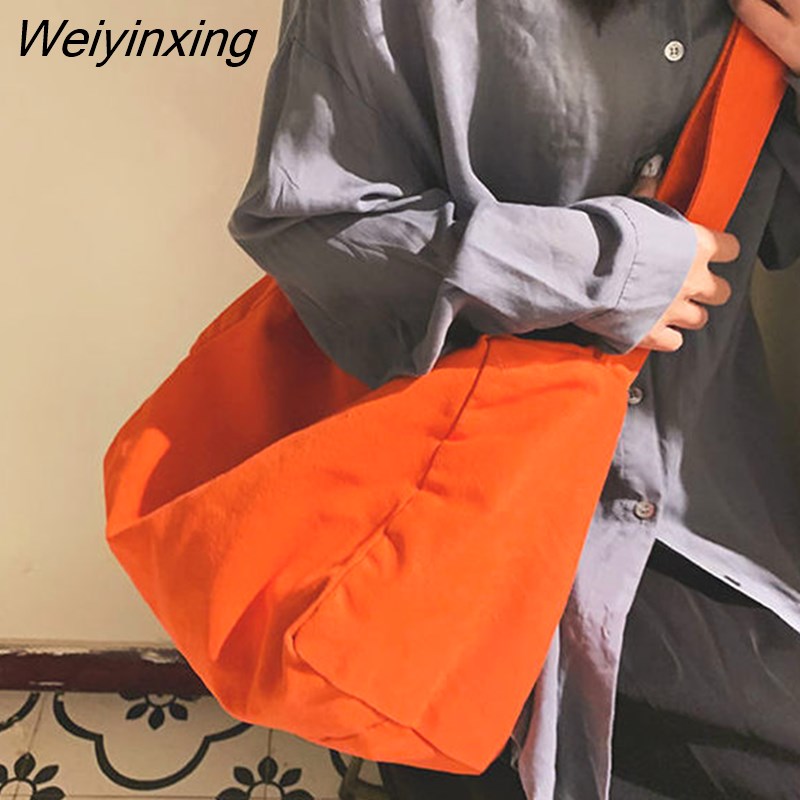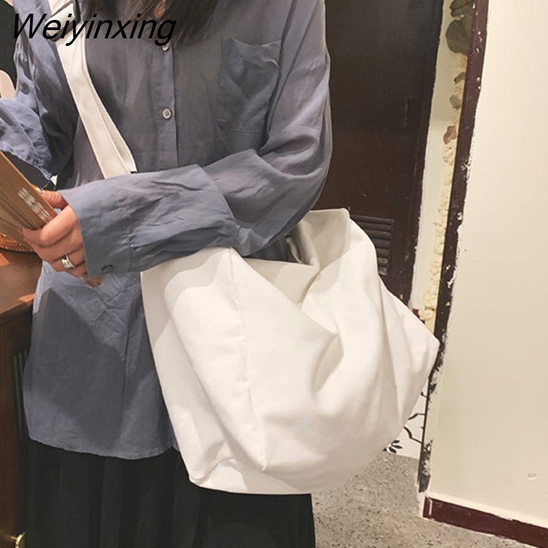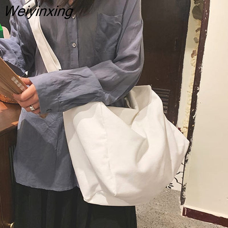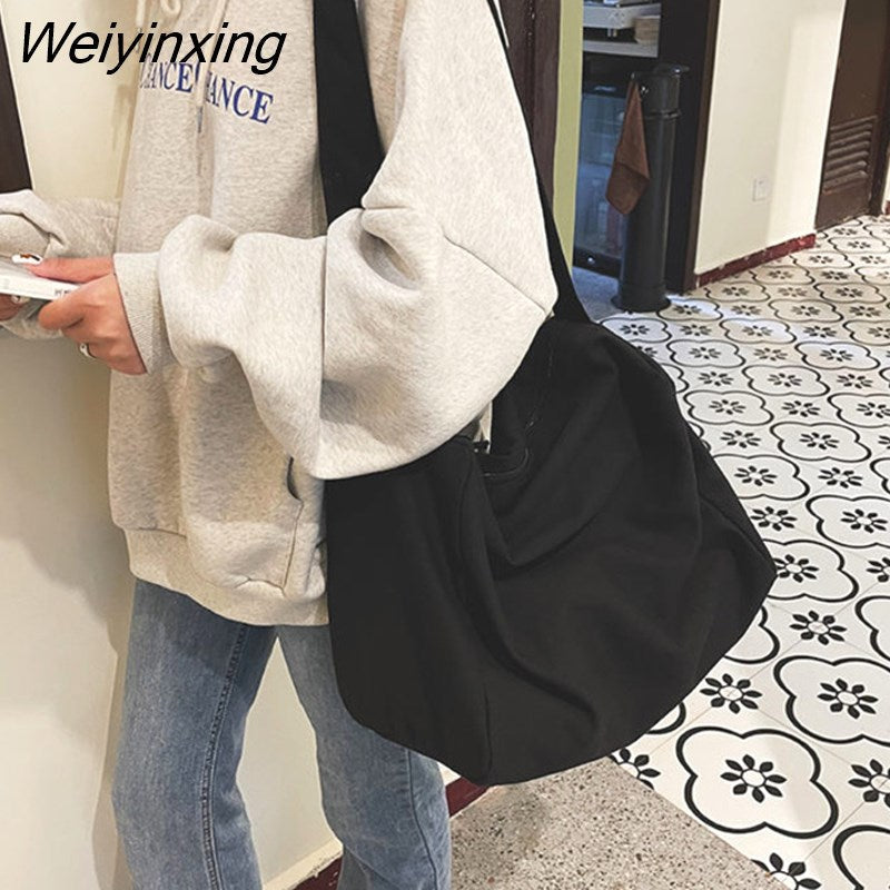 Weiyinxing Women Large Capacity Canvas Bag Female Student Bag Solid Color Shoulder Women Messenger Bag Wide Shoulder Straps Square Bag