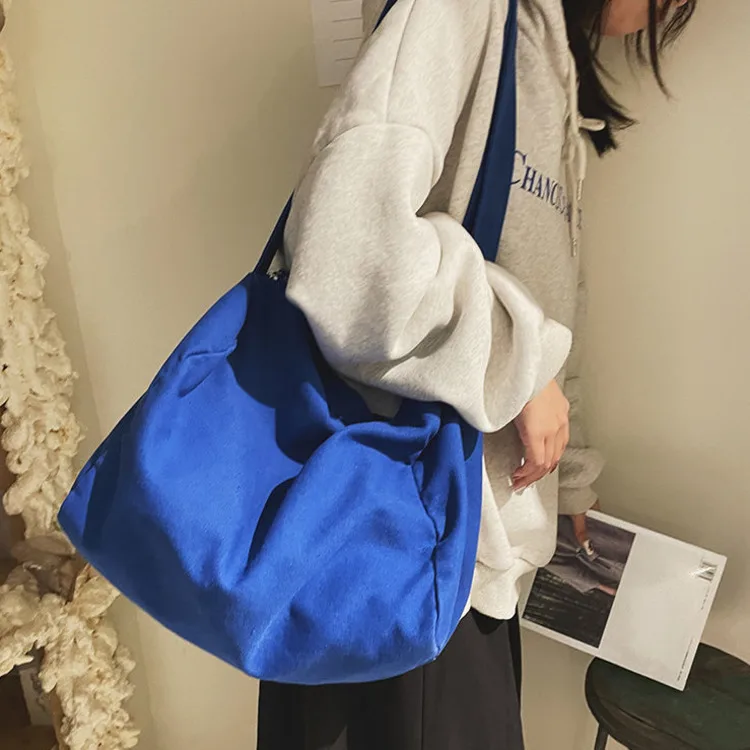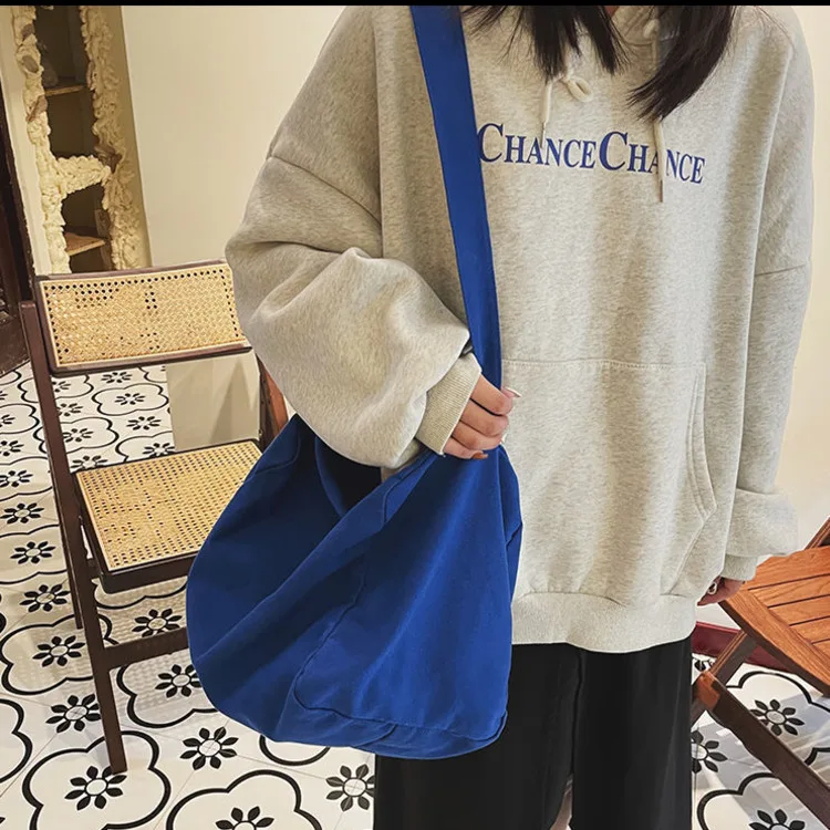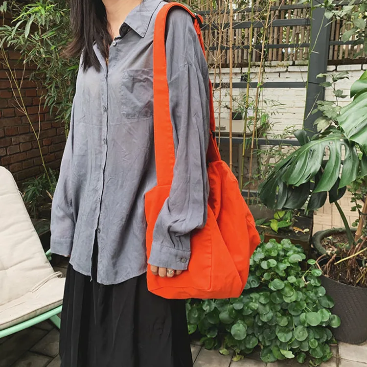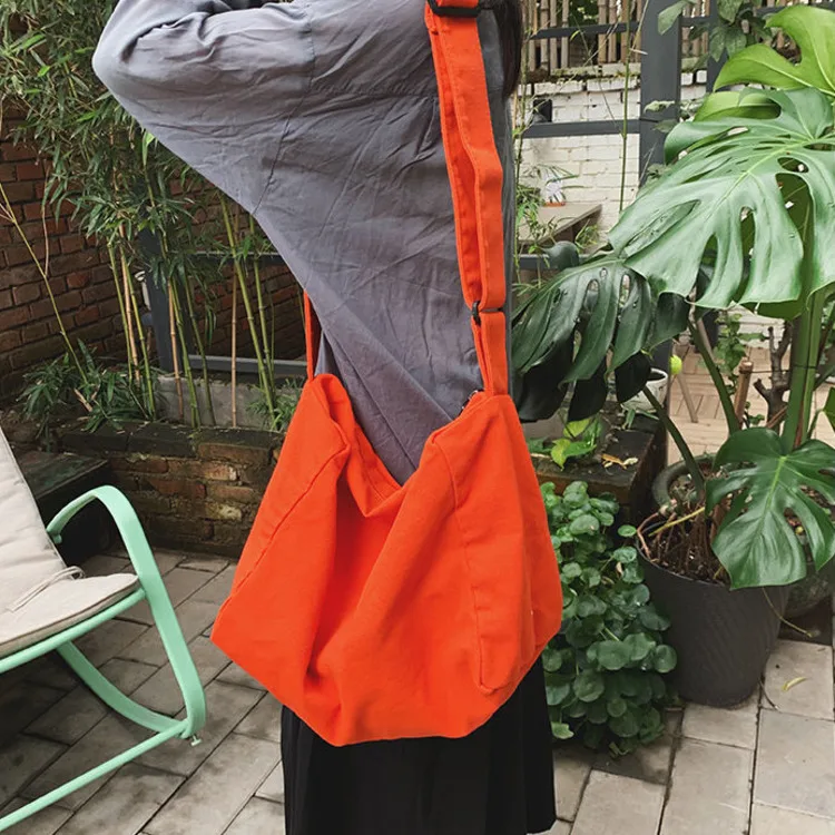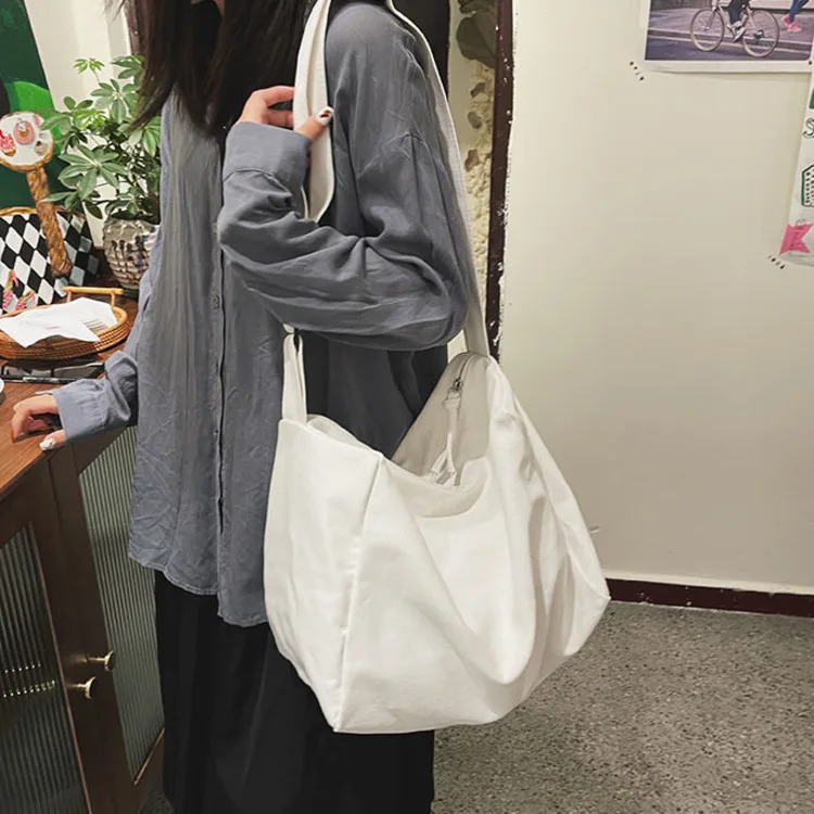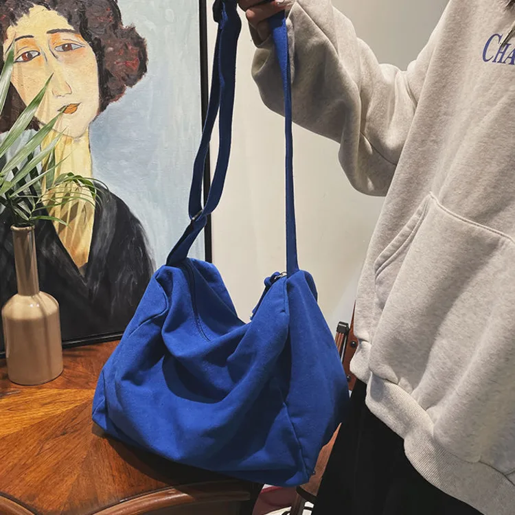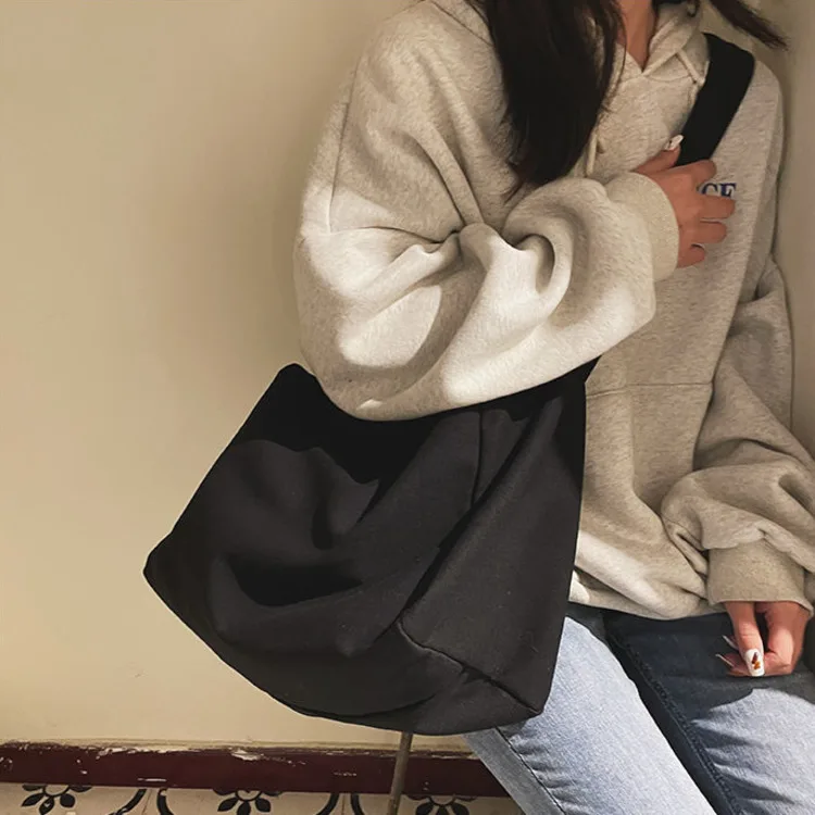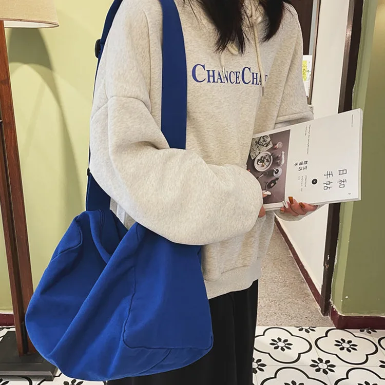 Weiyinxing Women Large Capacity Canvas Bag Female Student Bag Solid Color Shoulder Women Messenger Bag Wide Shoulder Straps Square Bag