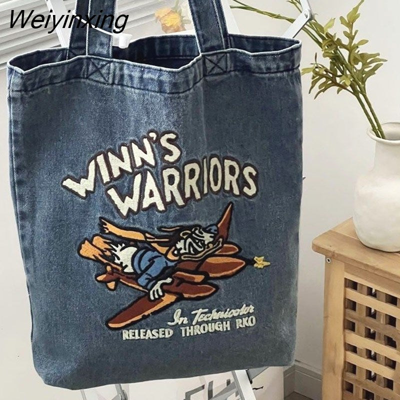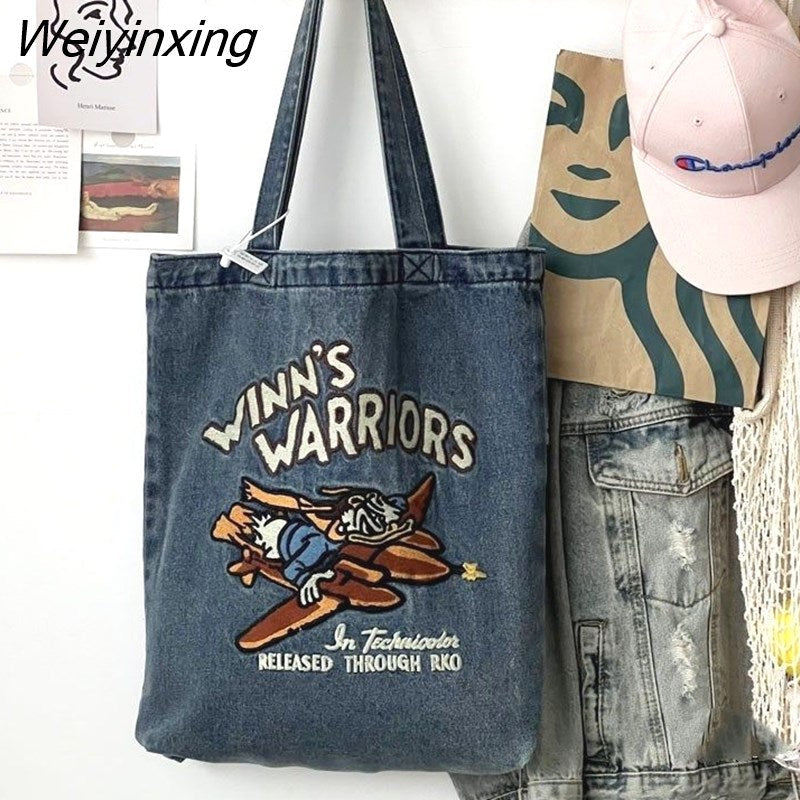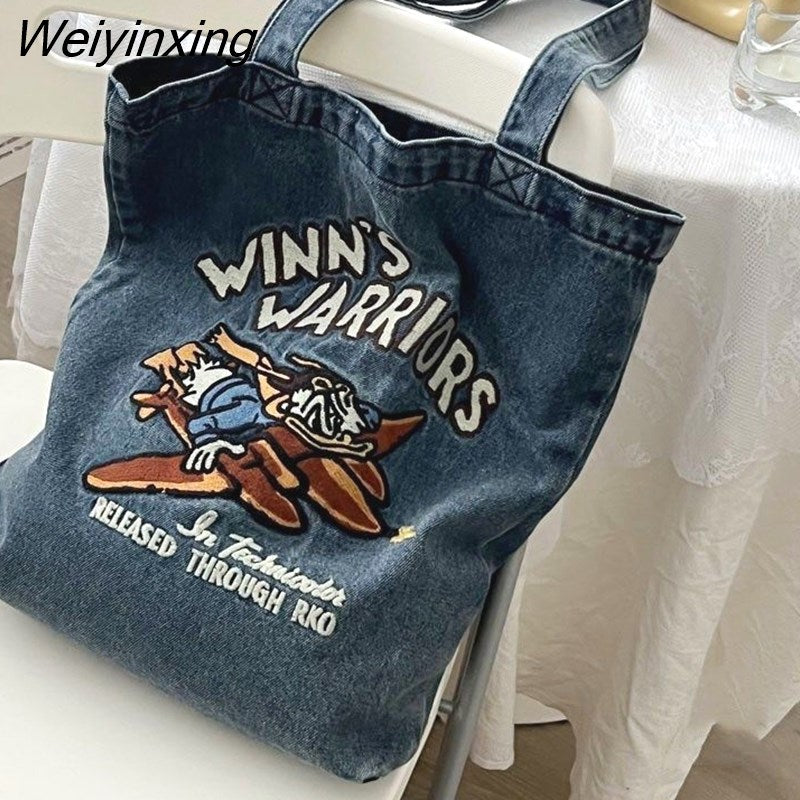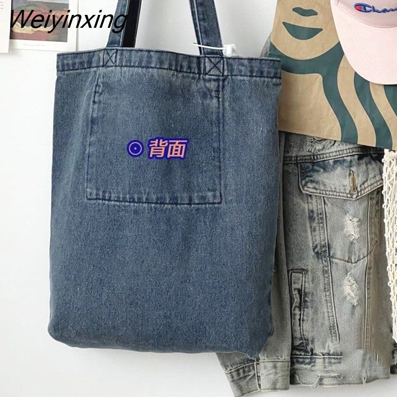 Weiyinxing Women Leisure Denim Bag Handbag Bag Women's High Capacity Shopping Shoulder Canvas Bag Student Bag Female Shopper Bag Tote Bag