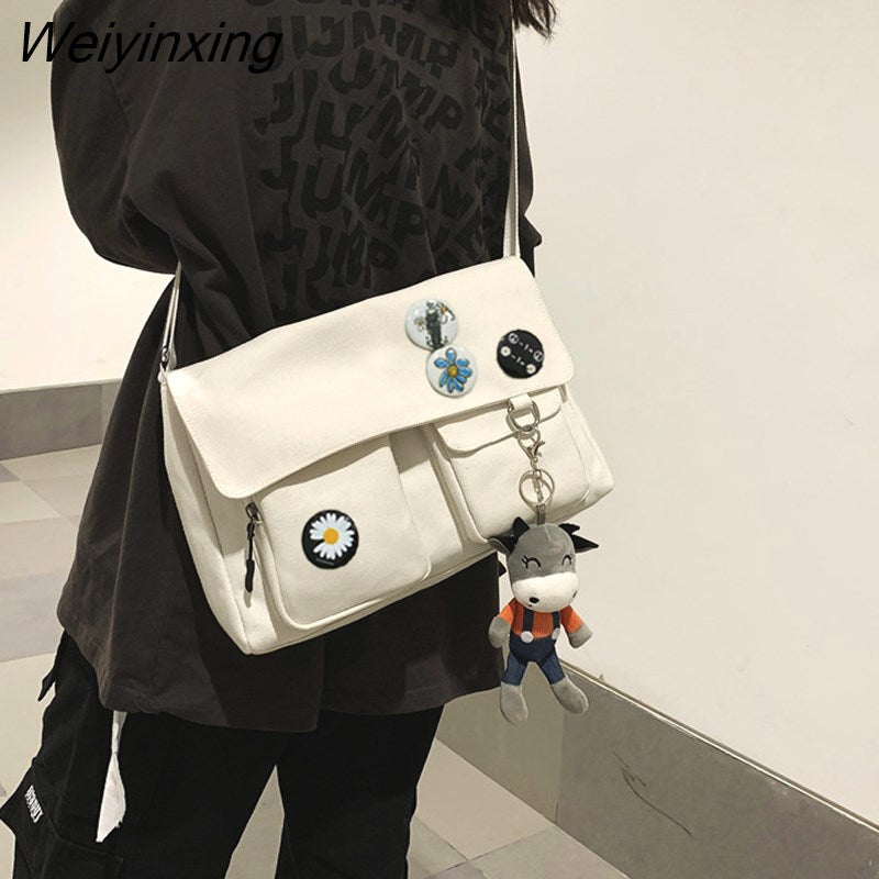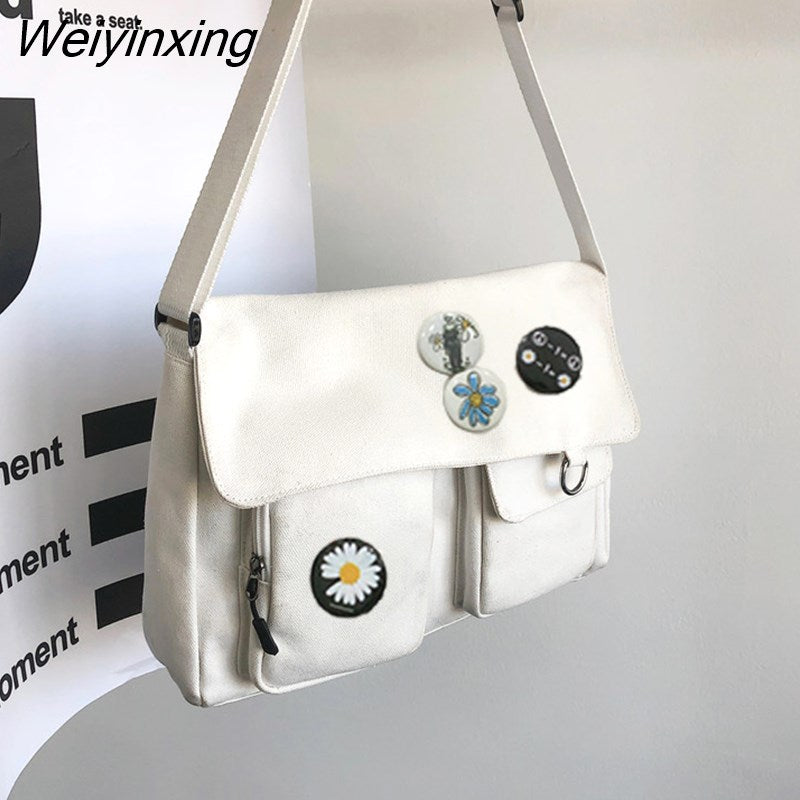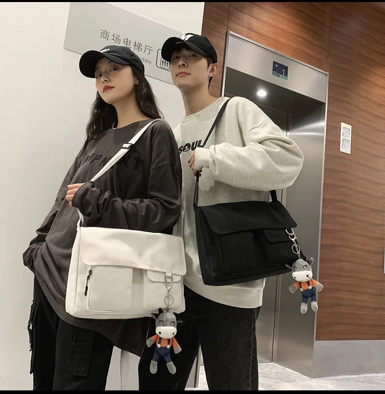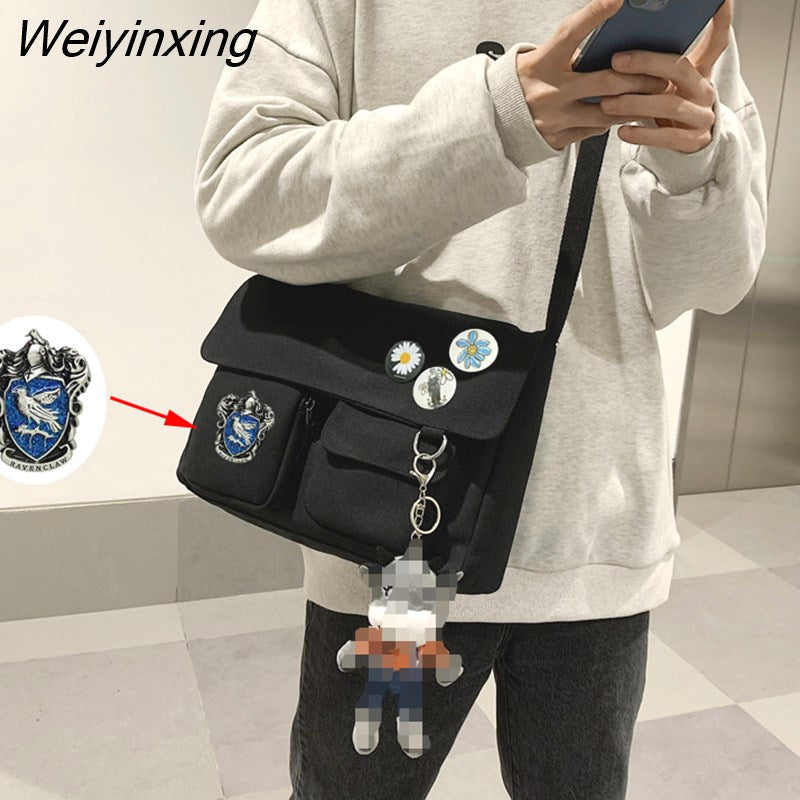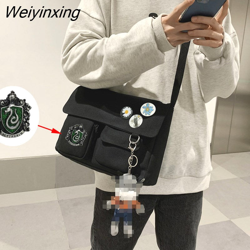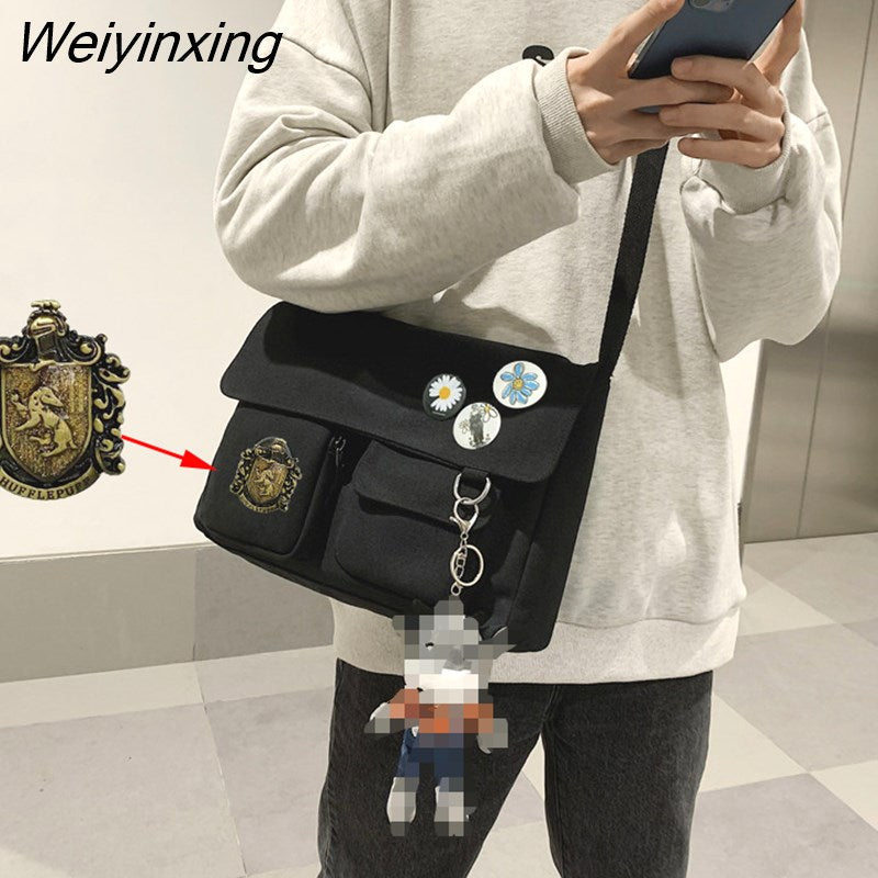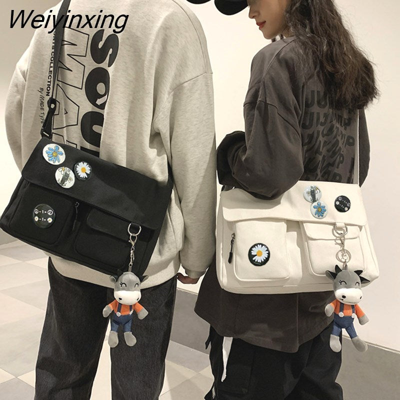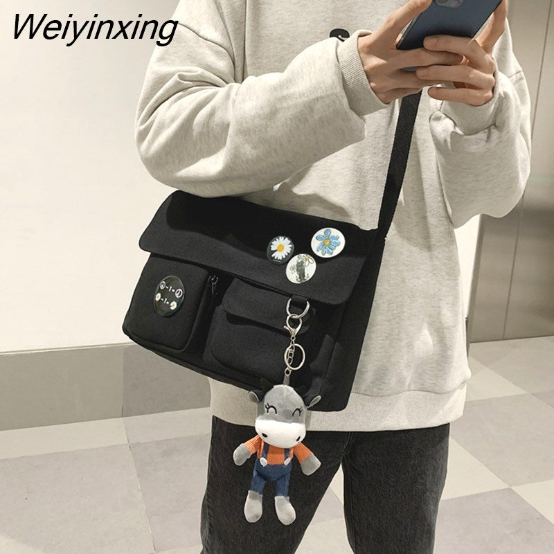 Weiyinxing Women Men Messenger Bag Female Canvas Crossbody Bag Large Capacity Korean Cute Simple Student Single Shoulder Outer Bag
