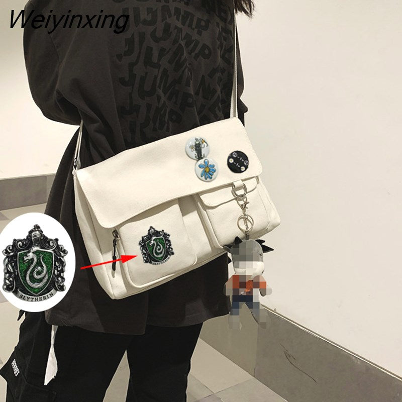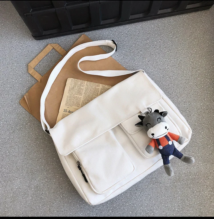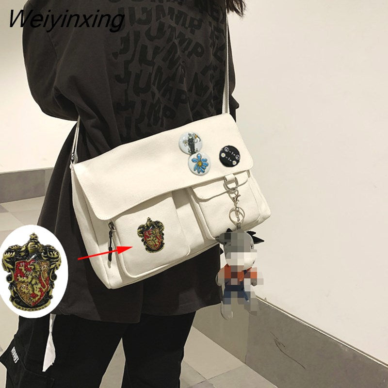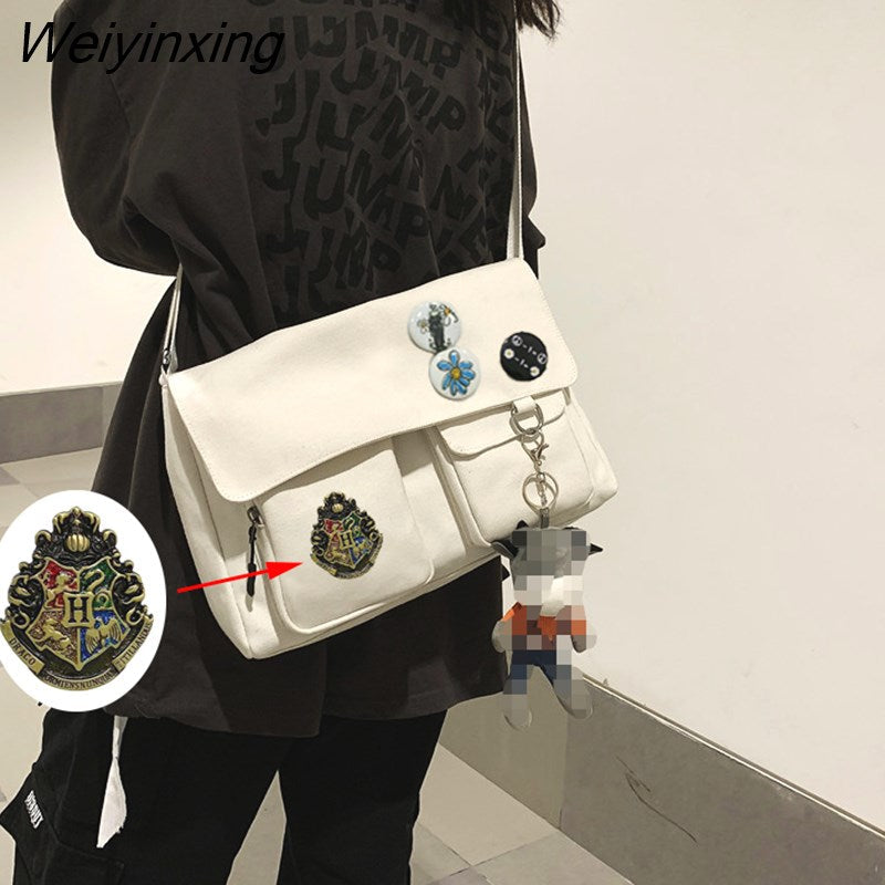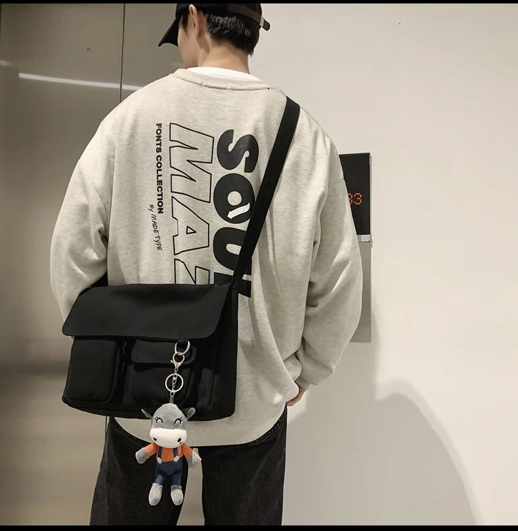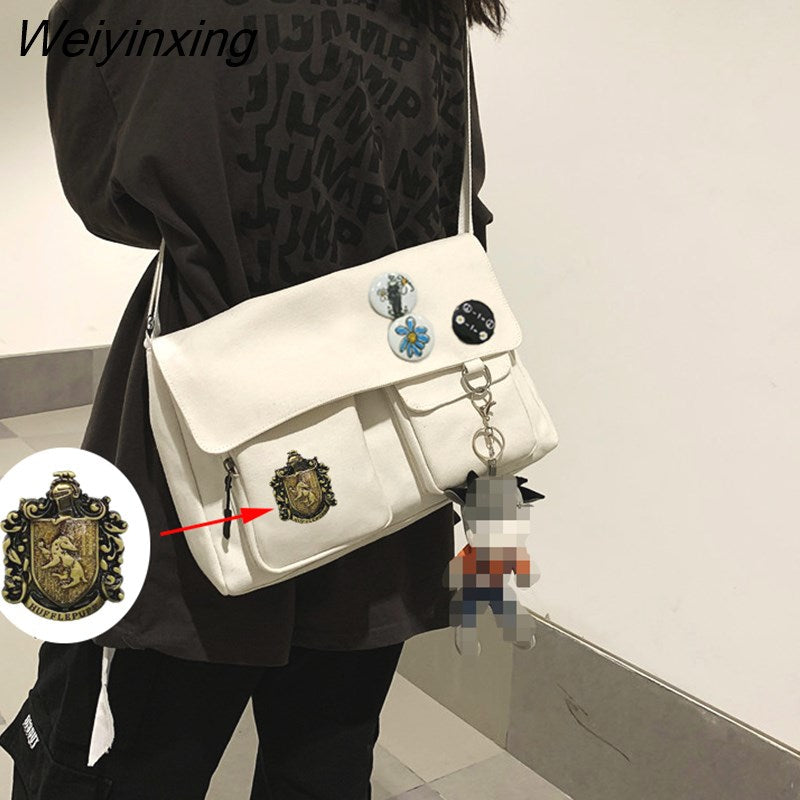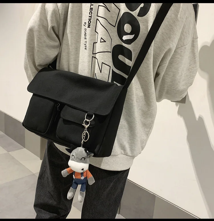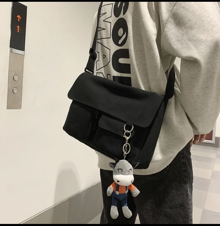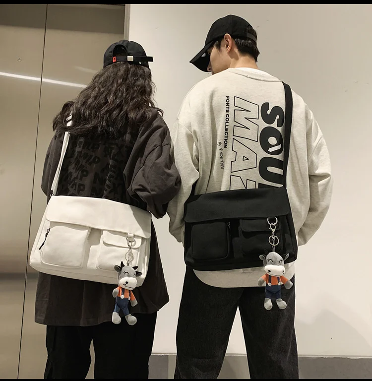 Weiyinxing Women Men Messenger Bag Female Canvas Crossbody Bag Large Capacity Korean Cute Simple Student Single Shoulder Outer Bag