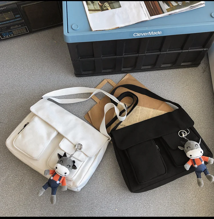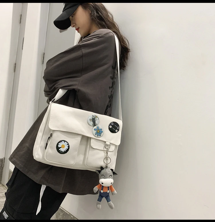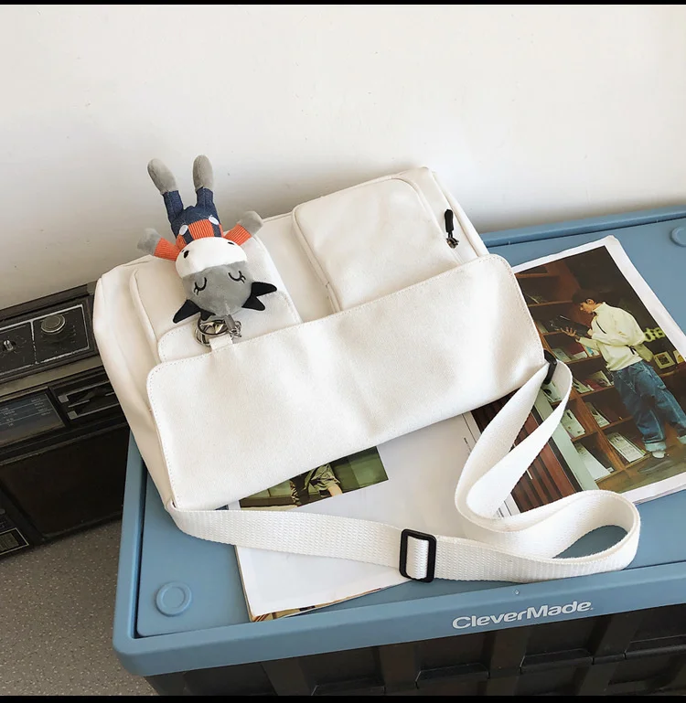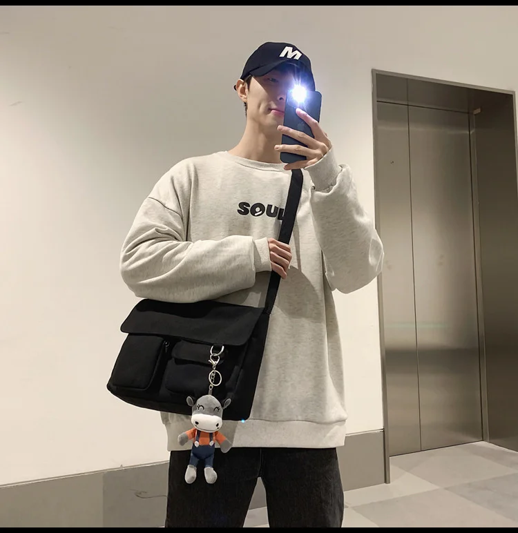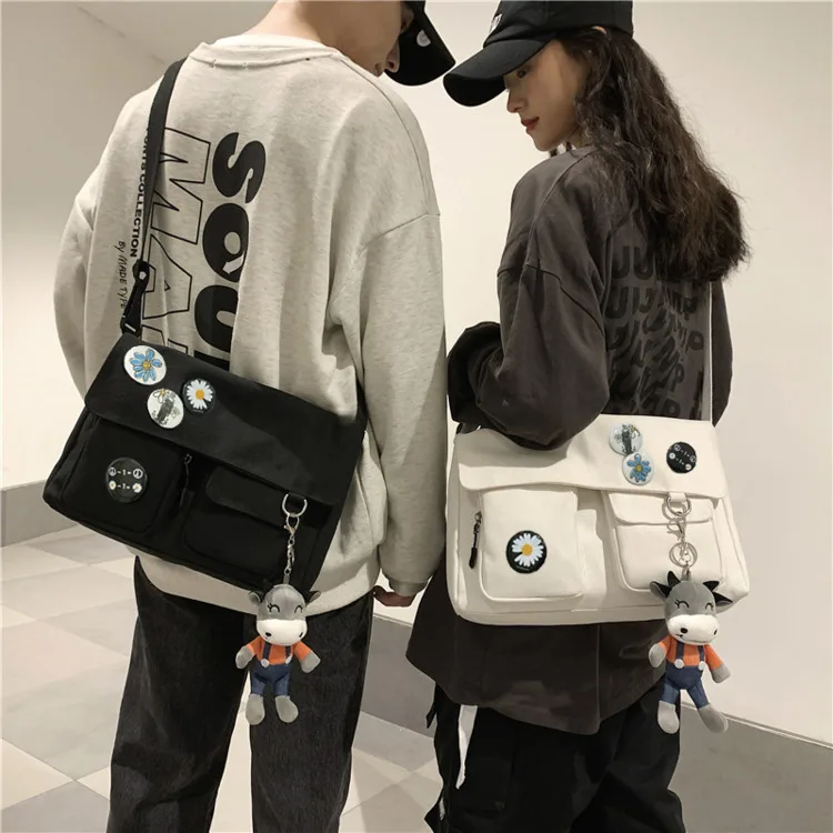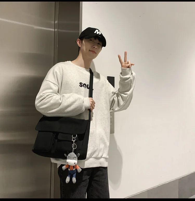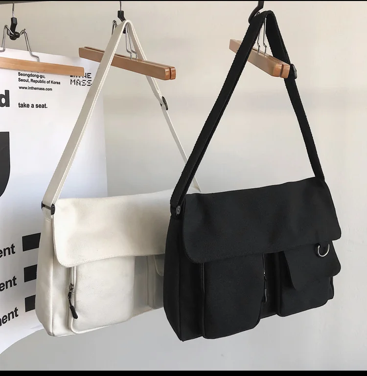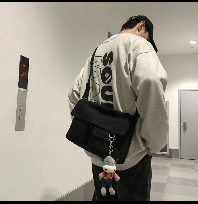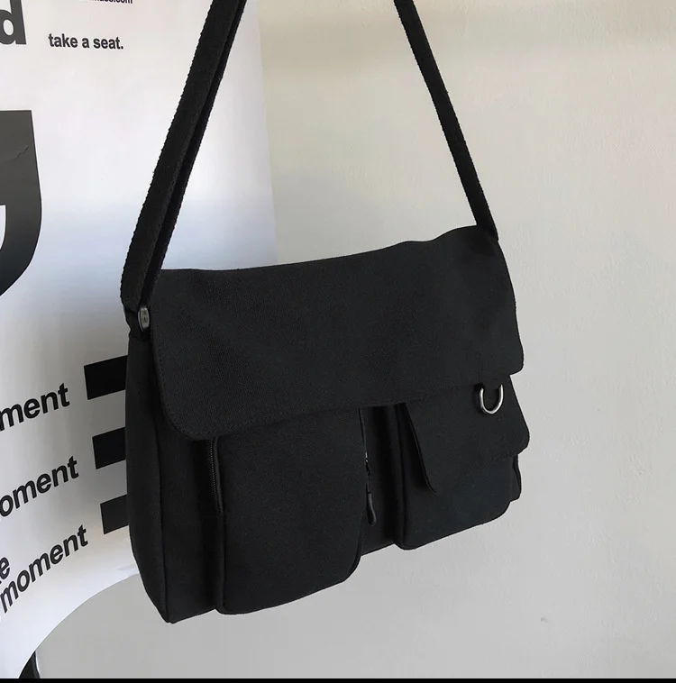 Weiyinxing Women Men Messenger Bag Female Canvas Crossbody Bag Large Capacity Korean Cute Simple Student Single Shoulder Outer Bag
