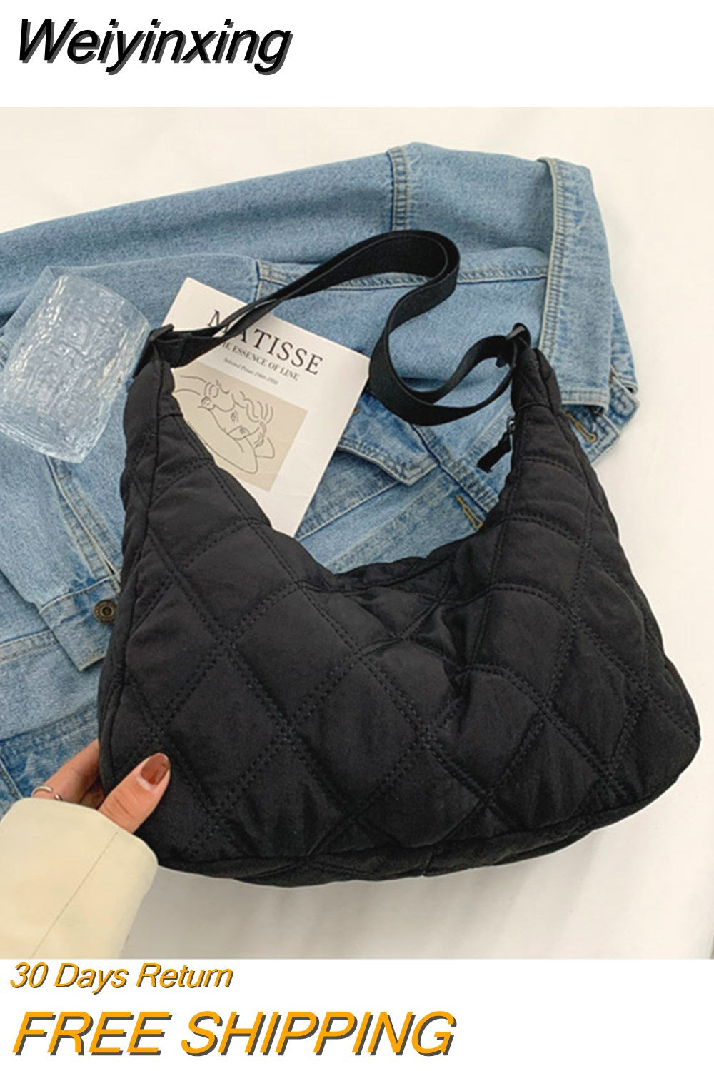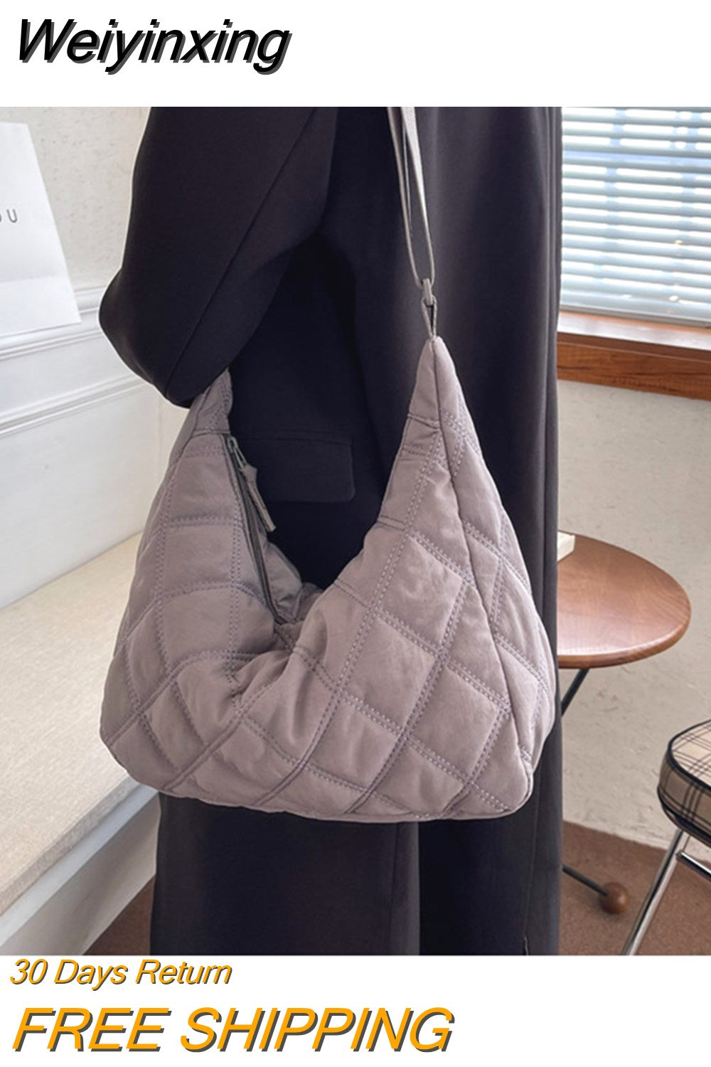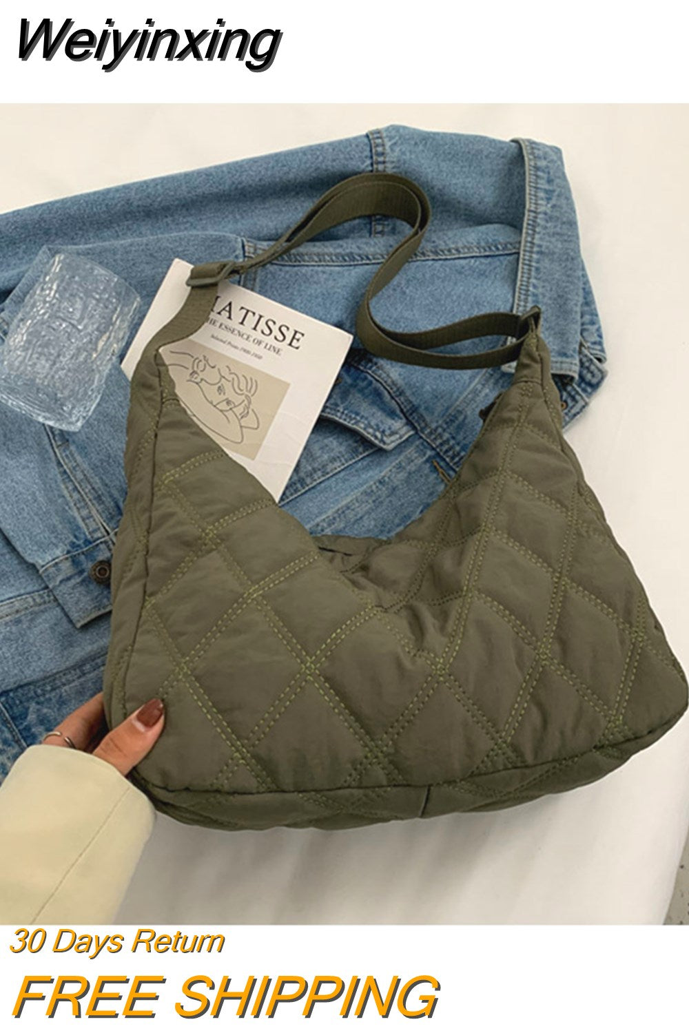 Weiyinxing Women Nylon Cloth Shoulder Bag Simple Plaid Ladies Quilting Crossbody Bag Fashion Messenger Bags Purse for Female Tote Handbags