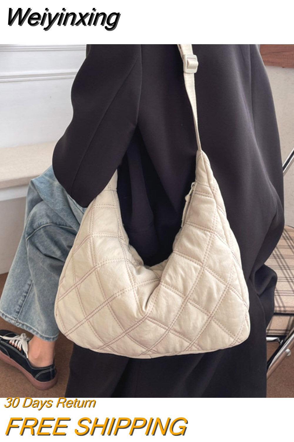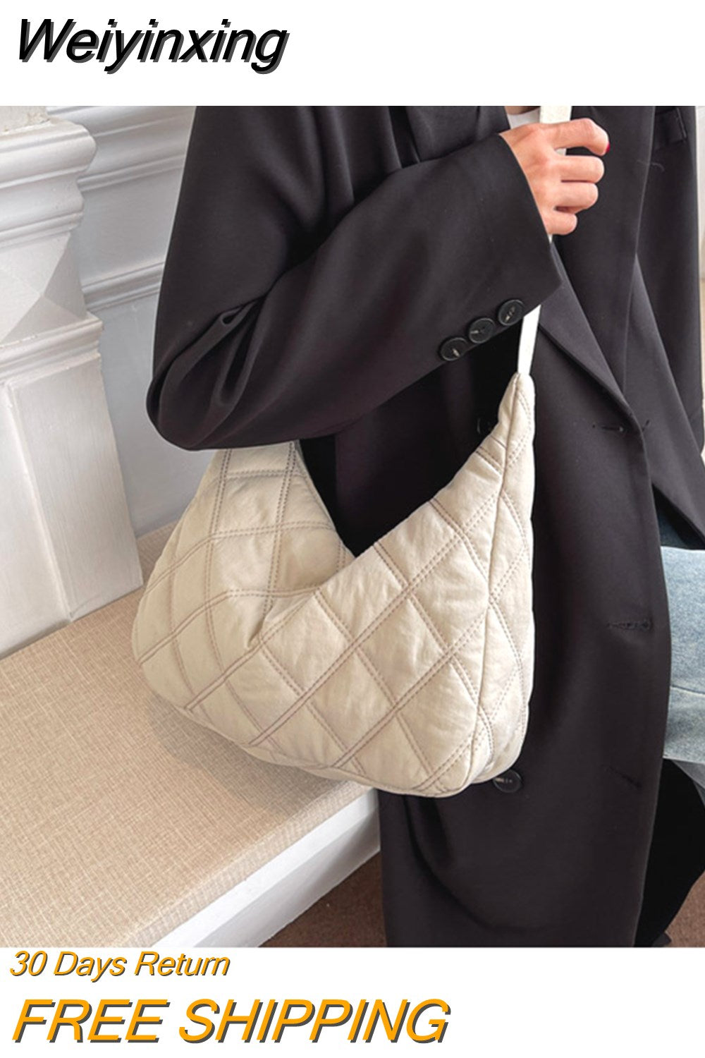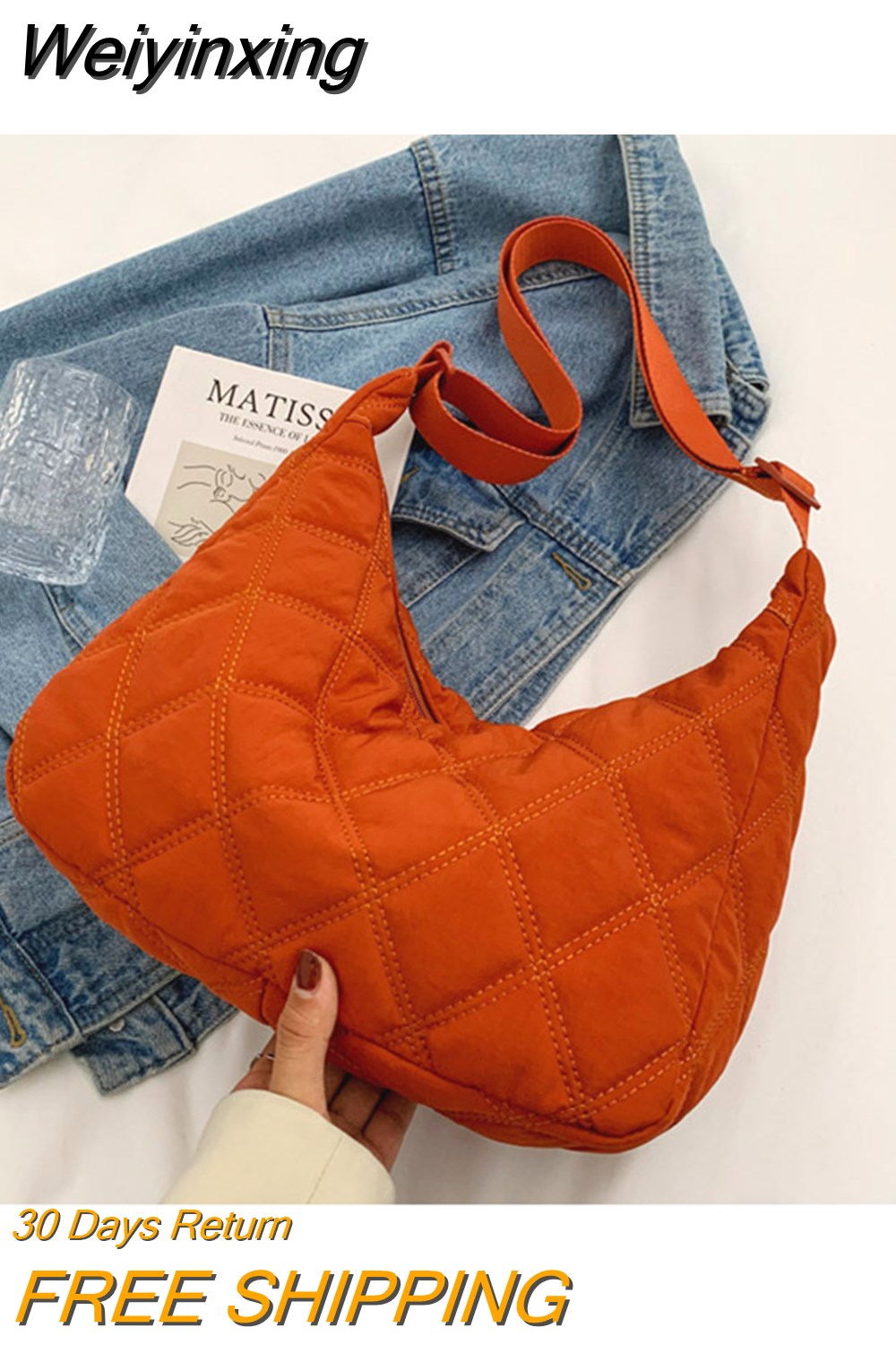Weiyinxing Women Nylon Cloth Shoulder Bag Simple Plaid Ladies Quilting Crossbody Bag Fashion Messenger Bags Purse for Female Tote Handbags