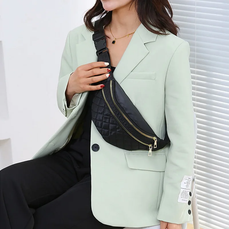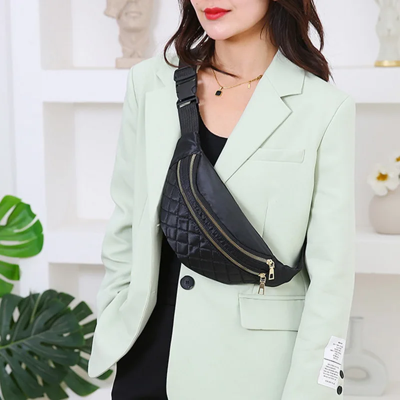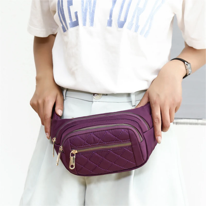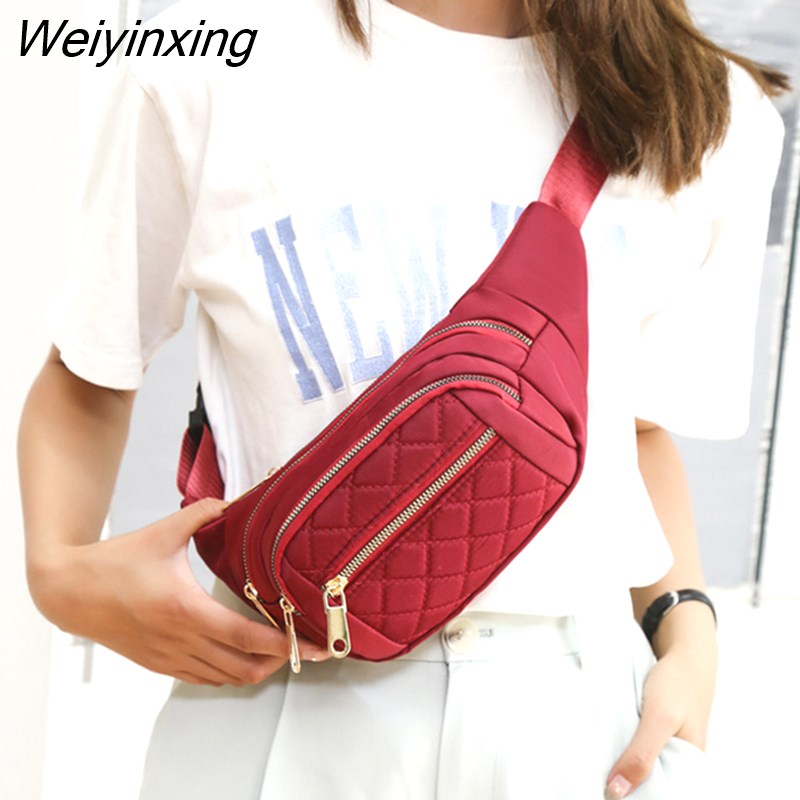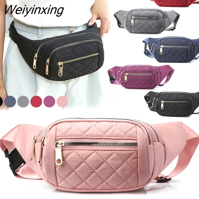 Weiyinxing Women Plaid Waist Bag Female Oxford Waterproof Belt Bags Designer Crossbody Chest Bag Ladies Fashion Fanny Pack Banana Hip Purse