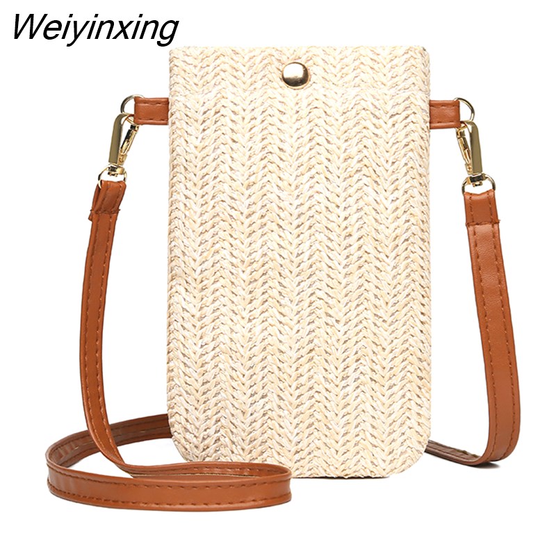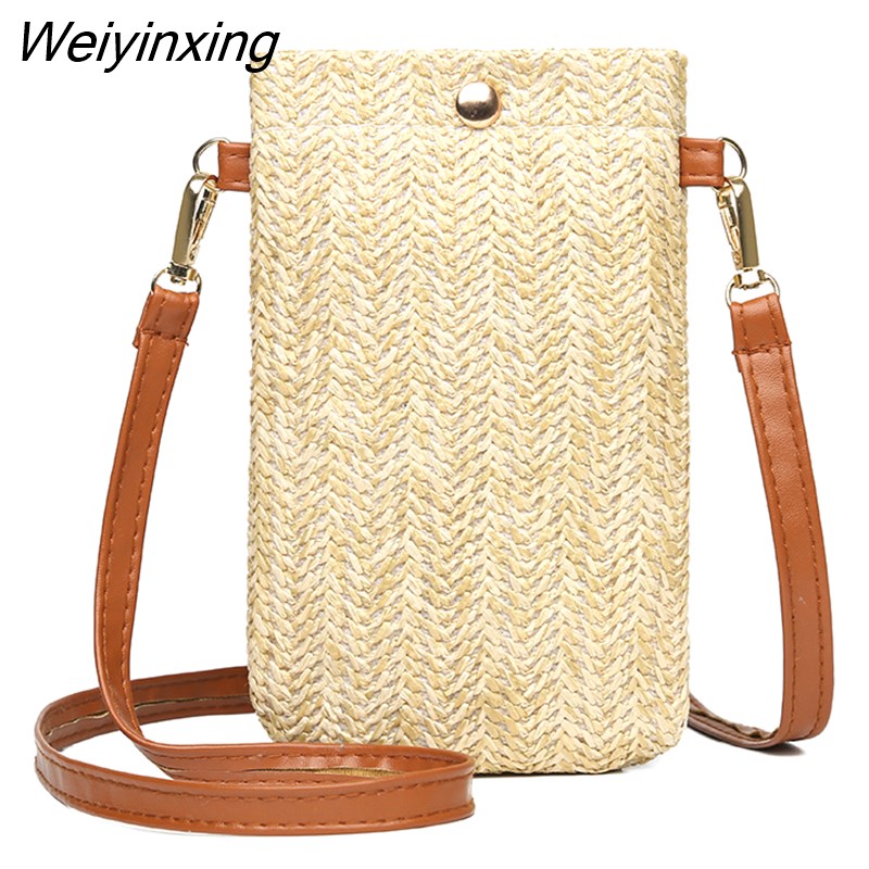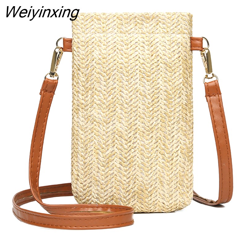 Weiyinxing Women Straw Ladies Crossbody Messenger Bag Summer Bohemia Beach Rattan Shoulder Bag Small Solid Mobile Phone Coin Purse
