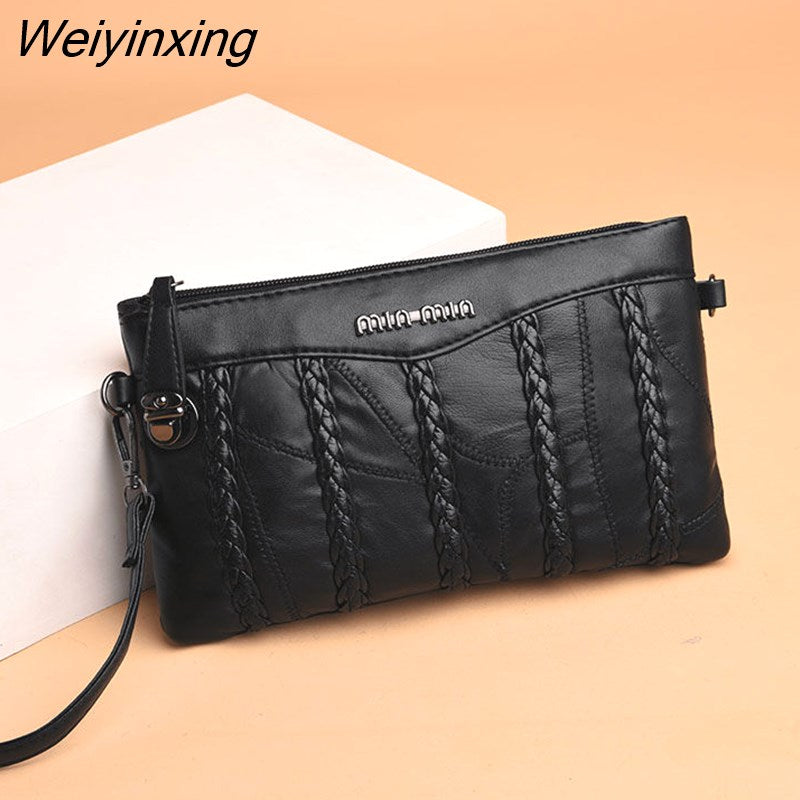 Weiyinxing Women's Black Shoulder Bag Leather Women Handbag High Quality Clutch Bag Small Women Messenger Bag Wallet Phone Bag
