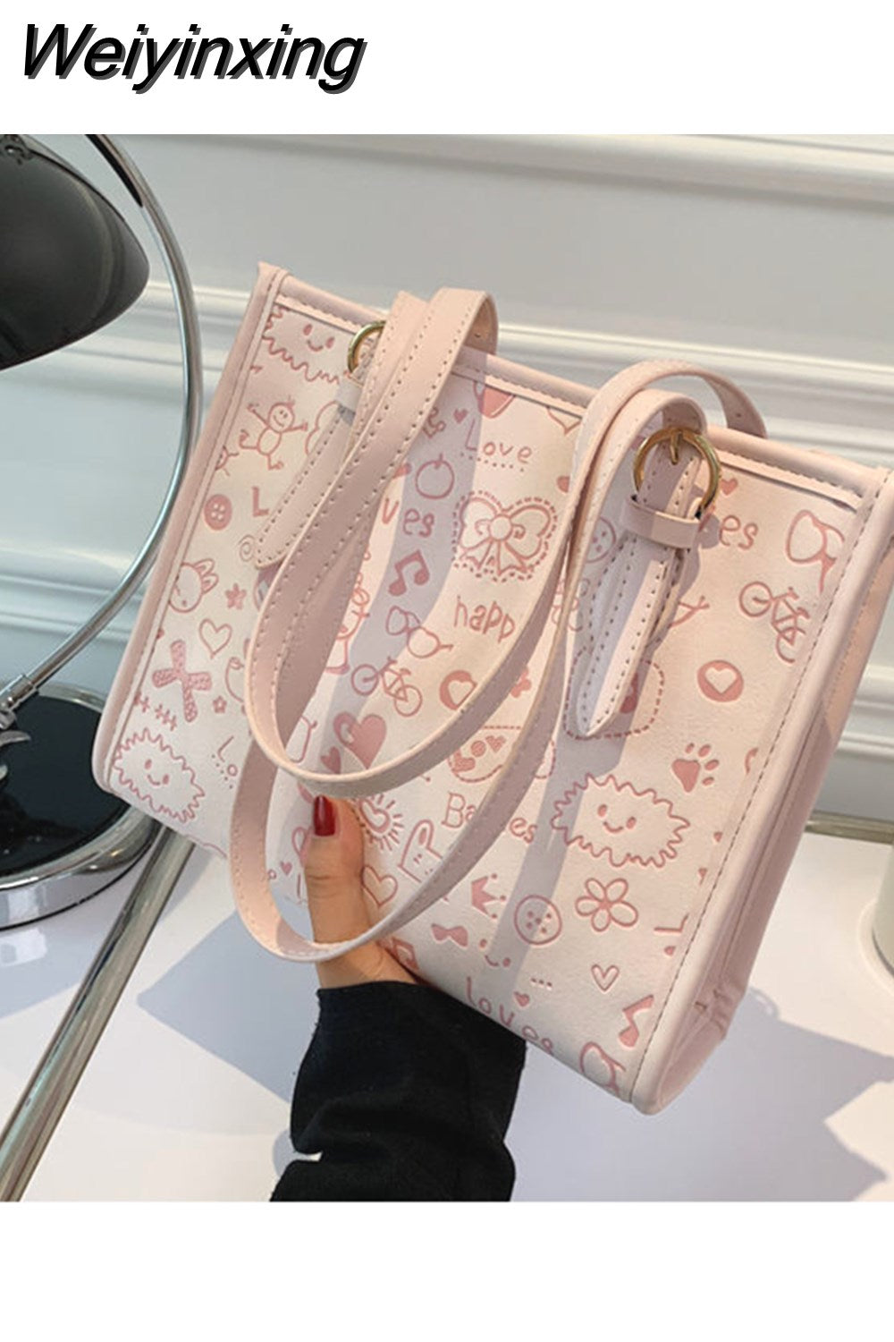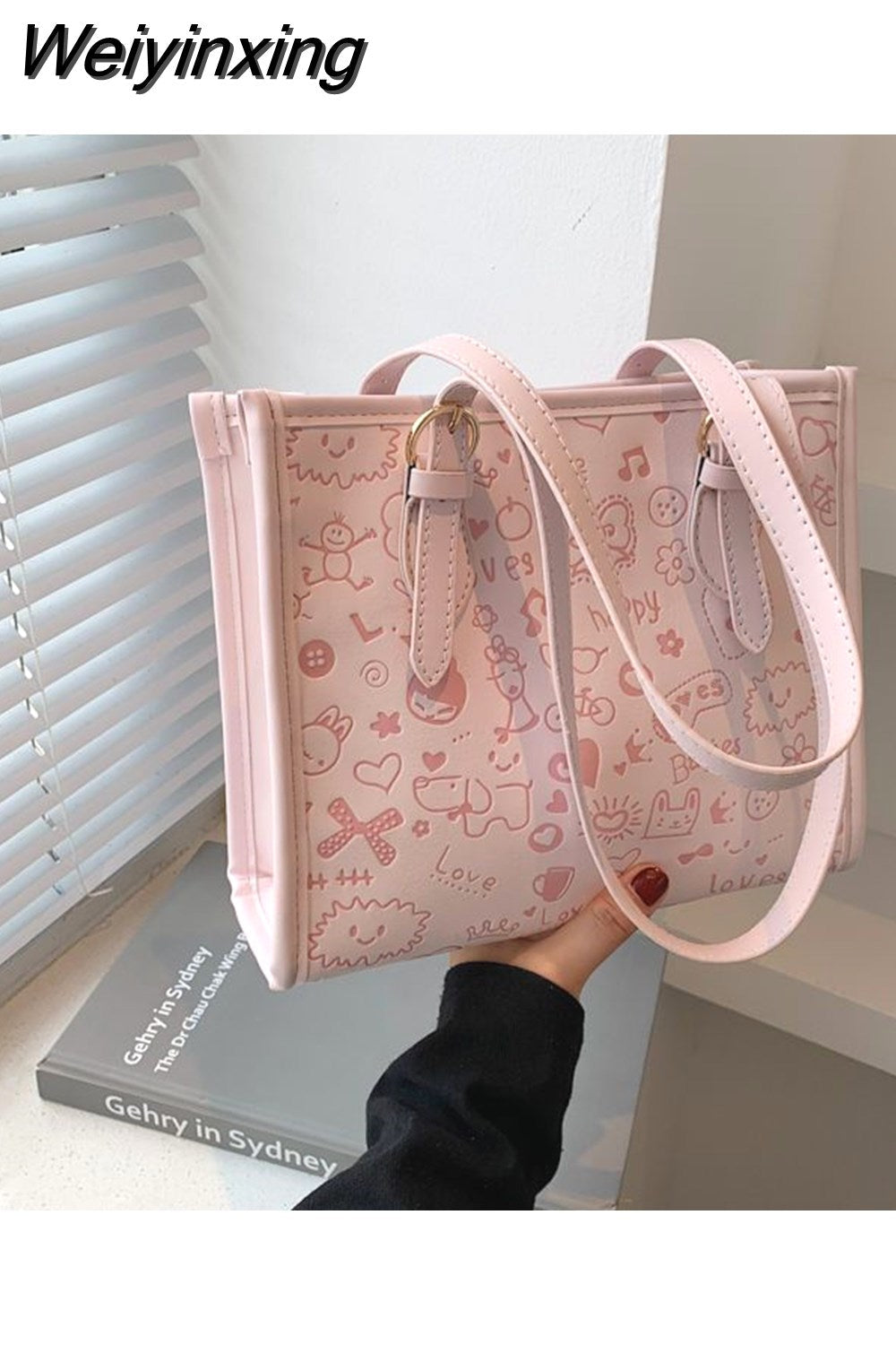 Weiyinxing Womens Cute Shoulder Bag Cartoon Kawaii Purses and Handbags Luxury Designer Pu Leather Solid Color Bolsa Female Elegant Bag