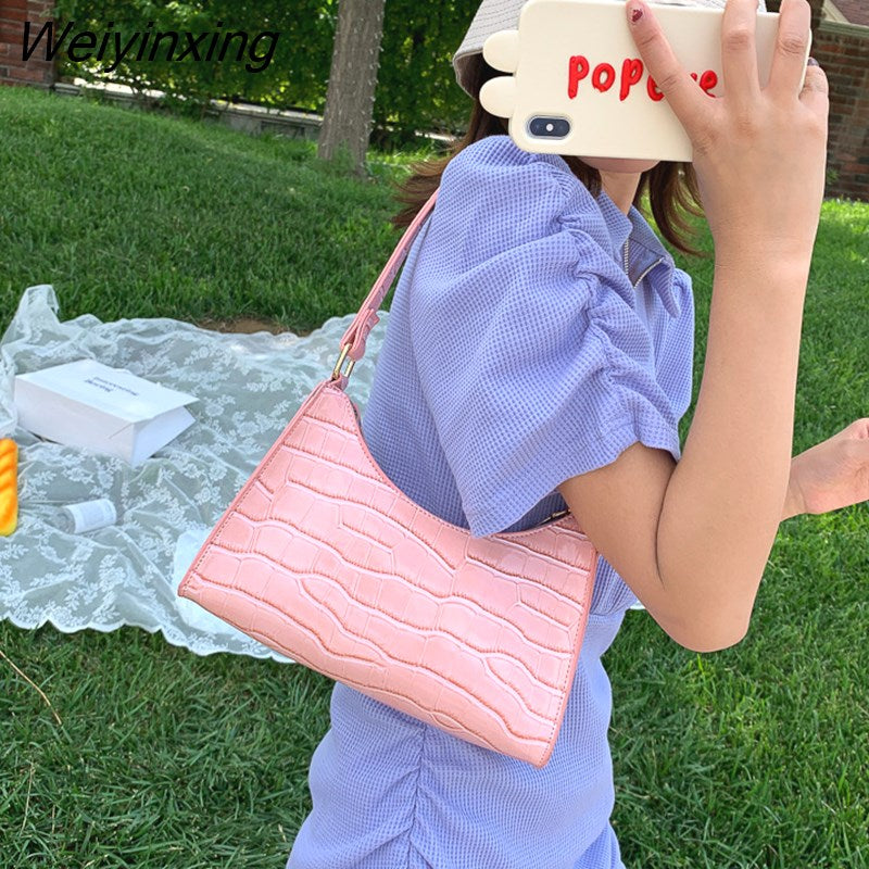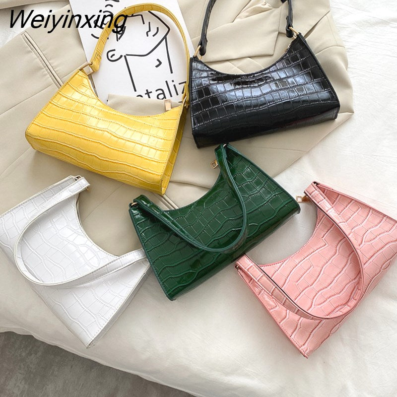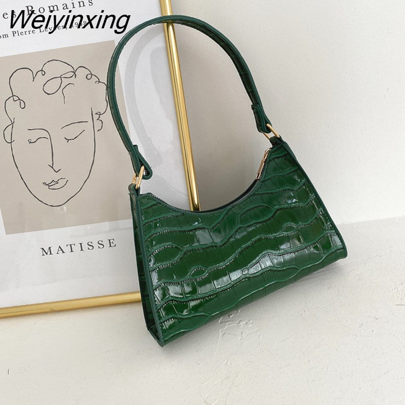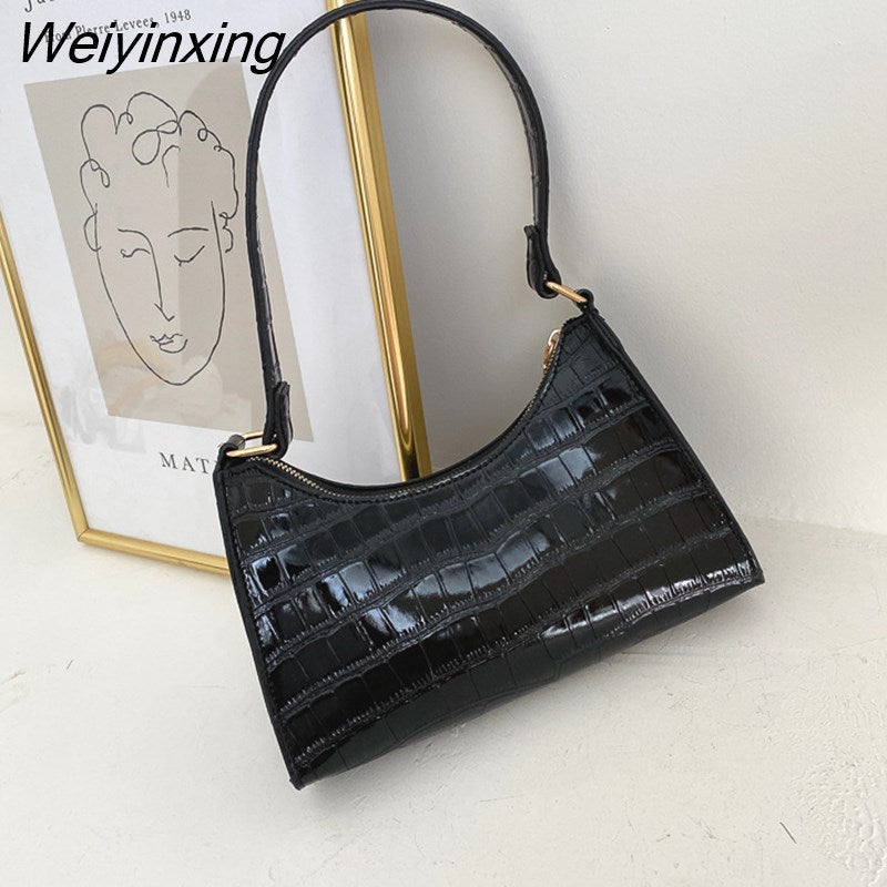 Weiyinxing Women's Handbag Crocodile Pattern Retro Casual Totes Shoulder Bag Fashionable Exquisite Shopping Bag PU Leather Chain Handbags