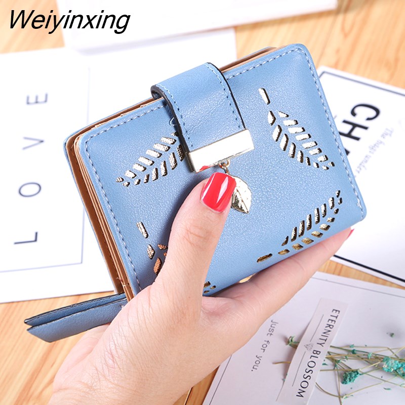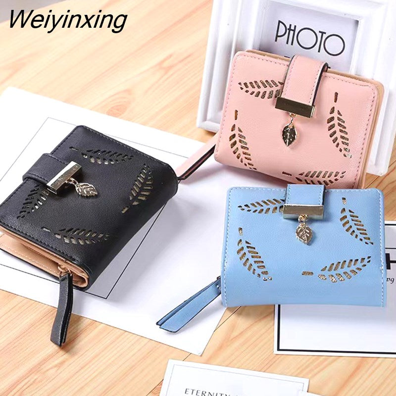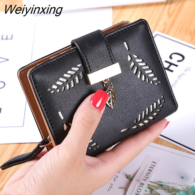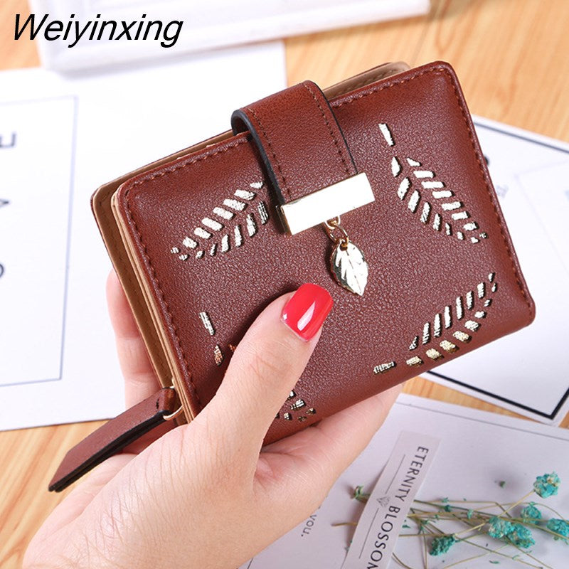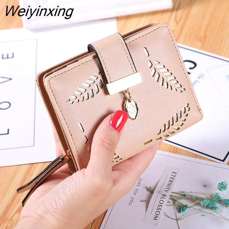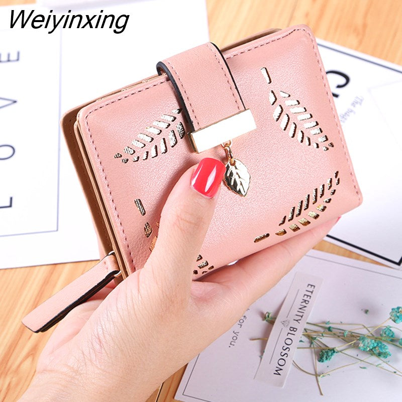Weiyinxing Women's Purse Short Zipper Wallet Women Leather 2023 Luxury Brand Small Women Wallets Clutch Bag With Hollow Out Leaves